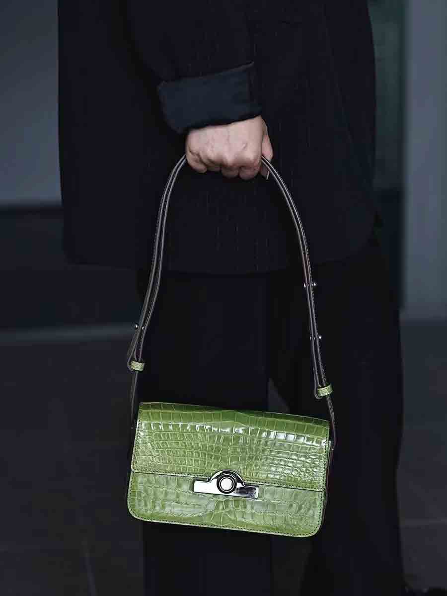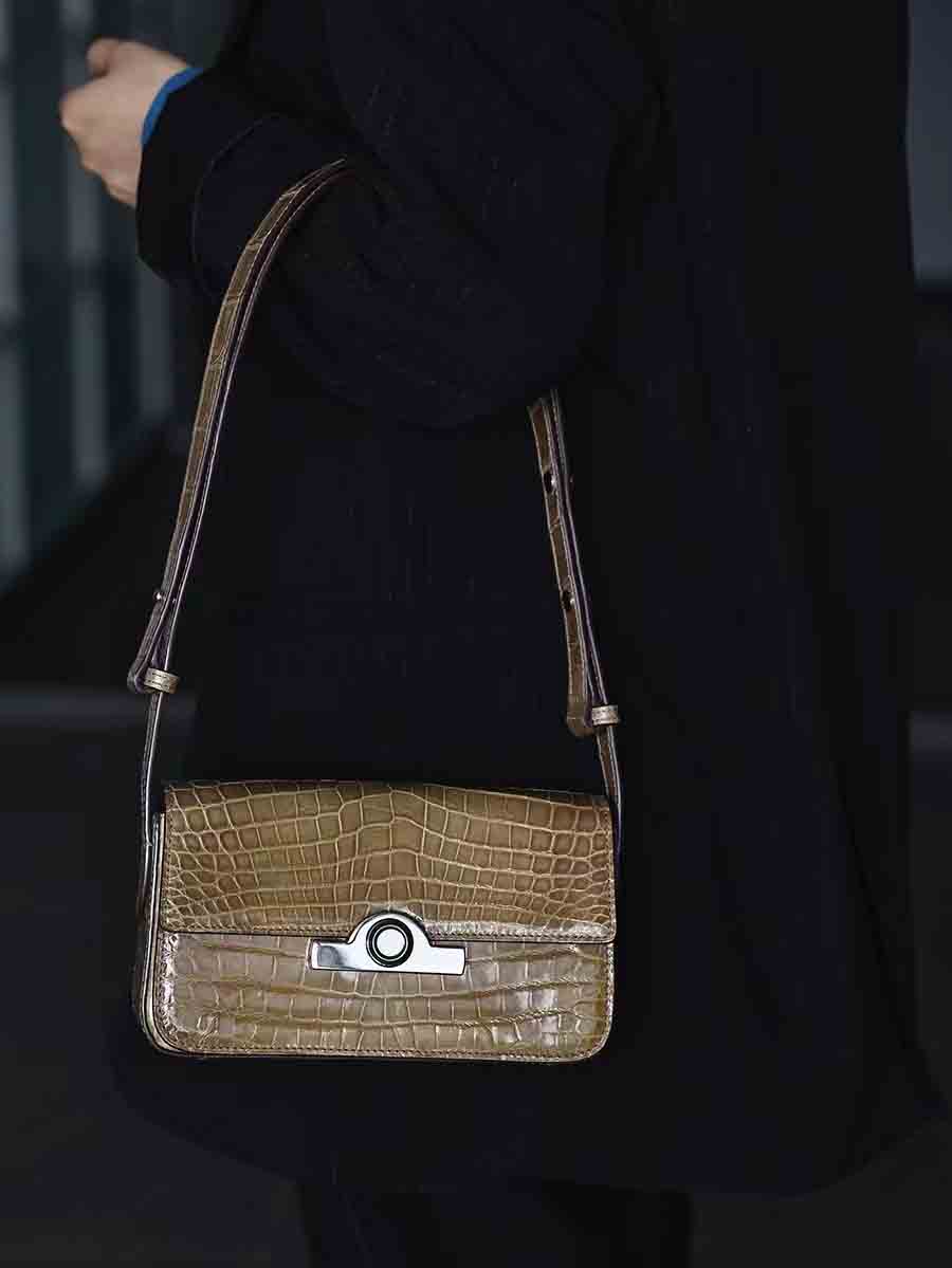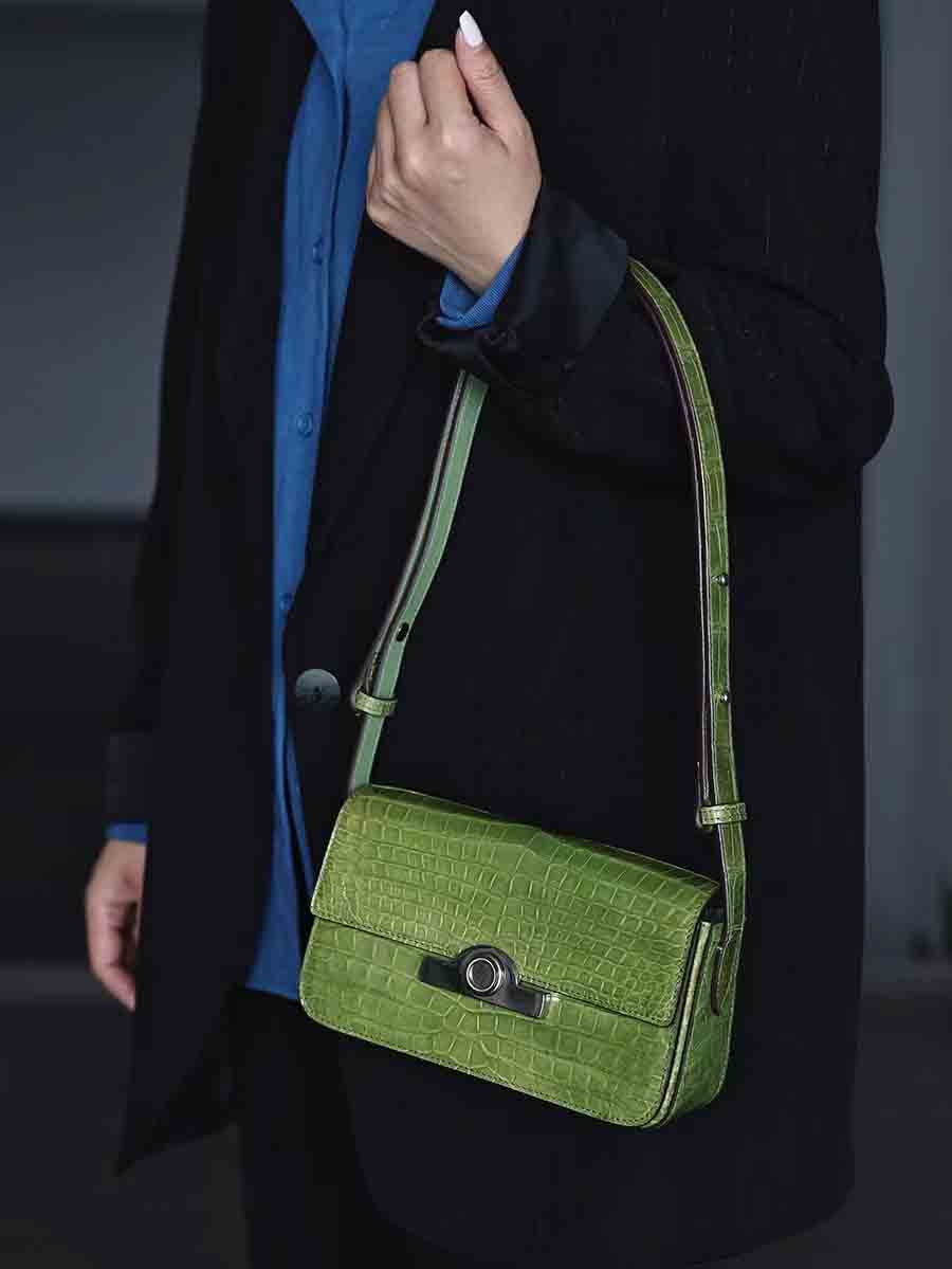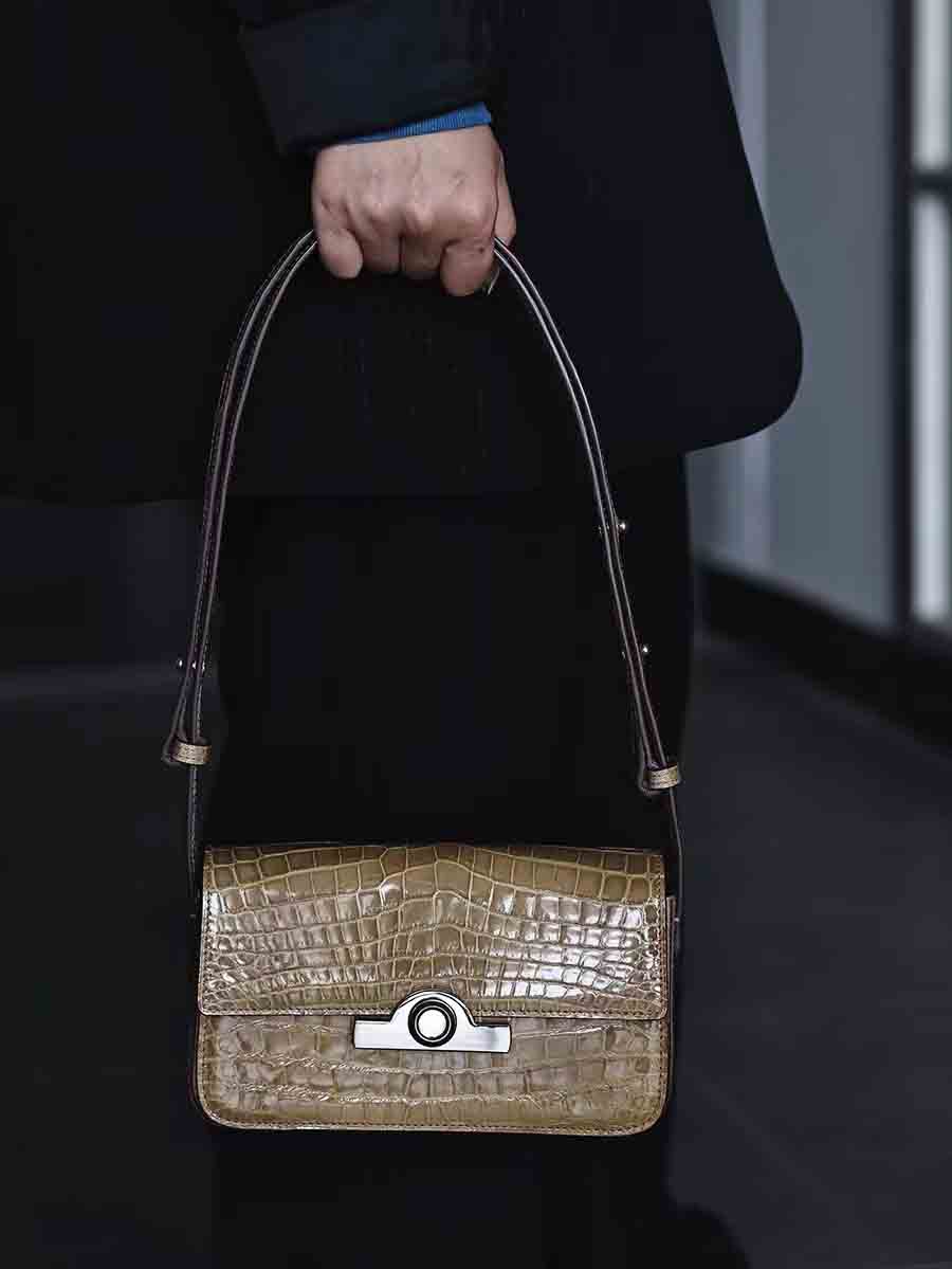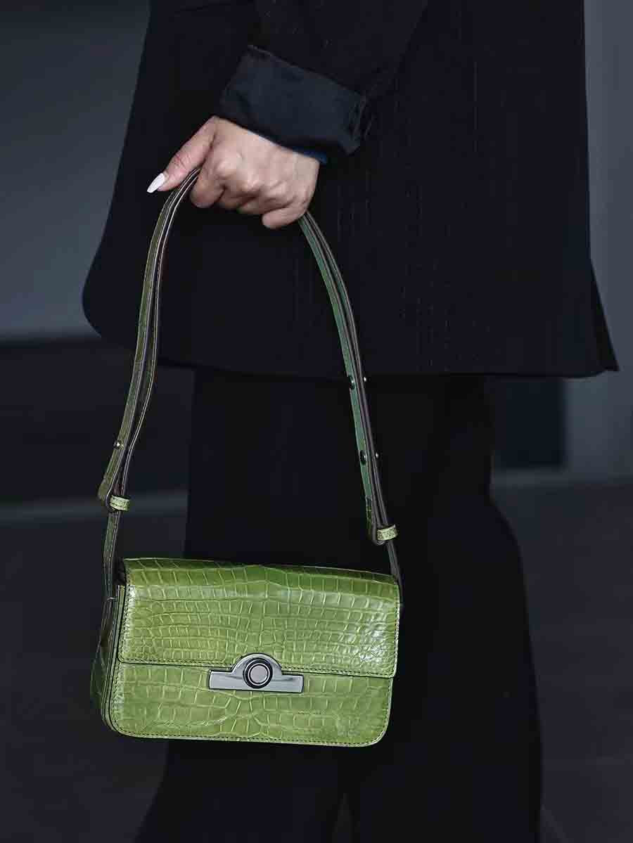女士腋下包 以精湛的车线工艺融入设计,以车线打造出包包细节,精选鳄鱼皮材质散发着高级的光泽,奢侈高端鳄鱼皮,复古精致。