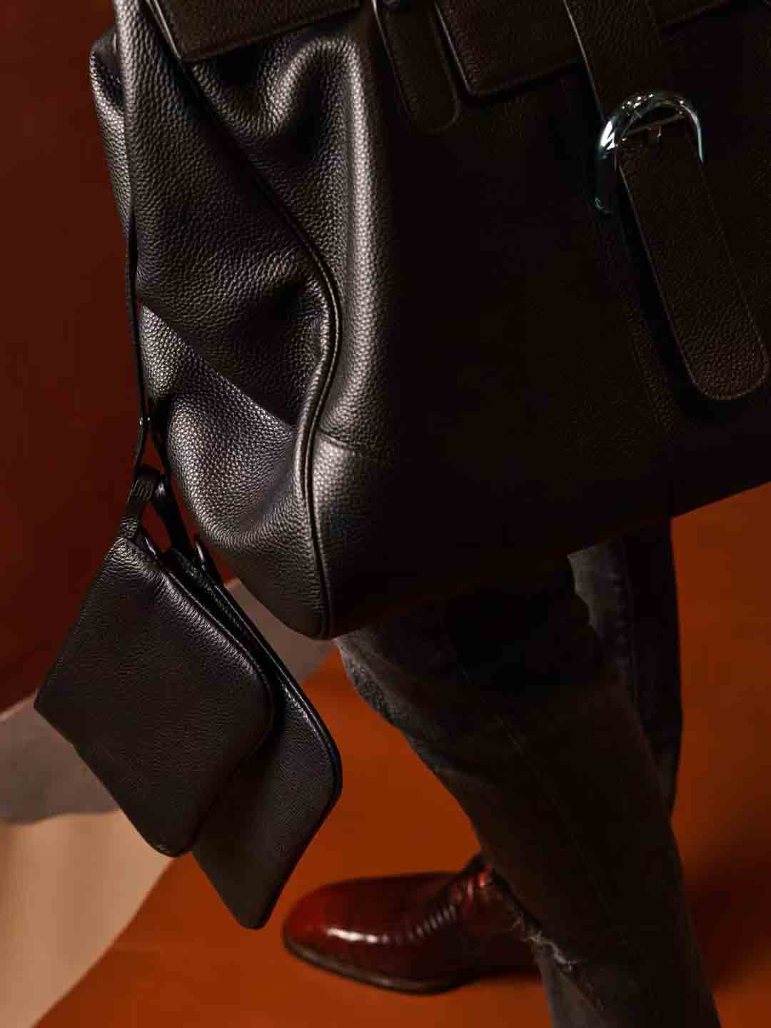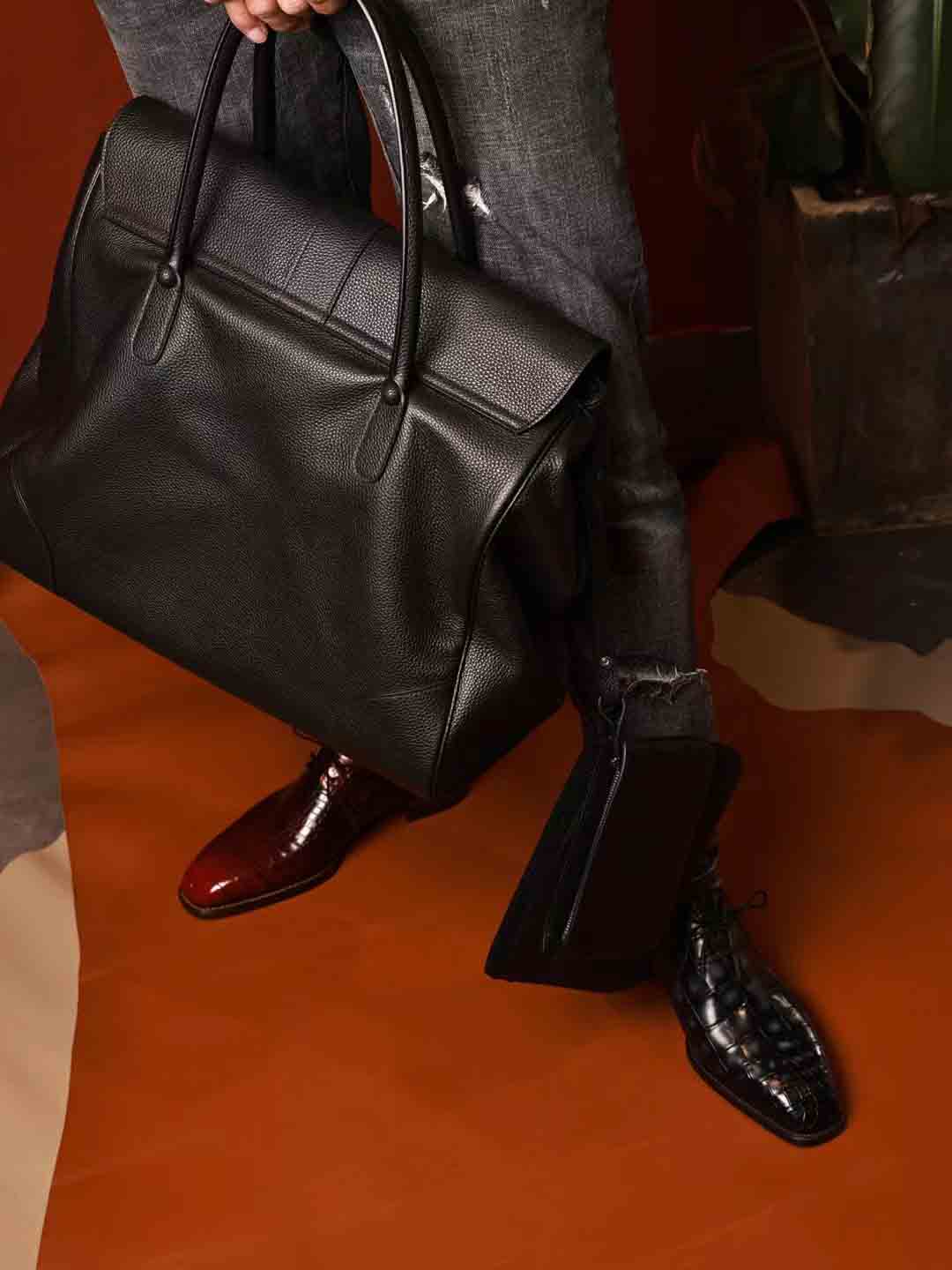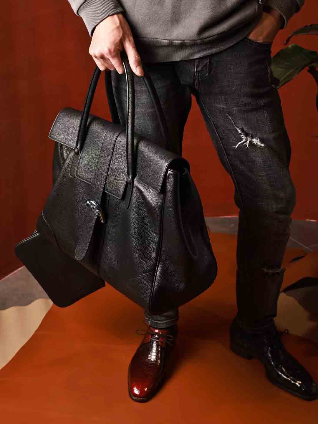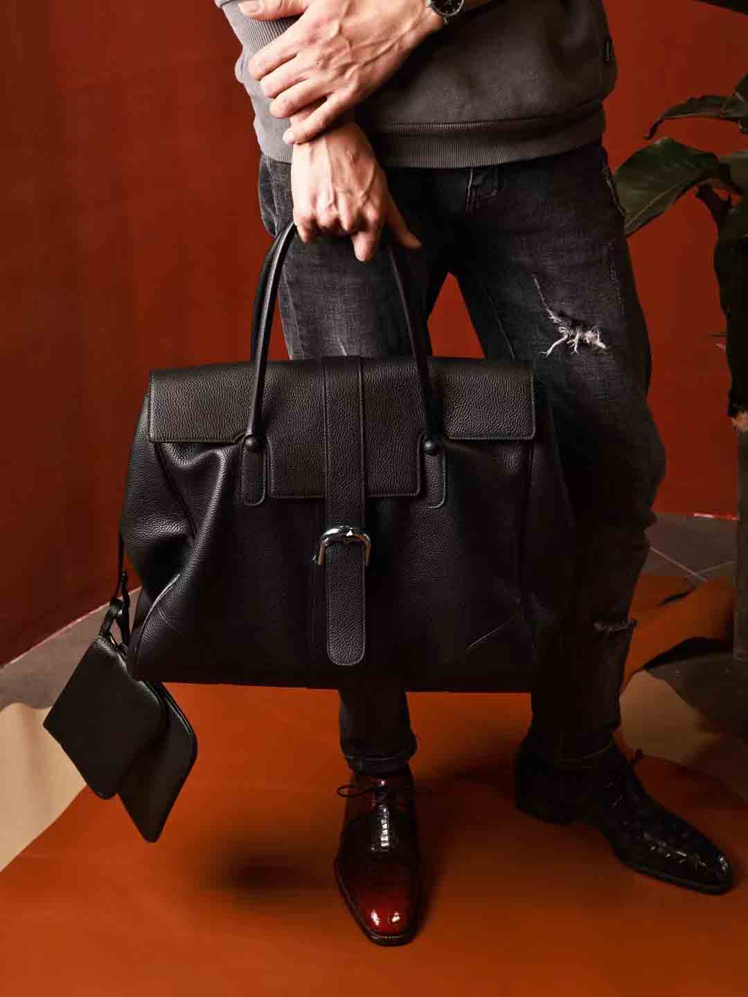 时尚德尔沃旅行袋,黑色Togo小牛皮黑色,柔软不定型版本,实拍现货一枚。40*32*20CM。
