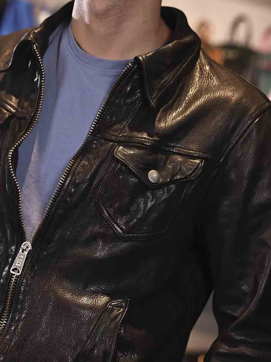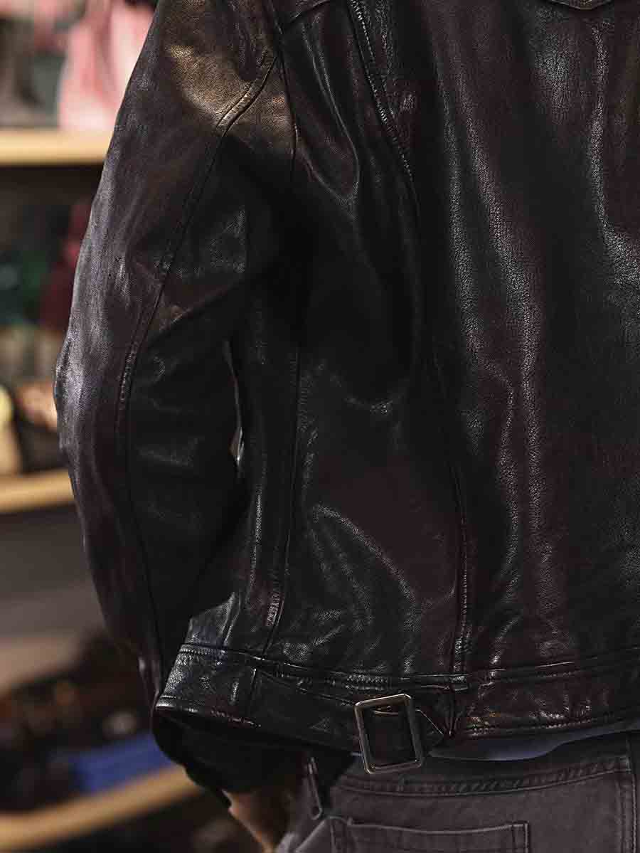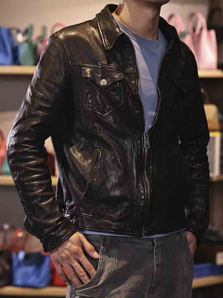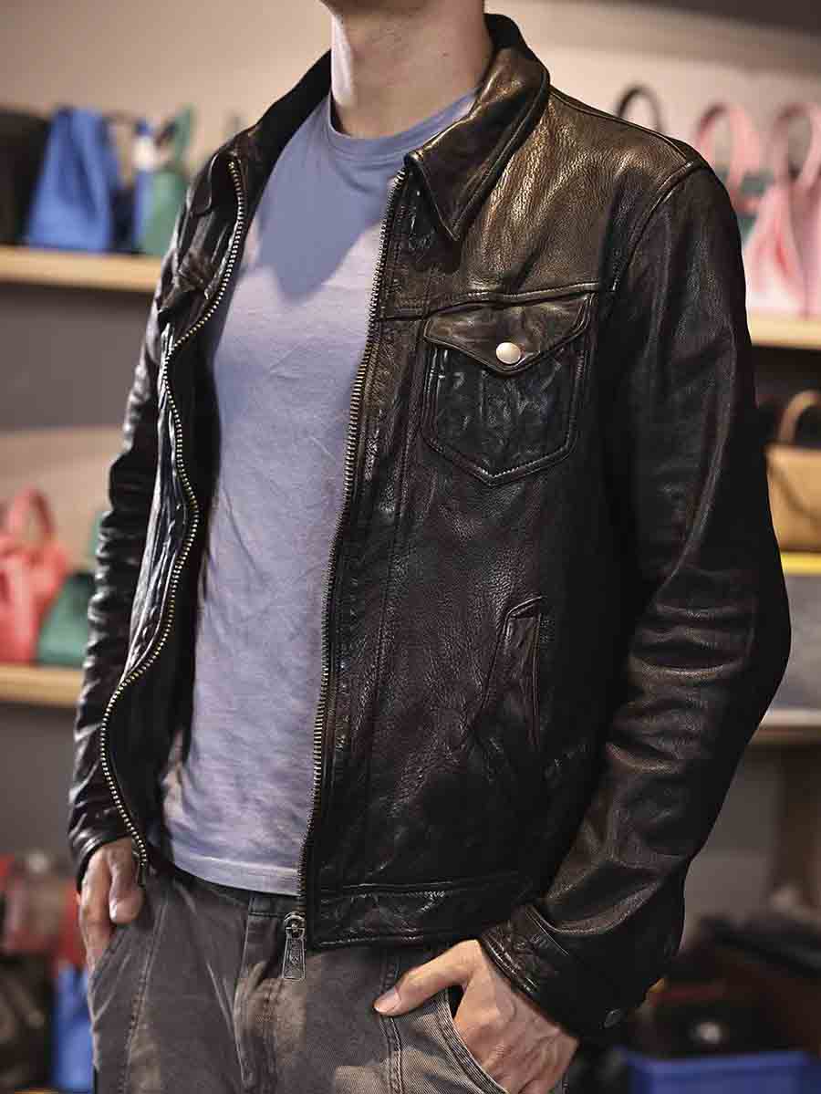 华仔在《天地对决》剧中始终穿着的那件夹克,黑色植鞣水洗风格,华仔同款机车服 水洗风格 现衣48码。