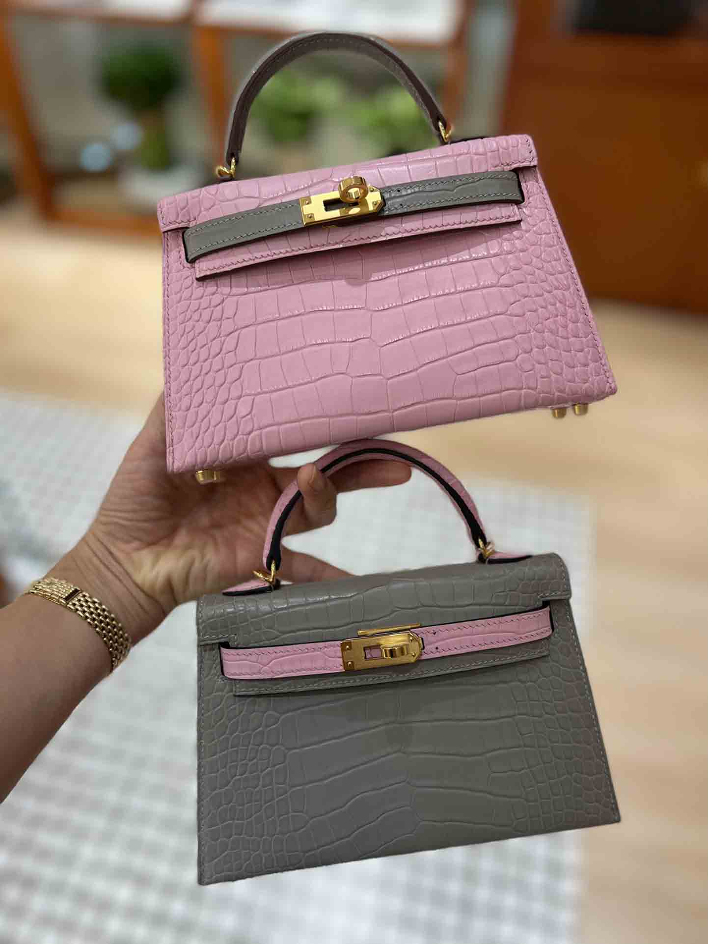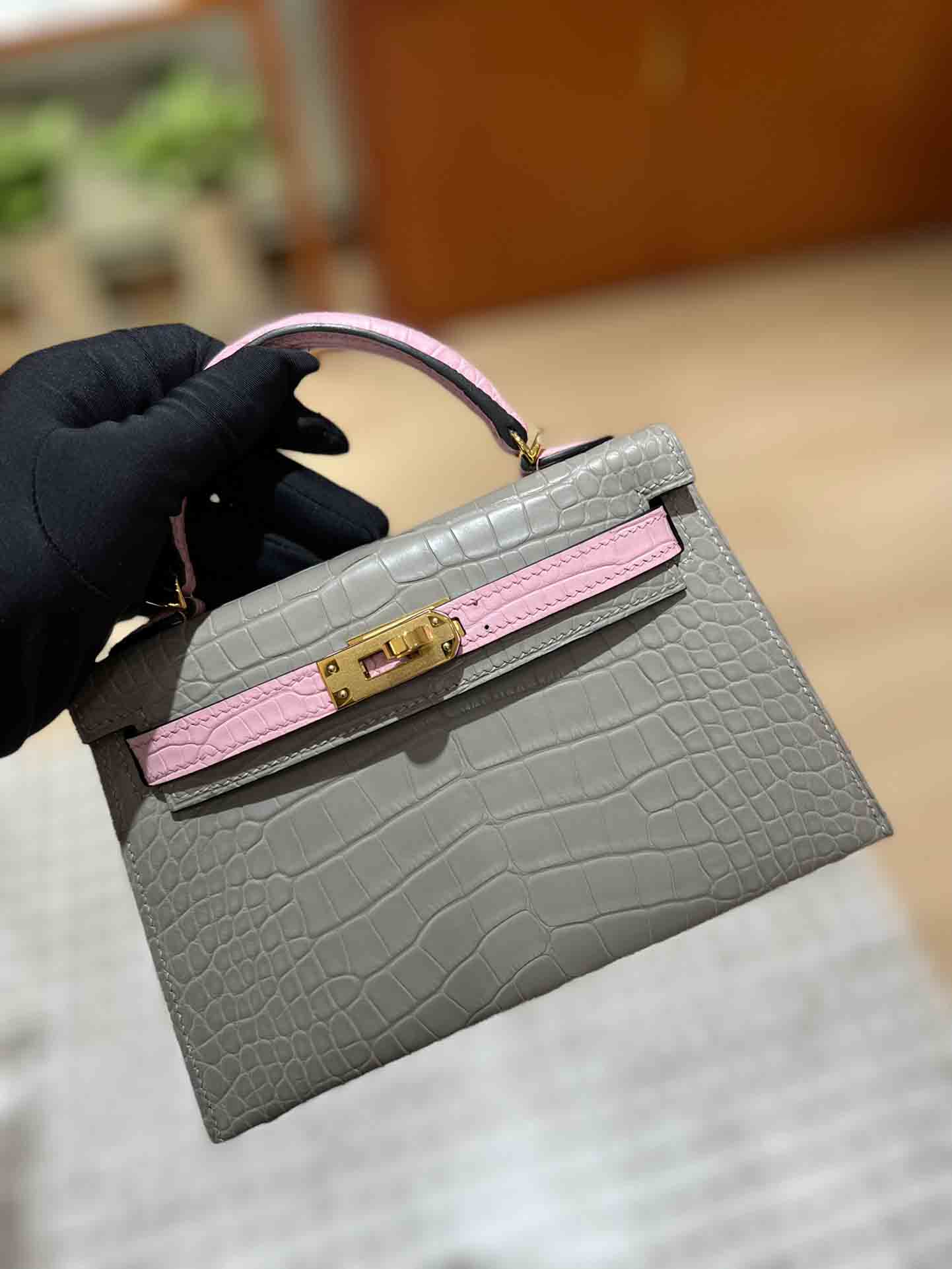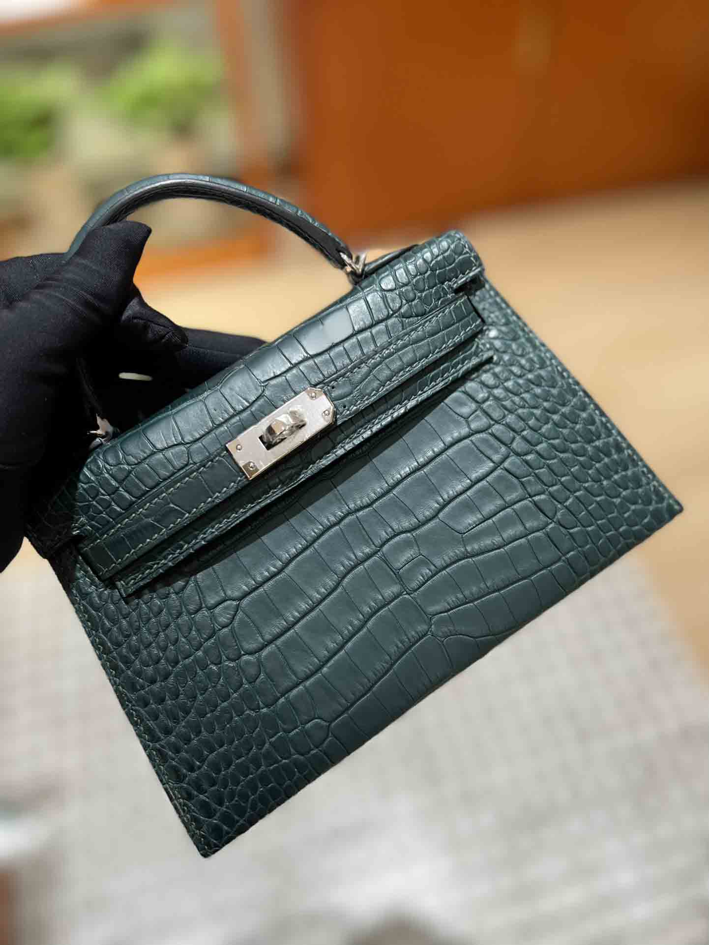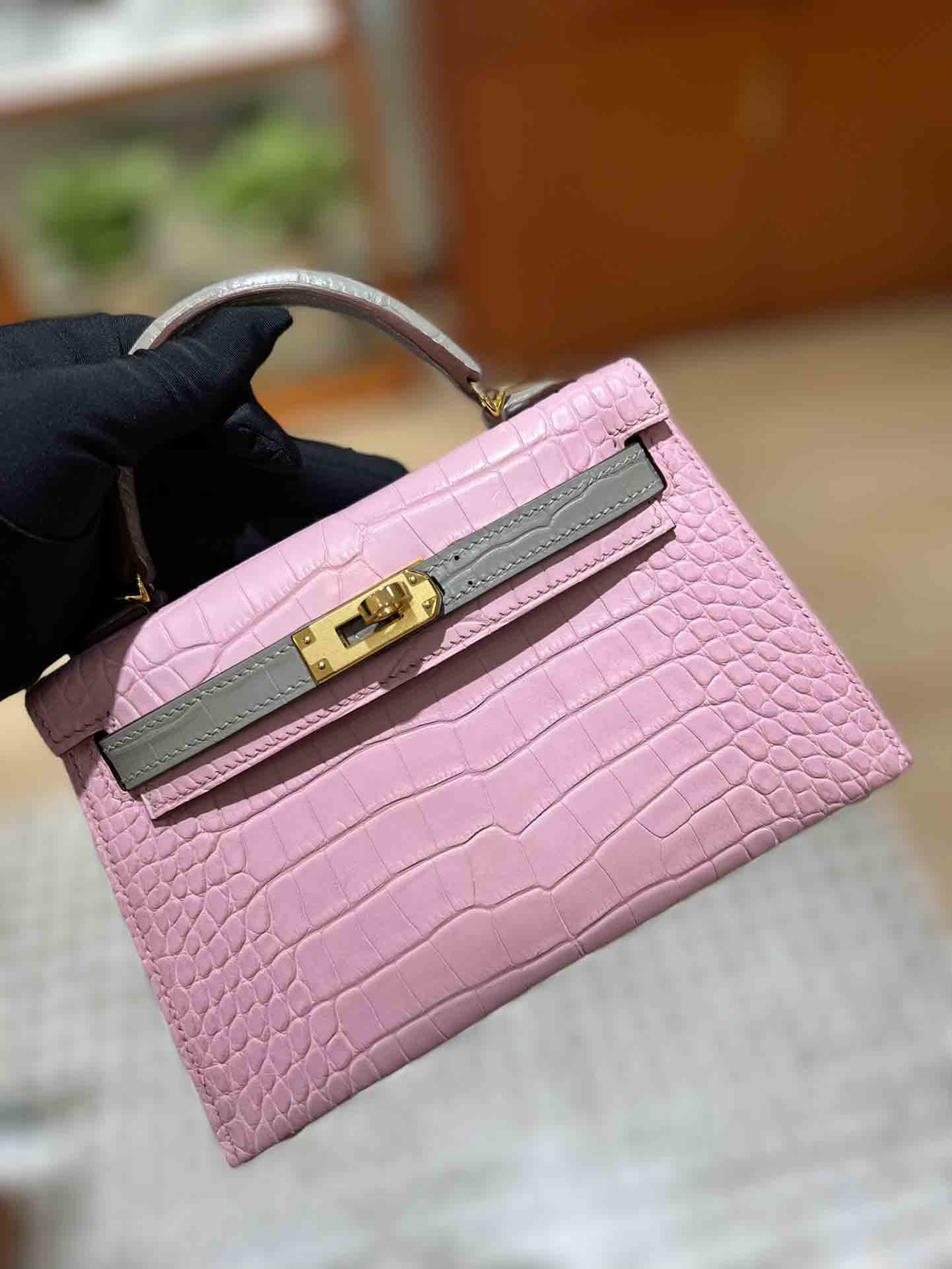 Hermes 爱马仕kellymini 二代 美洲鳄鱼皮批发厂家。 雾面鳄鱼 金扣 大极品 超级少。