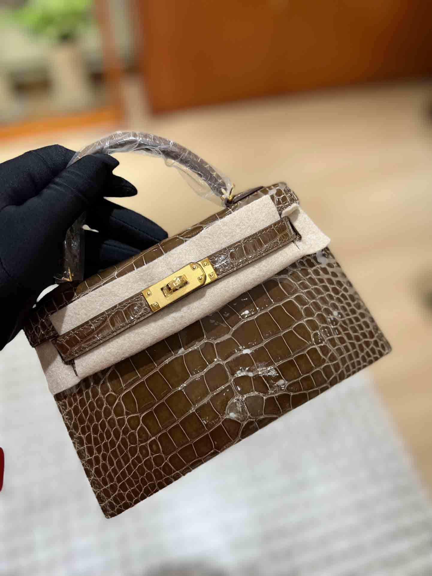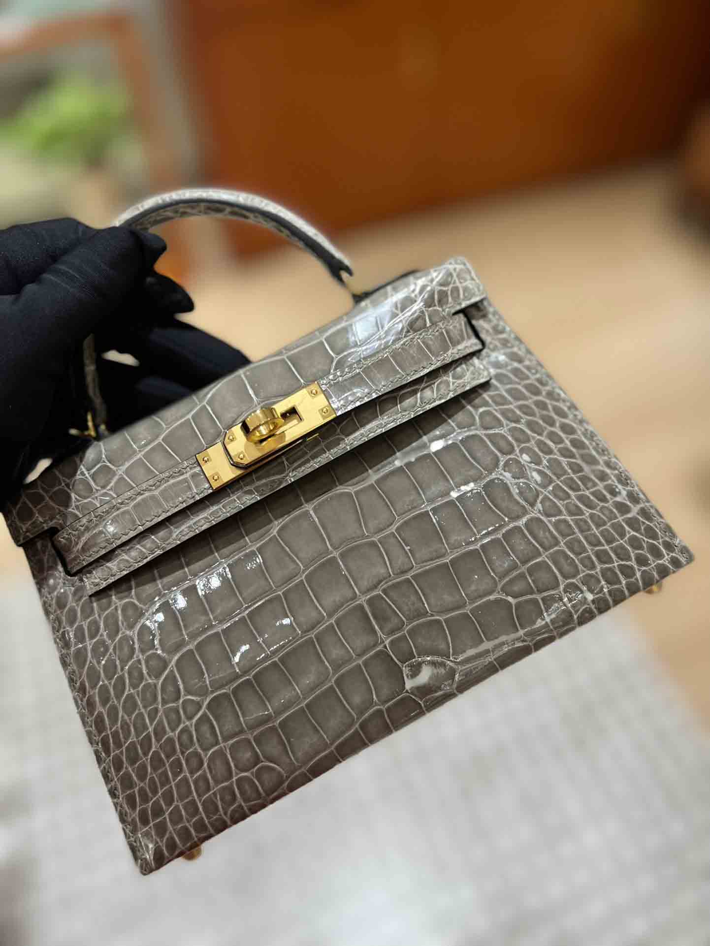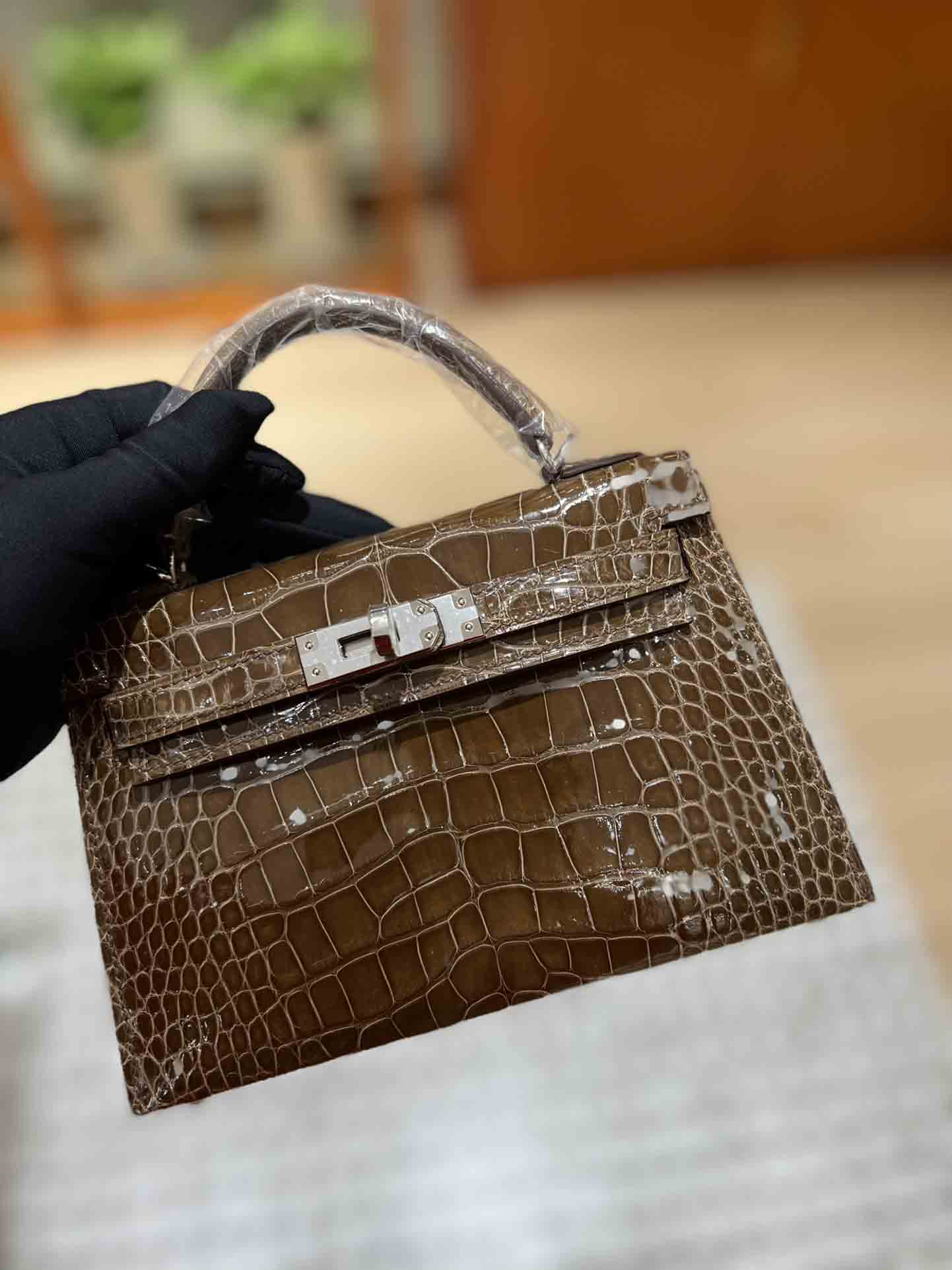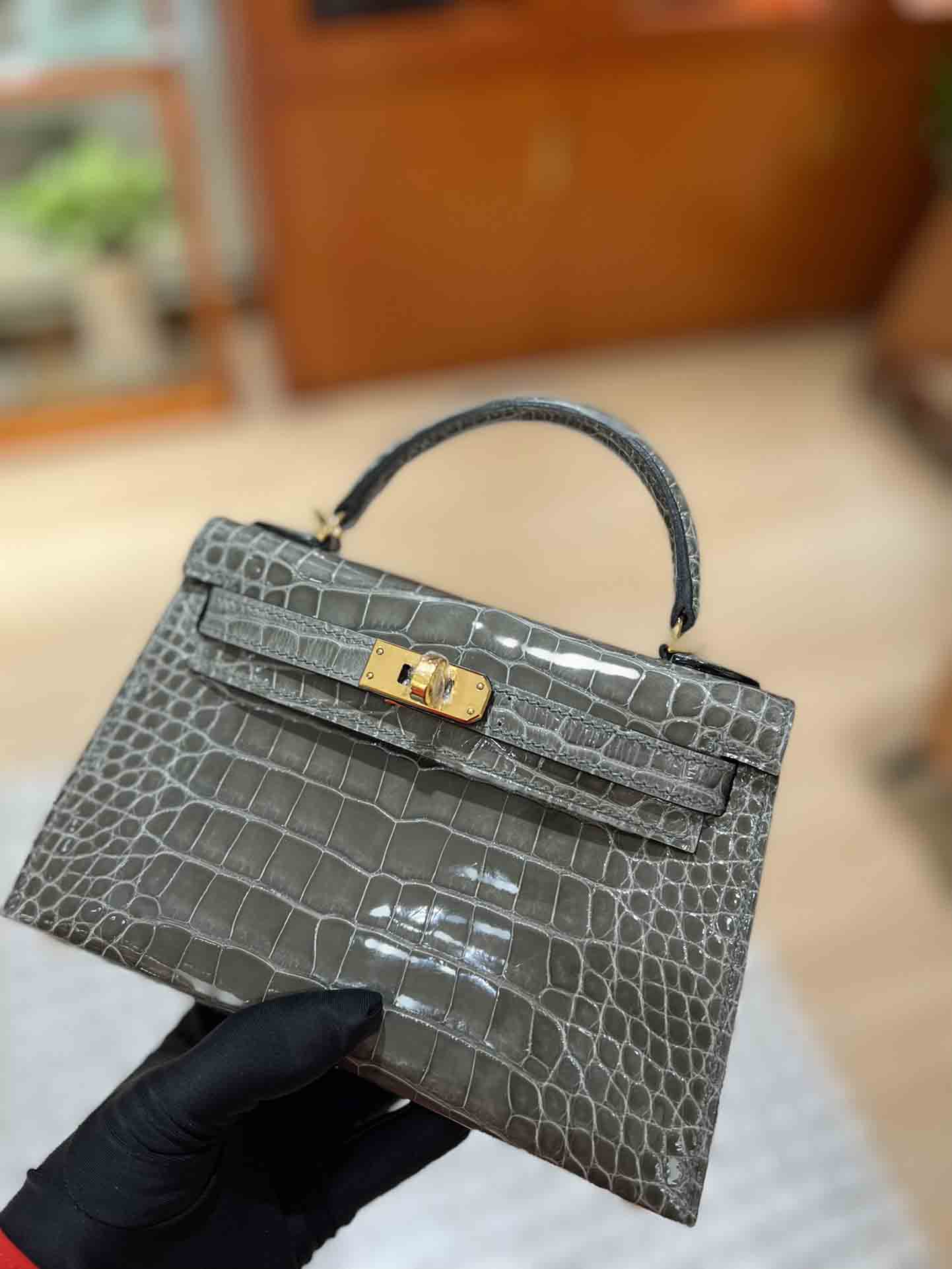 kelly二代美洲鳄,自然光下实拍 爱马仕Kelly二代采用的是进口兴隆鳄鱼皮,这种皮也是爱马仕常用皮。