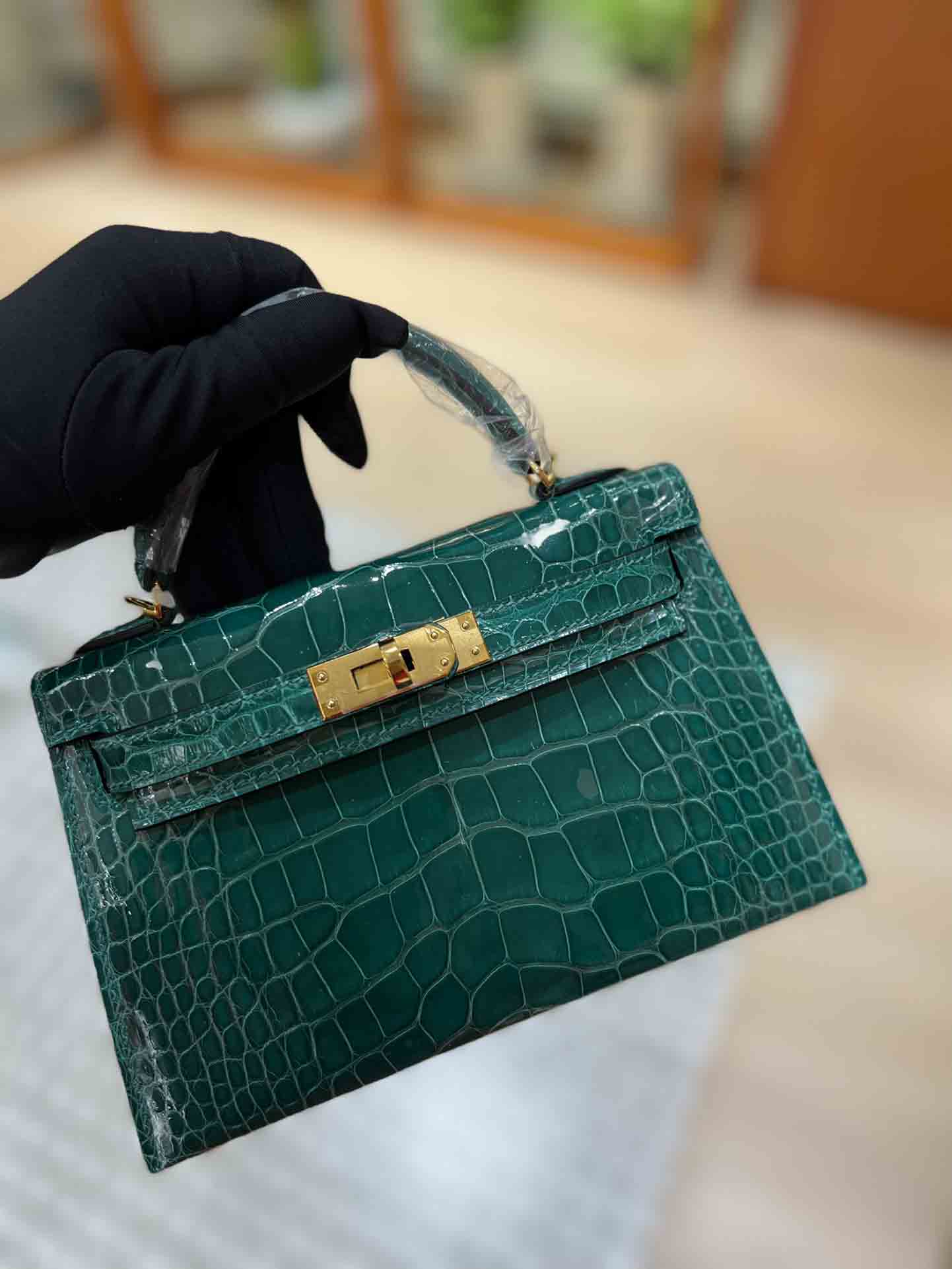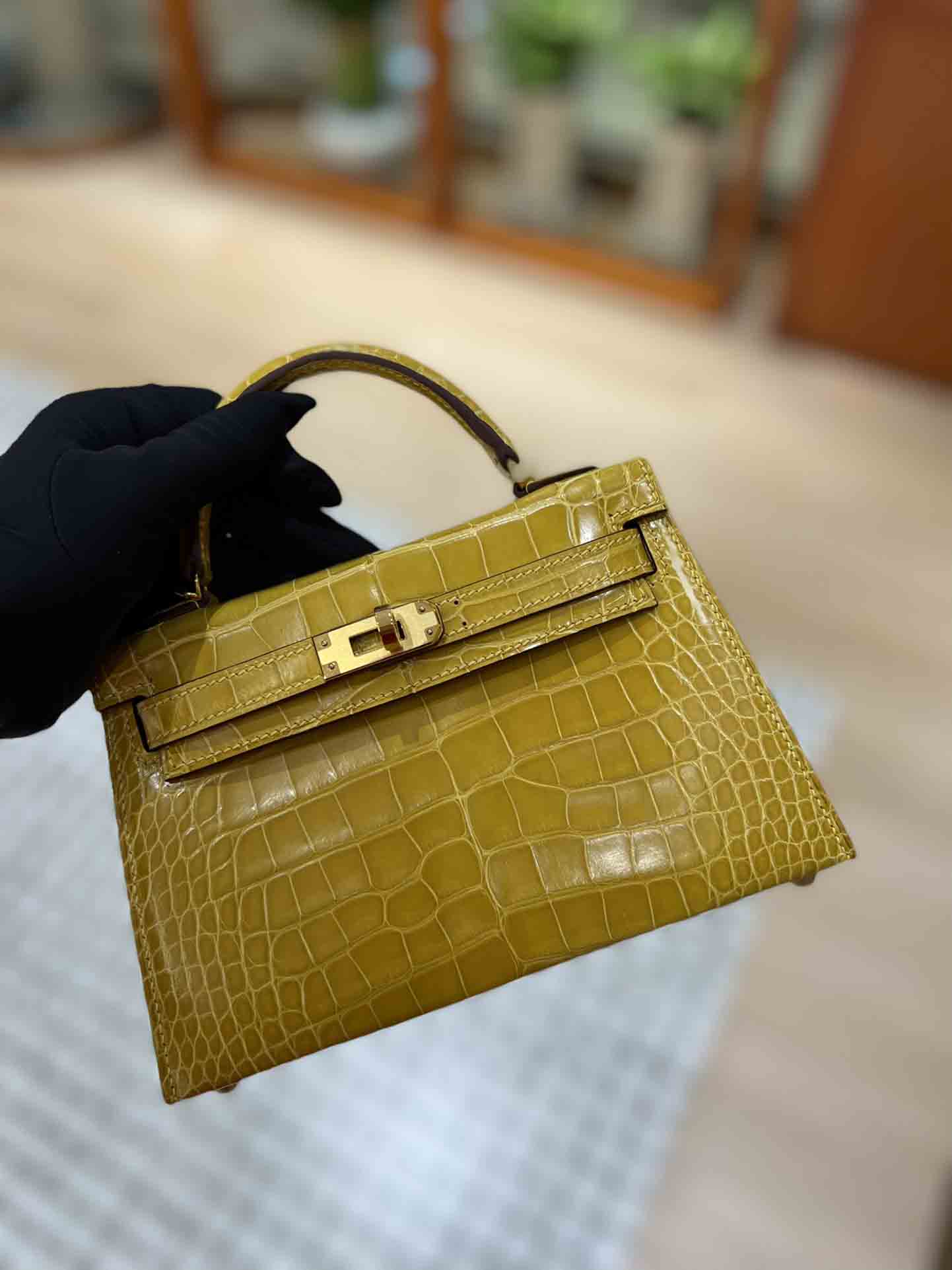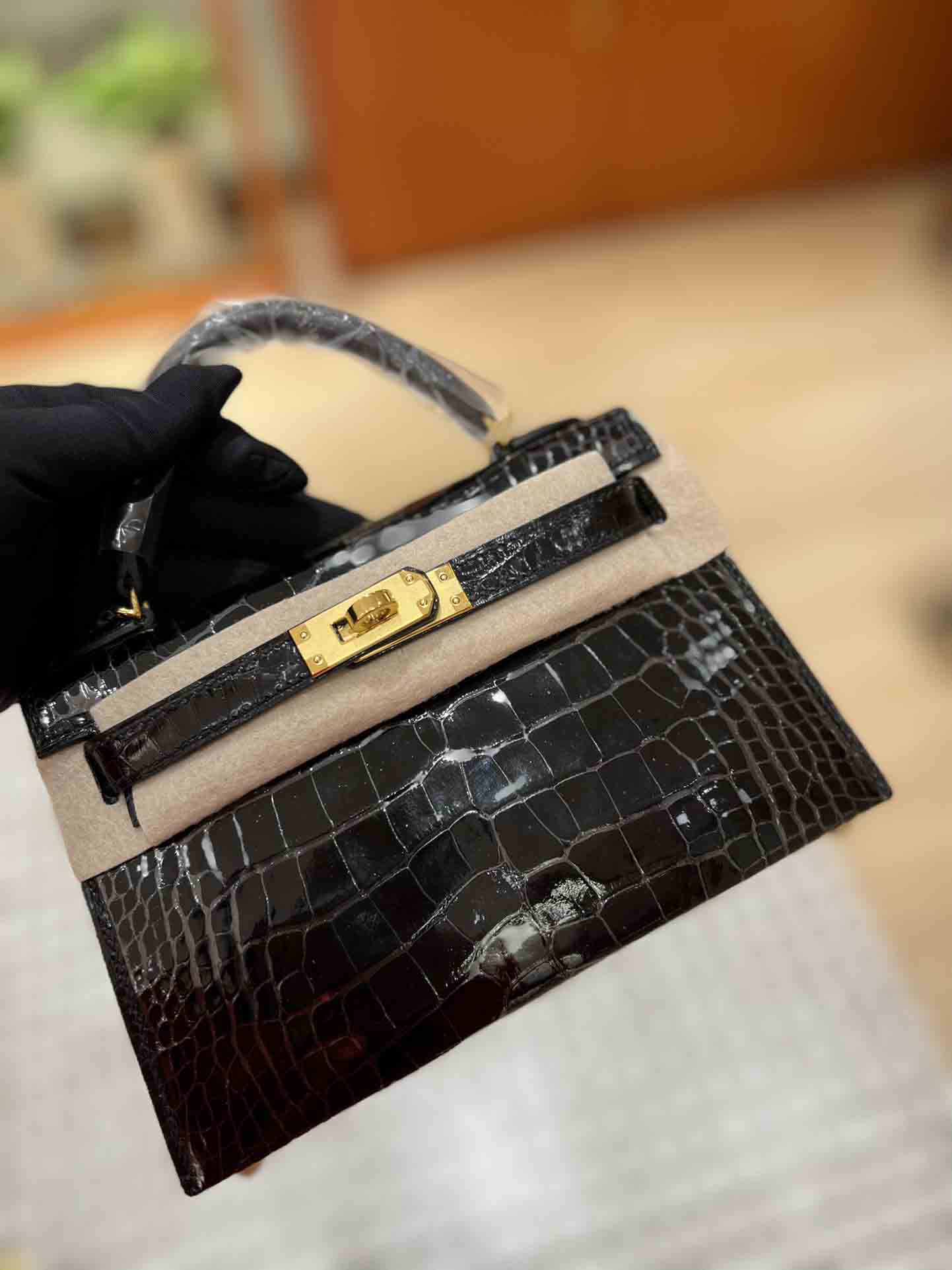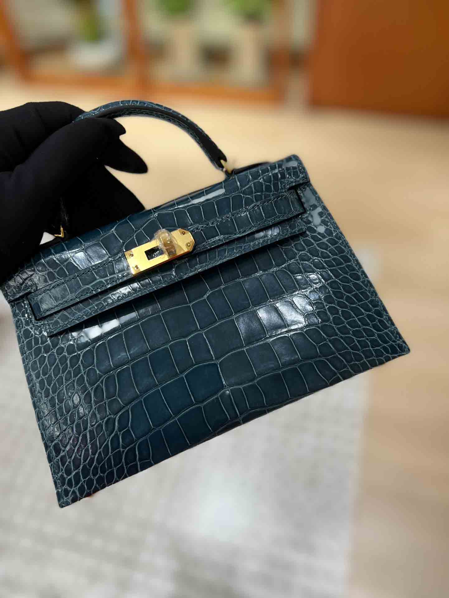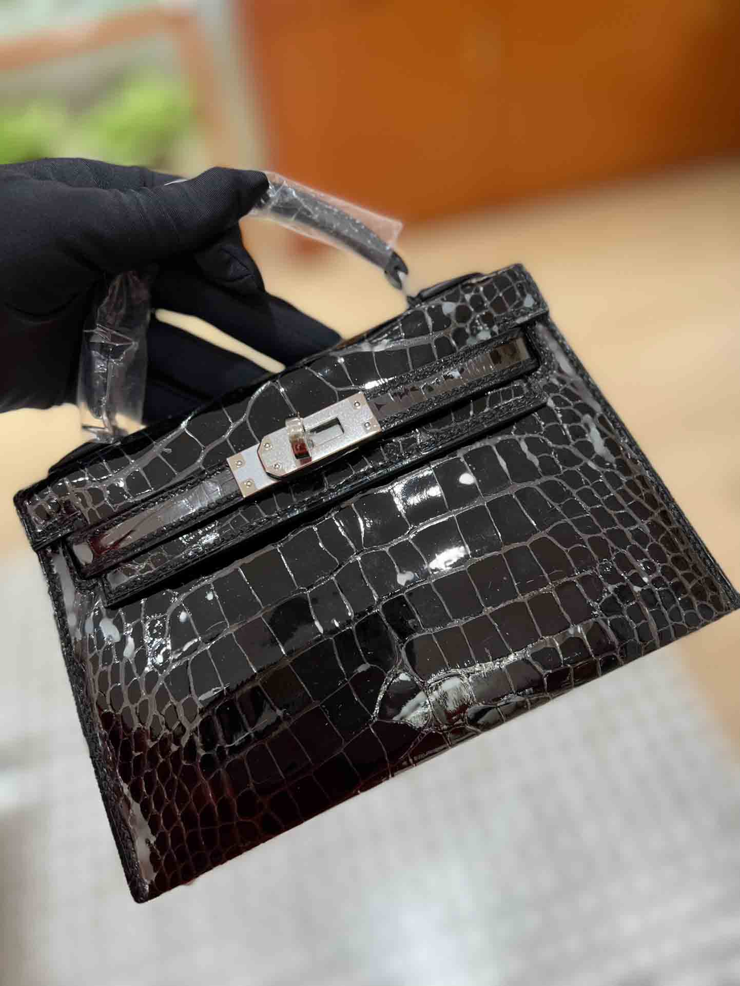 kelly二代美洲鳄,自然光下实拍 爱马仕Kelly二代采用的是进口兴隆鳄鱼皮,这种皮也是爱马仕常用皮。