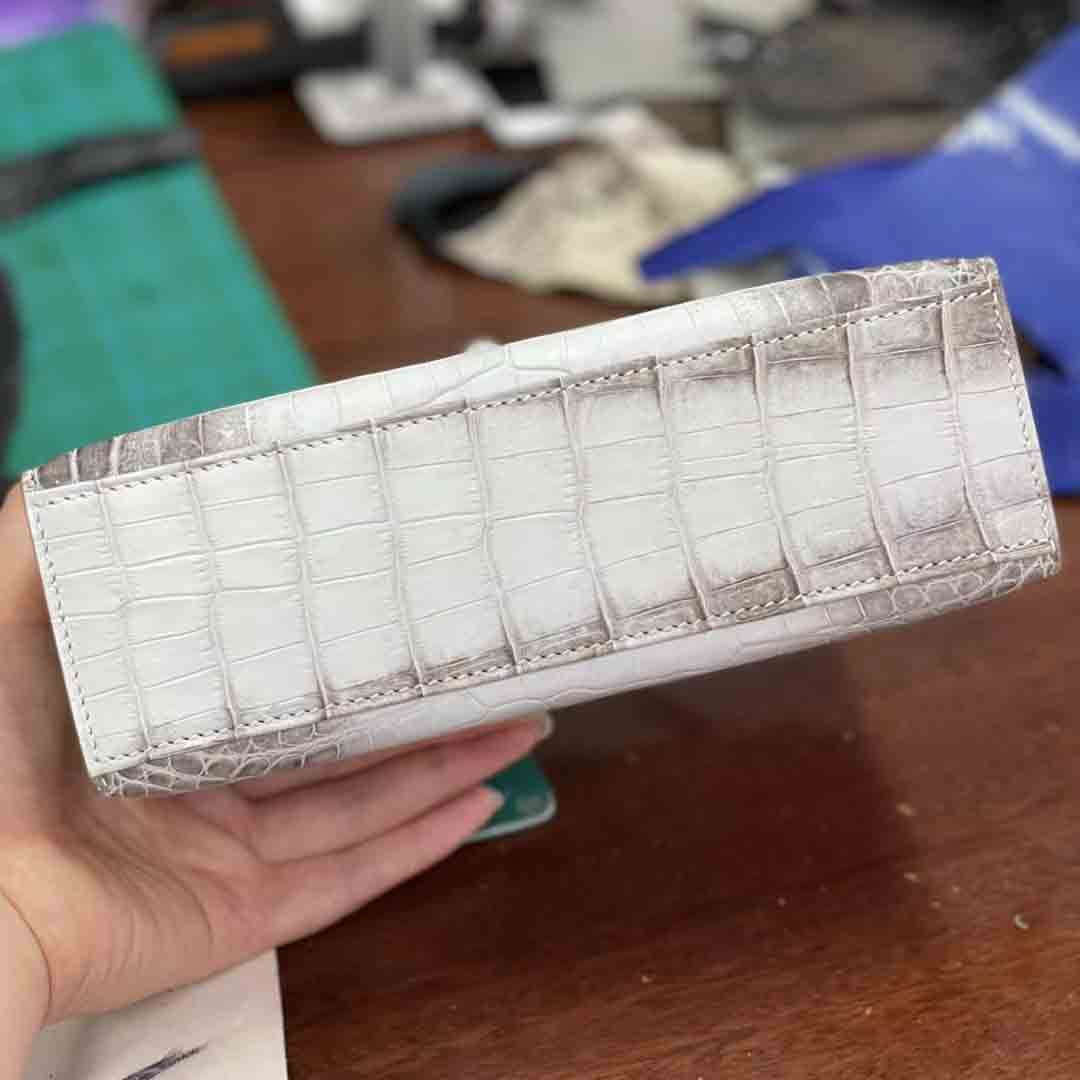 喜马拉雅白色凯丽包 爱马仕经典女包中的凯莉包(Kelly)也一包难求,这个系列是爱马仕的招牌,由于做工繁杂,数量稀有。