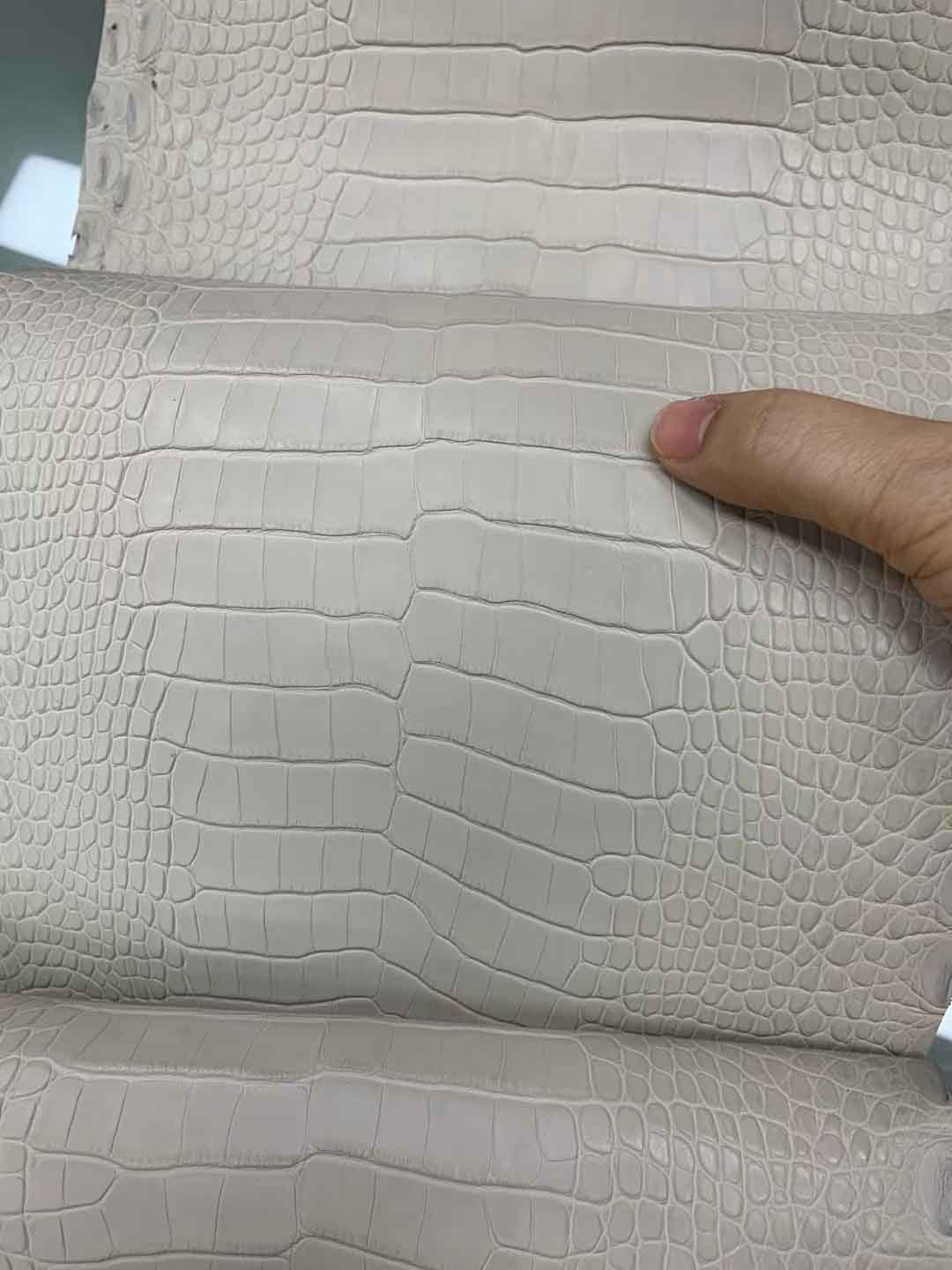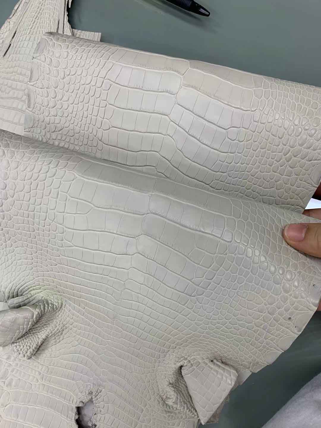 美洲鳄冰川白皮料到货,可以订做自己喜欢的皮料颜色。美洲鳄皮包订做联系 95506803
