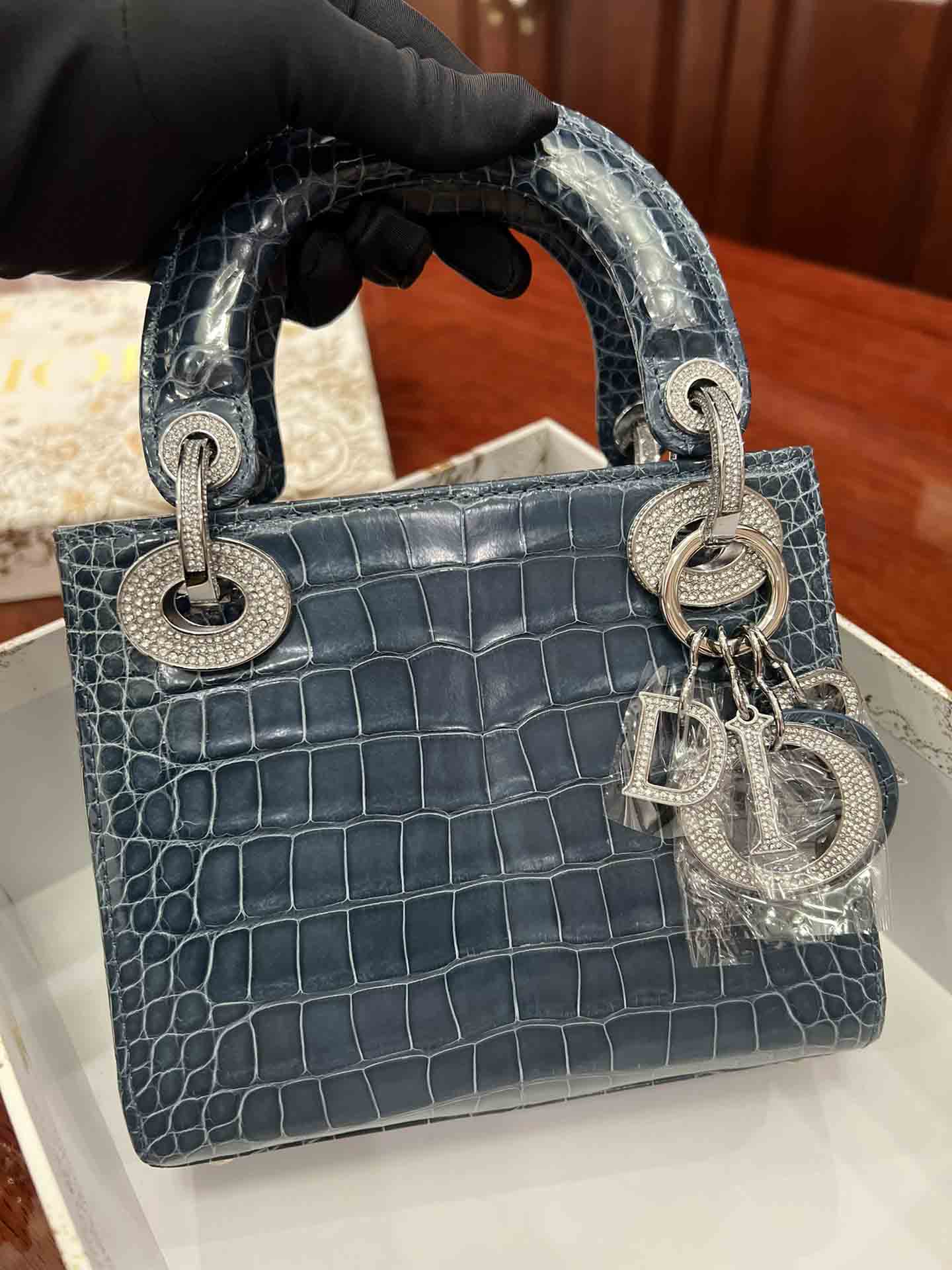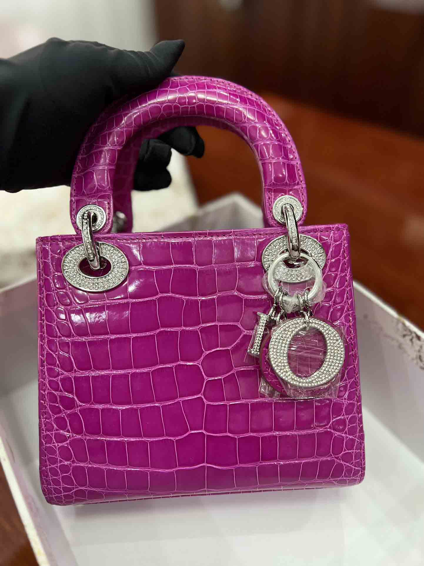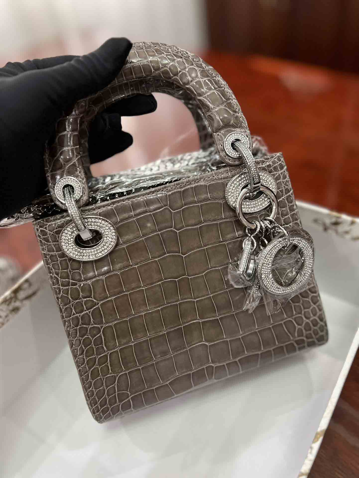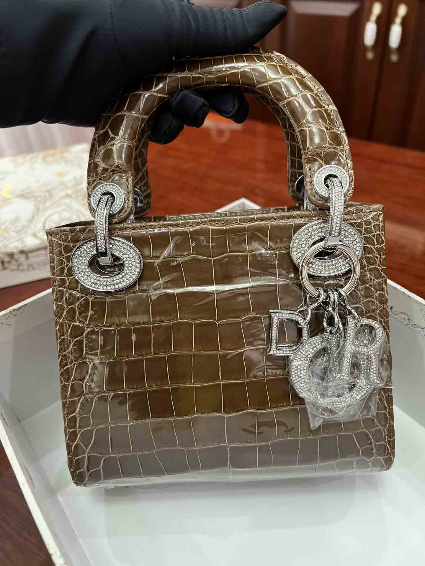 美洲鳄高光迪奥三格17cm女包订做。