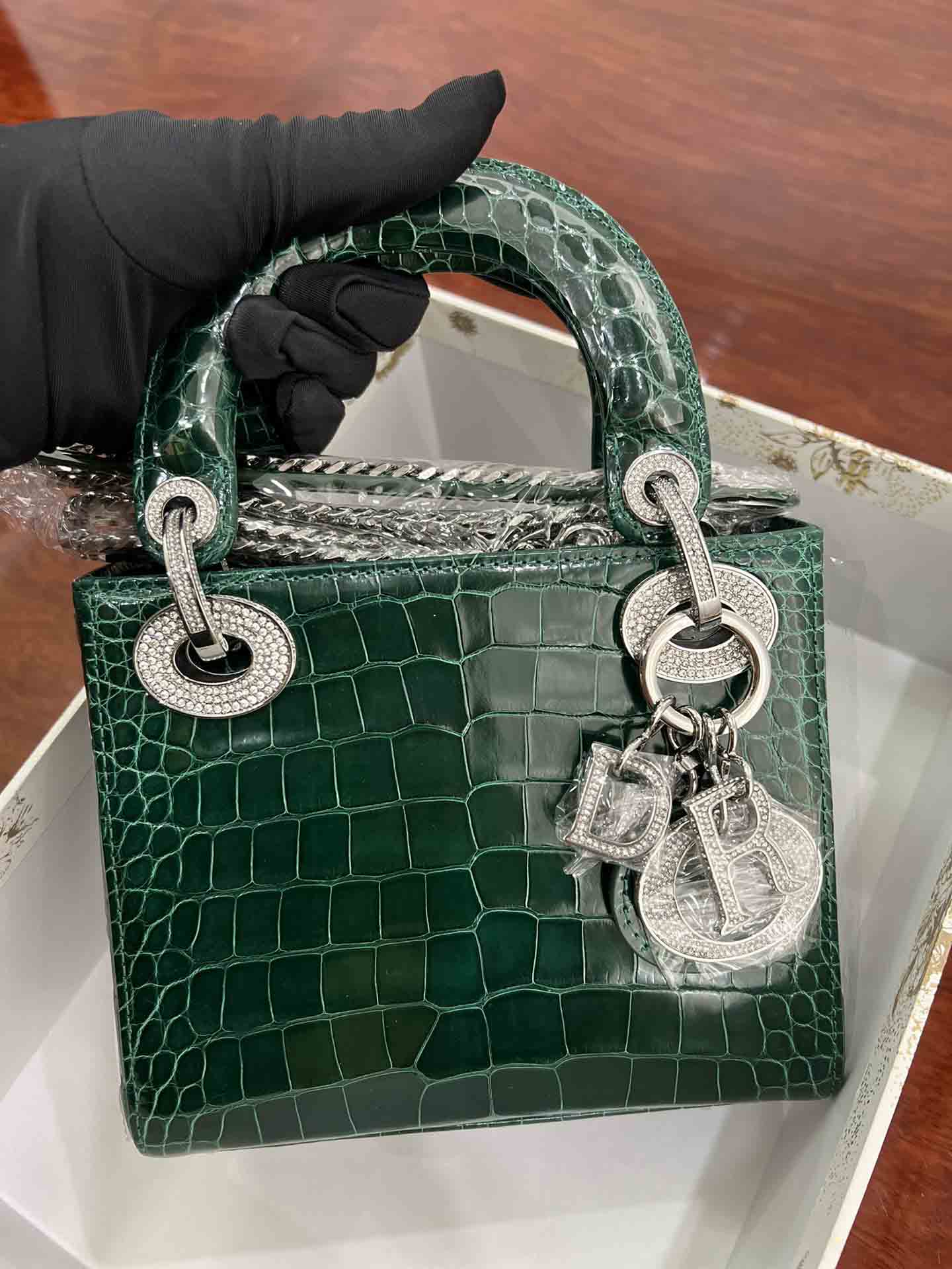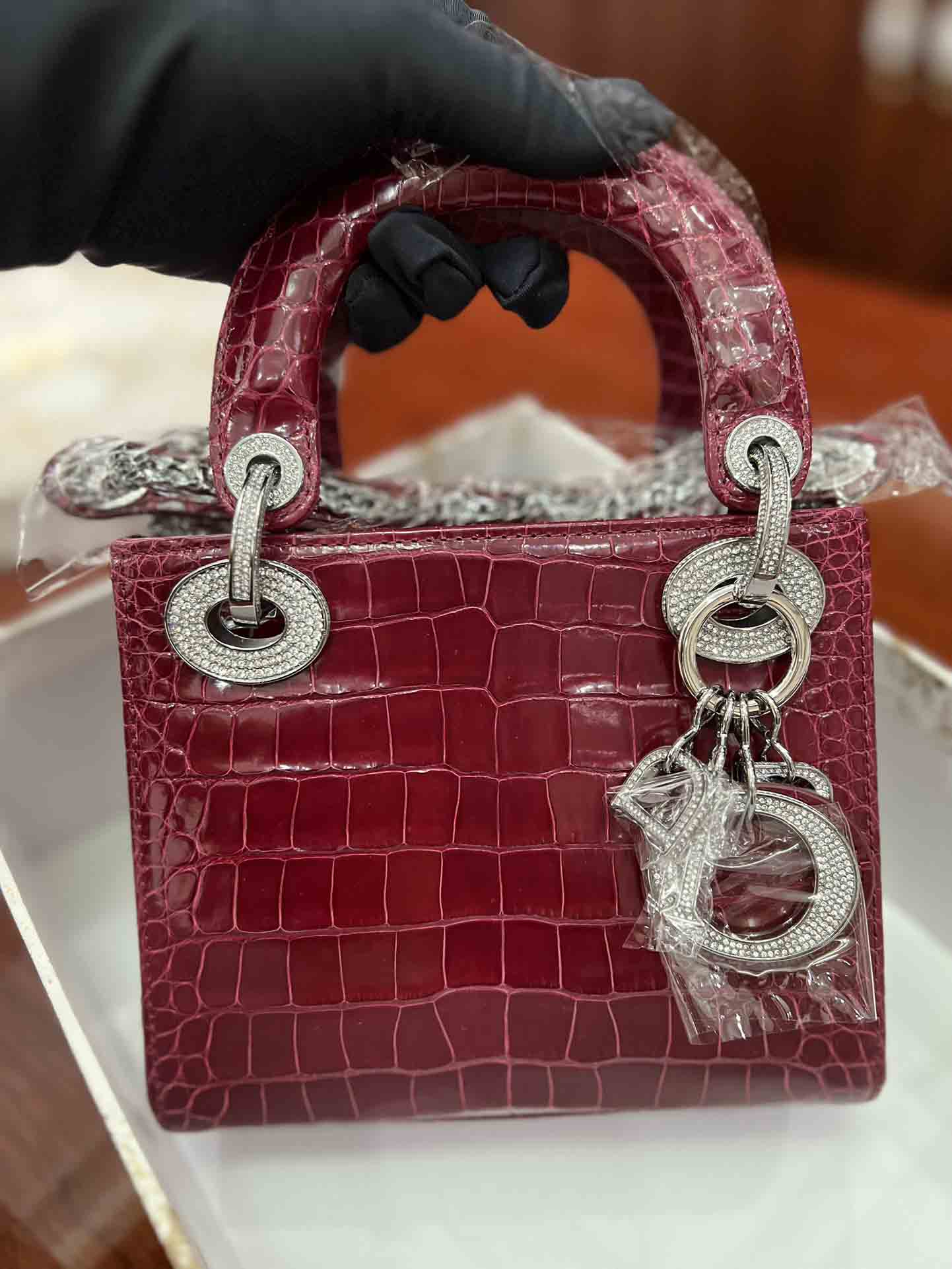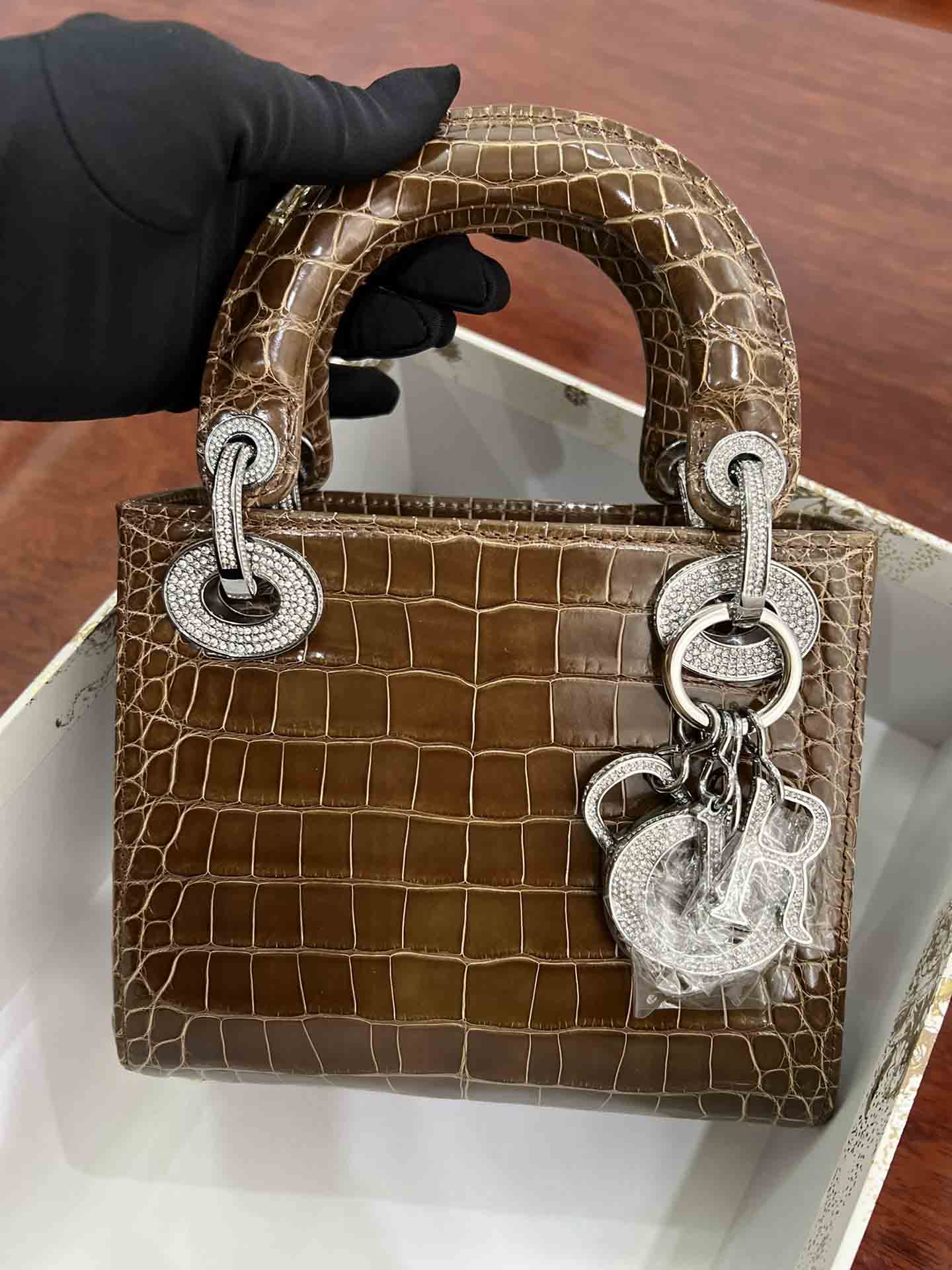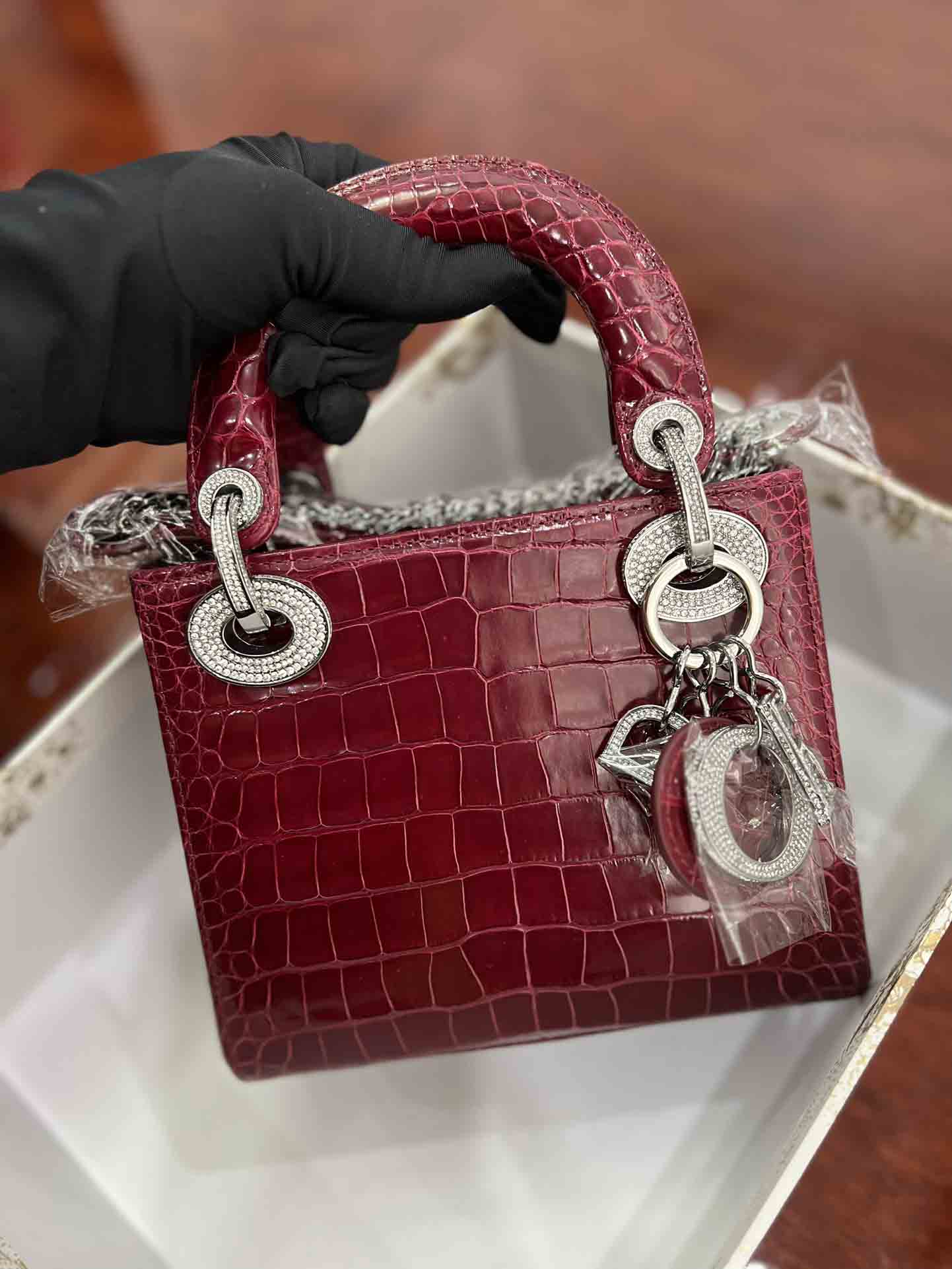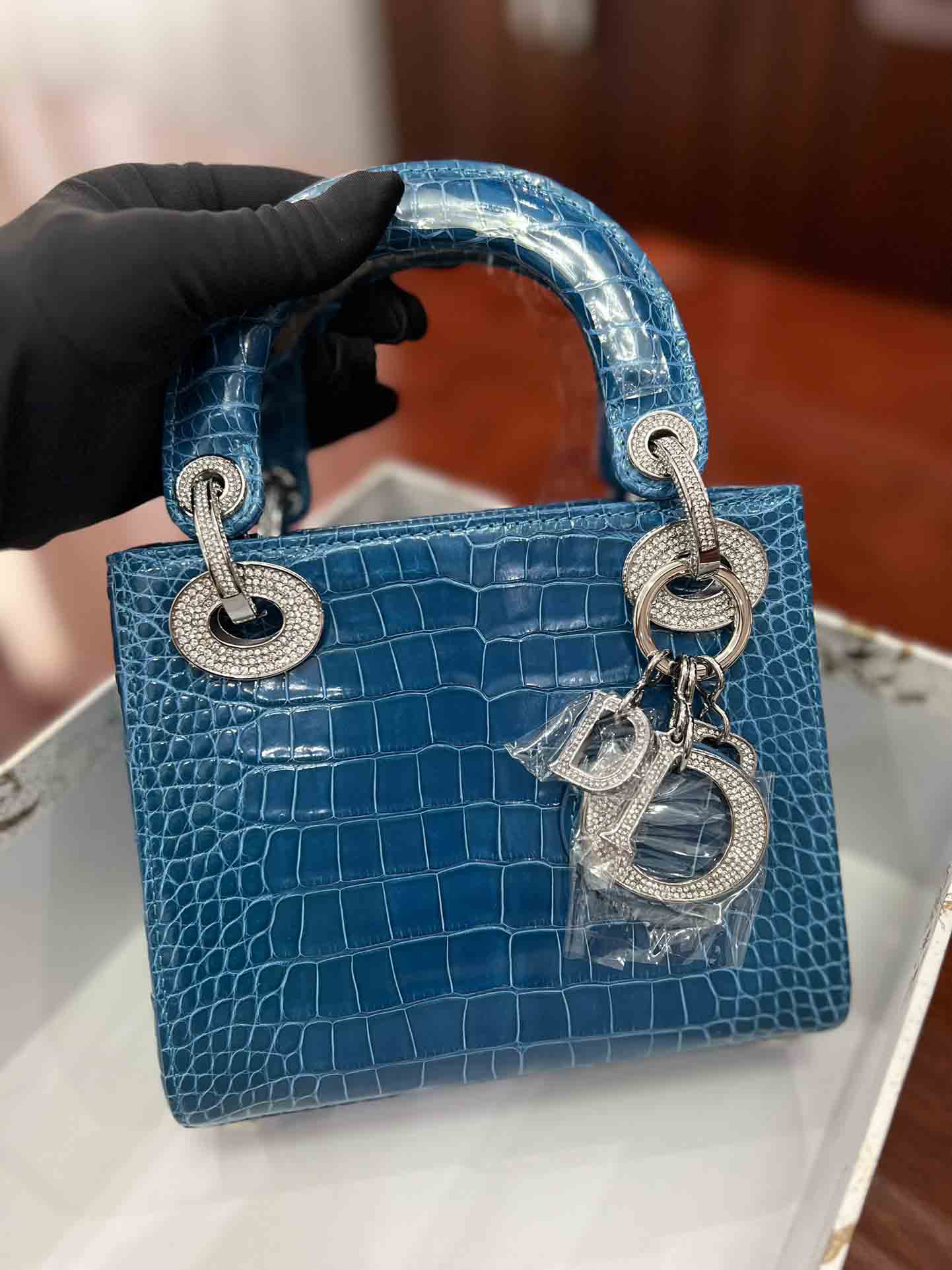 美洲鳄高光迪奥三格17cm女包订做。