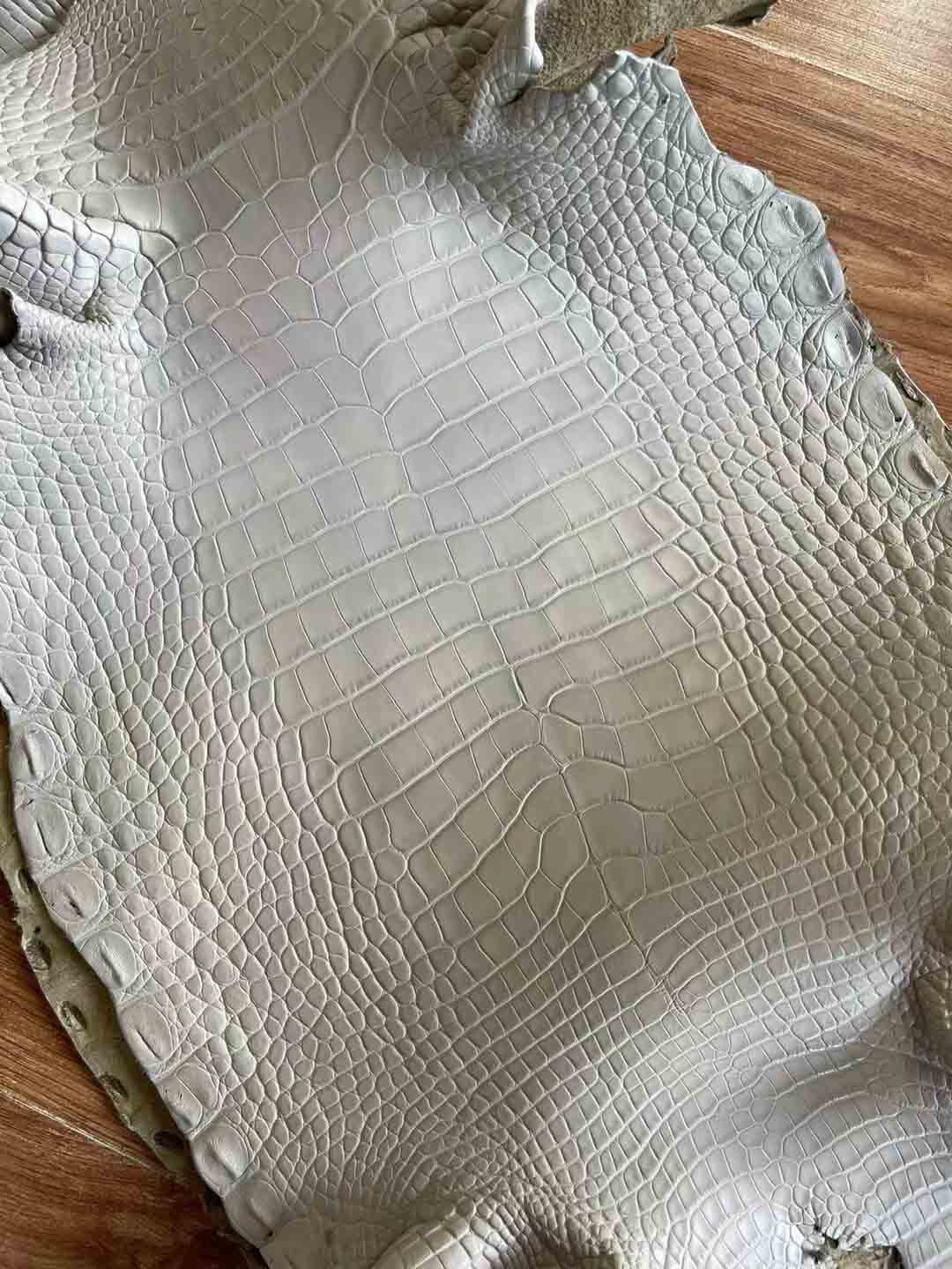 美洲鳄鱼体型比较大,所以美洲鳄鱼皮的张幅比较大。