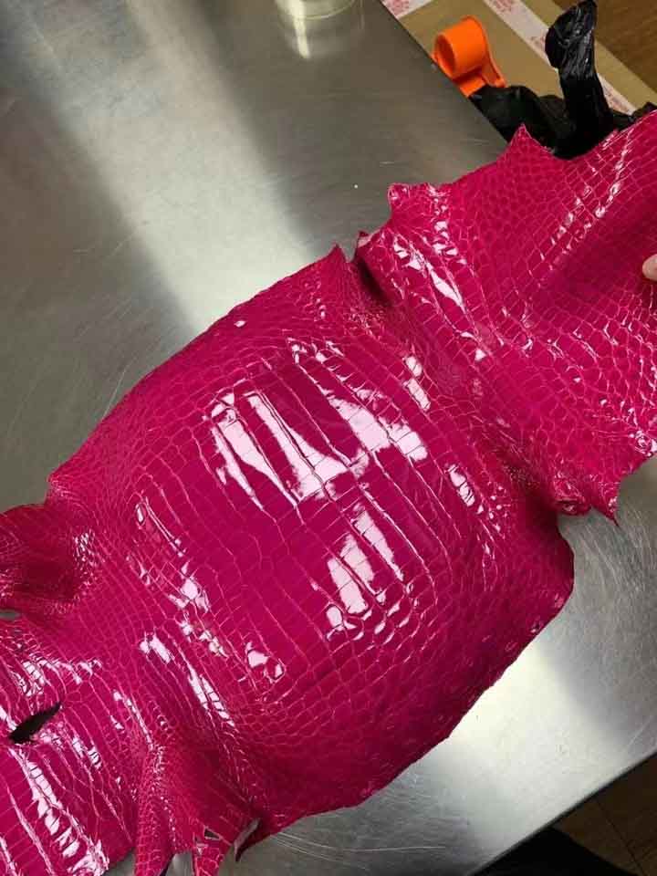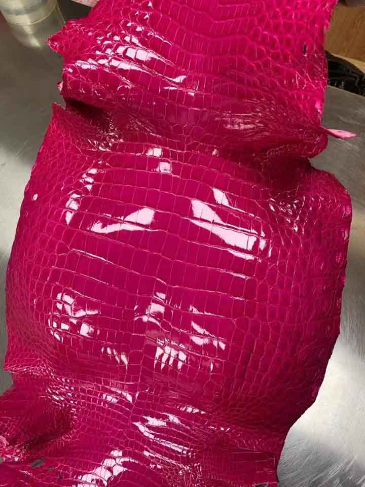 进口尼罗光亮鳄鱼皮玫瑰红色