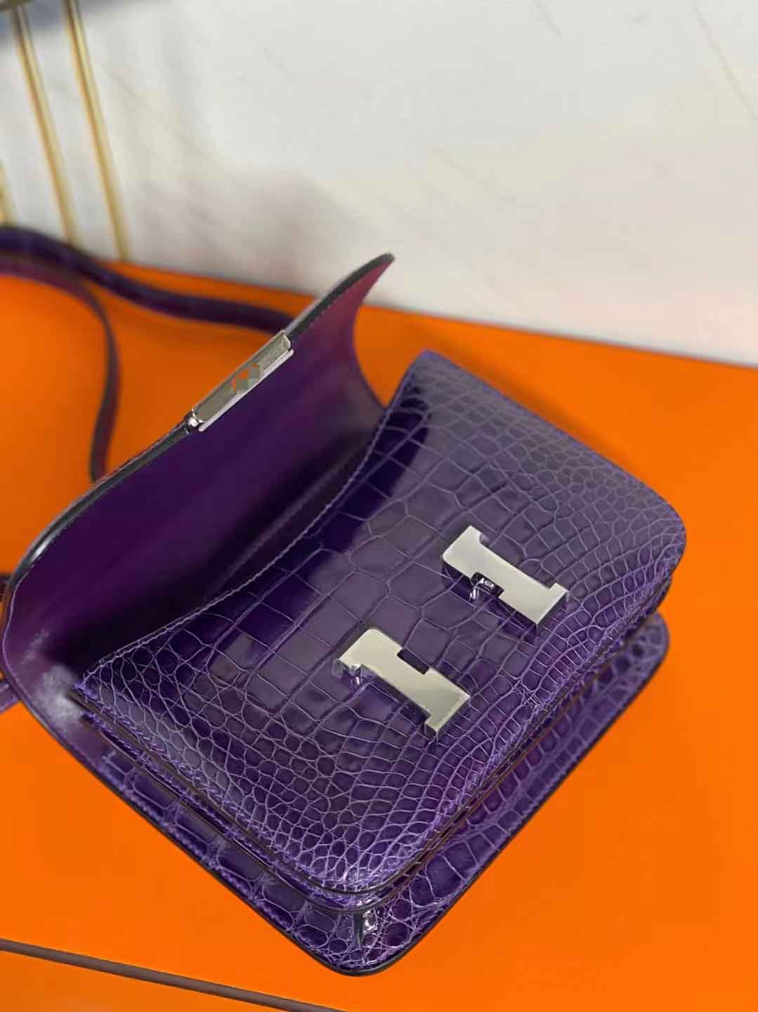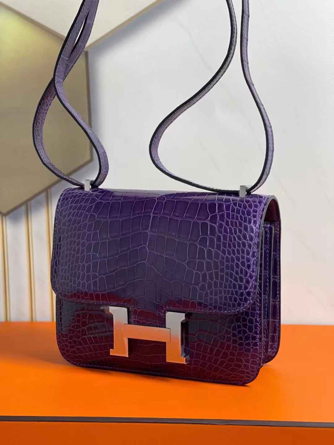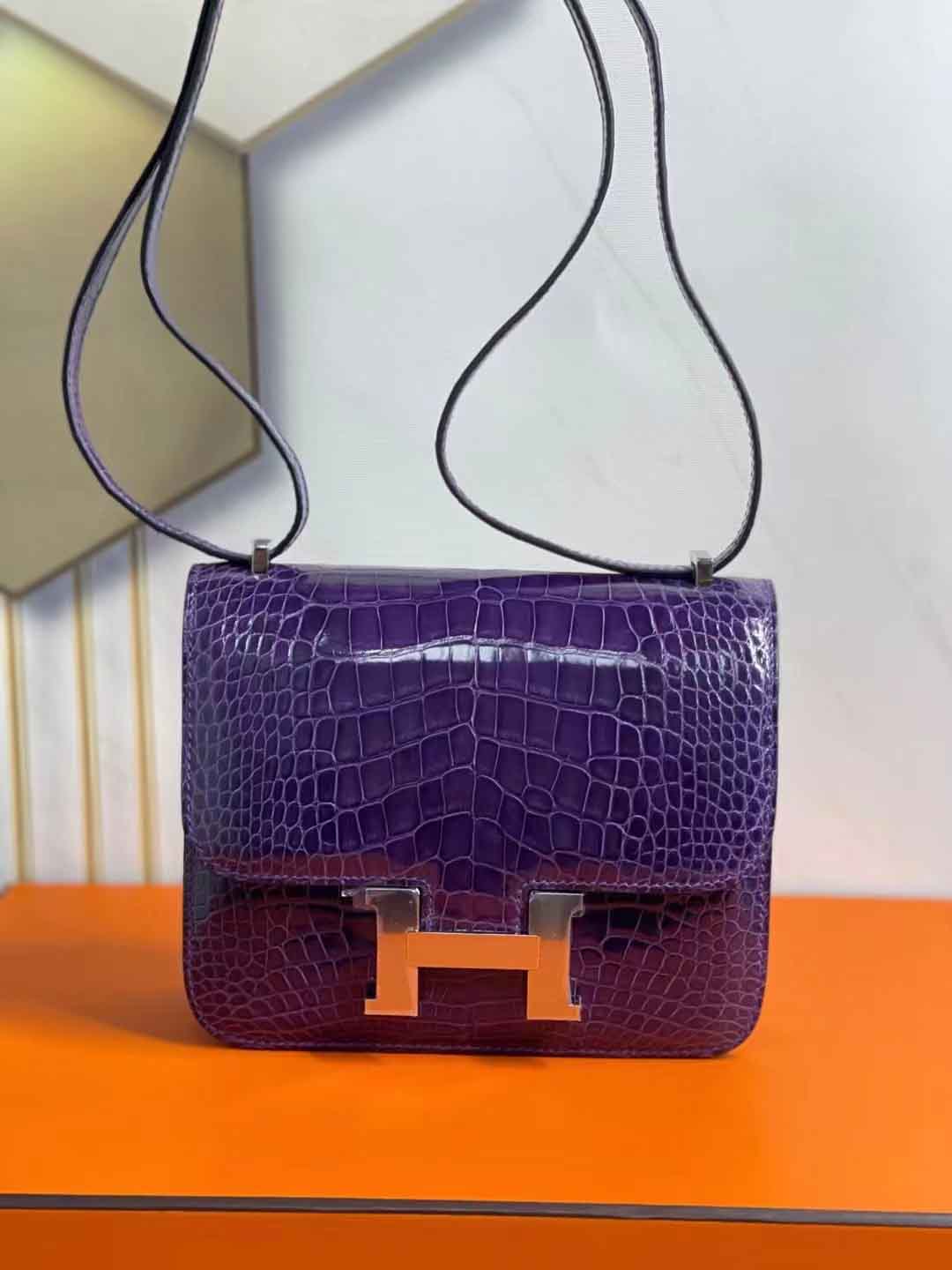 constance 18cm 亮面美洲鳄鱼 葡萄紫