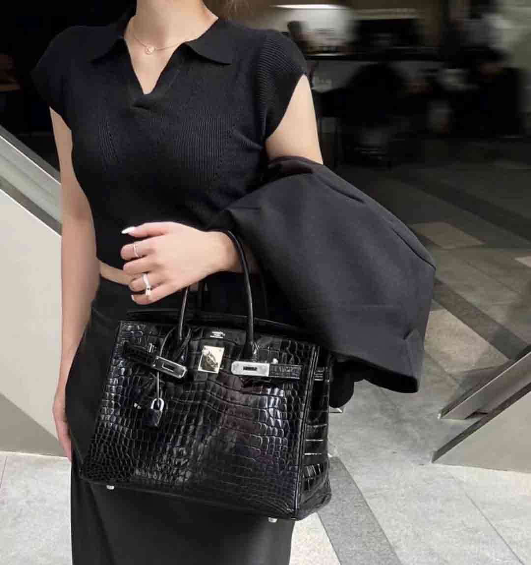众所周知鳄鱼皮堪称皮革中的黄金,以顶级奢华稀有著称。这不仅是因为鳄鱼数量极为稀少,更是由于鳄鱼生长的速度慢而且养殖成本极高,而可使用的鳄鱼皮仅限于鳄鱼腹部的狭长部分。鳄鱼皮美在它天然渐变的方格纹路,虽然缺乏弹性,但质地非常结实,有种说法是鳄鱼皮皮具只要保养得当会越用越光泽,越用越柔韧,所以鳄鱼皮包理所当然的成为了众多明星们的宠儿!