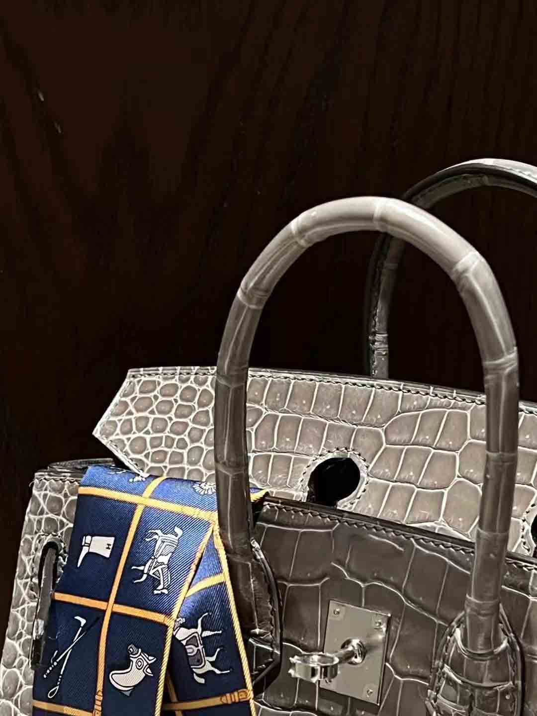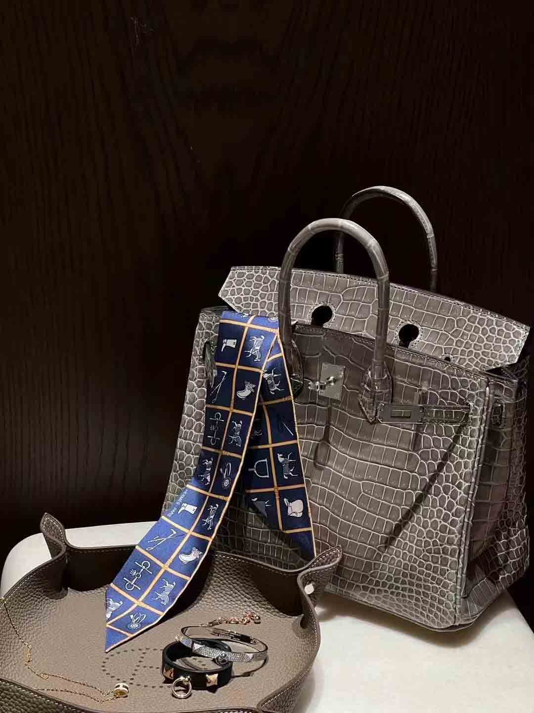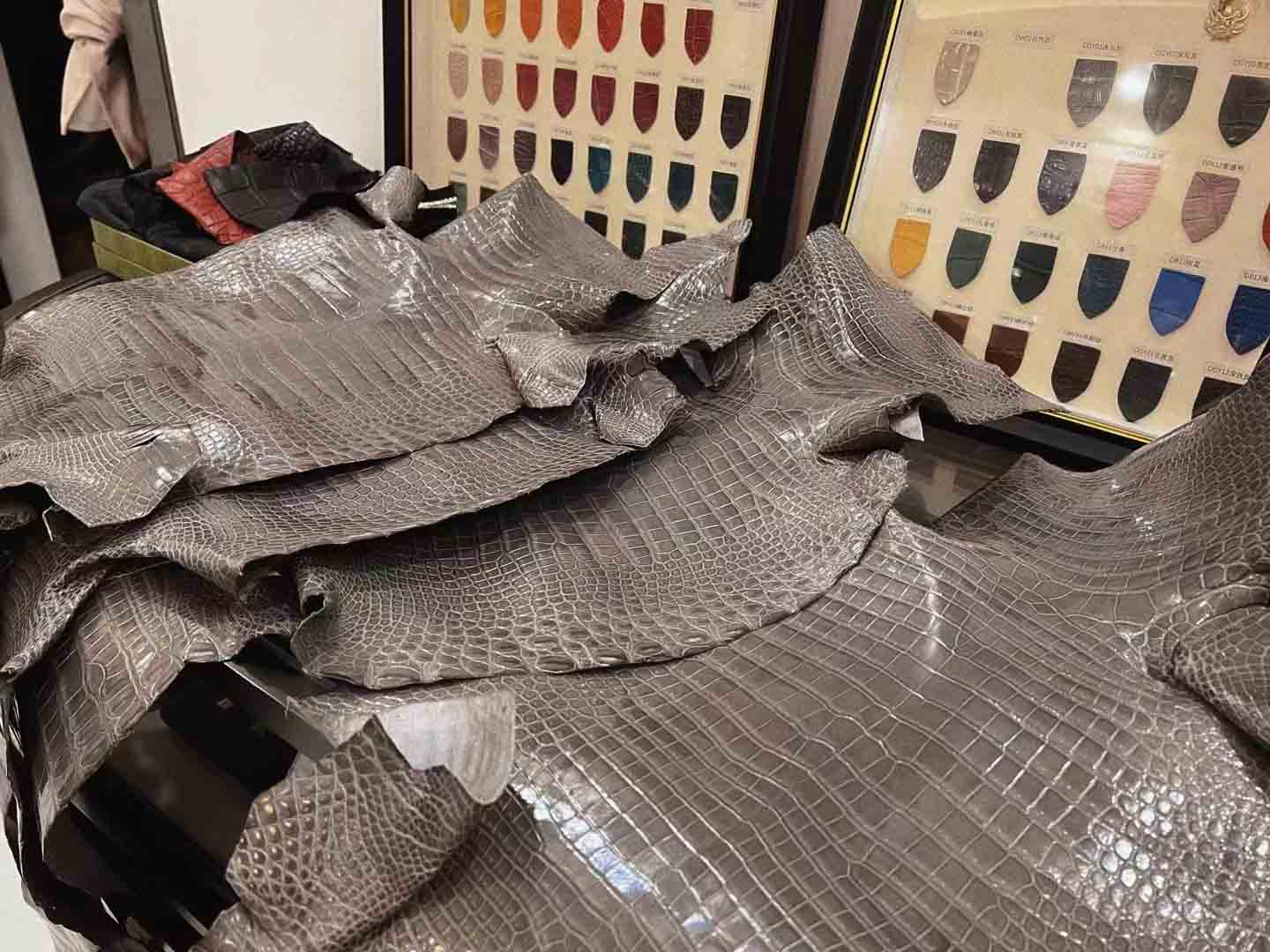 好的鳄鱼皮,就是倒V湾鳄,第二短吻鳄,第三尼罗鳄最普通的是尼罗鳄暹罗鳄。同样用Birkin做对比,倒V湾鳄比方块短吻鳄贵了将近一倍。