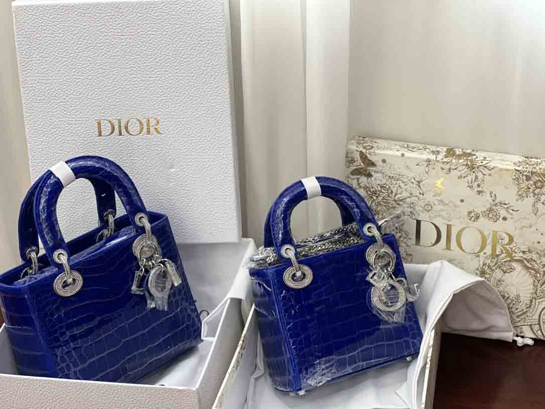 迪奥鳄鱼皮的亮面和雾面的戴妃包包的对比,两款都是水墨蓝。