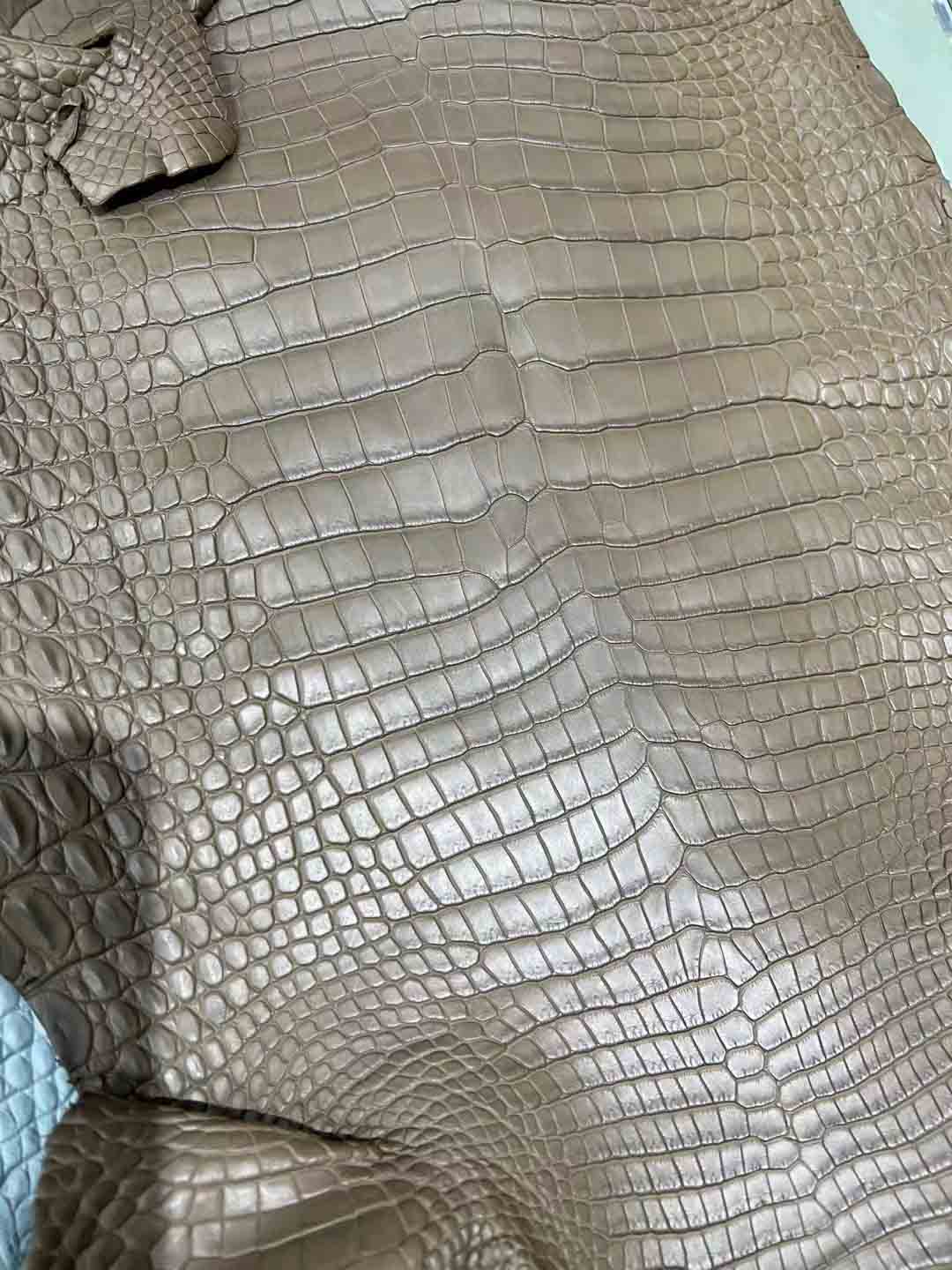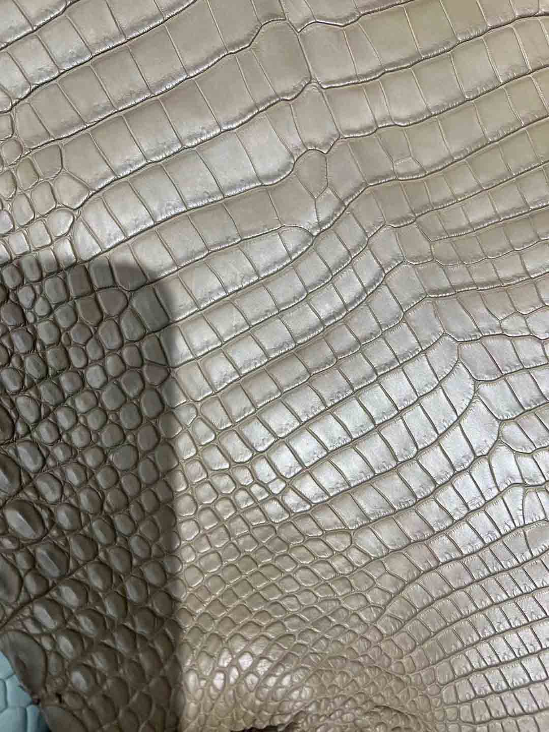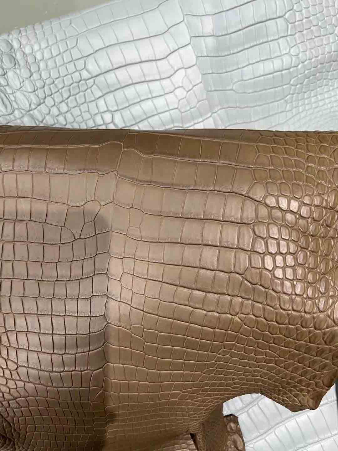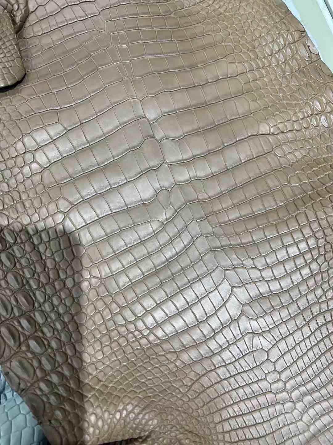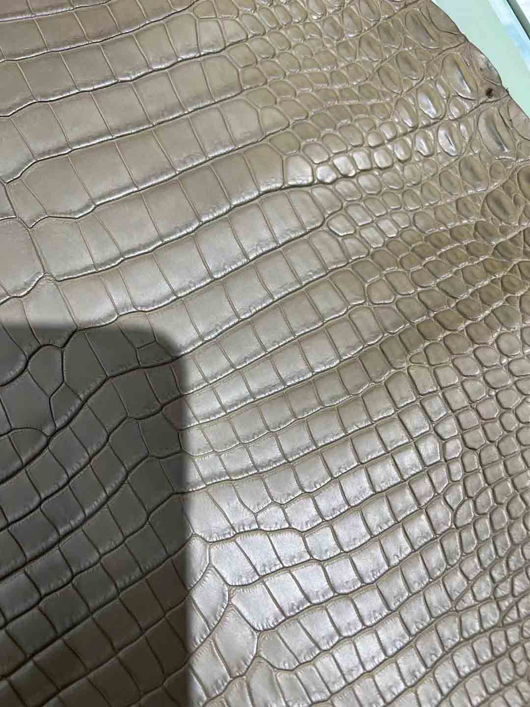 包包的材质是极其稀有的湾鳄皮,湾鳄皮制成的手提包可以多年不朽,而且越用越光彩亮洁。