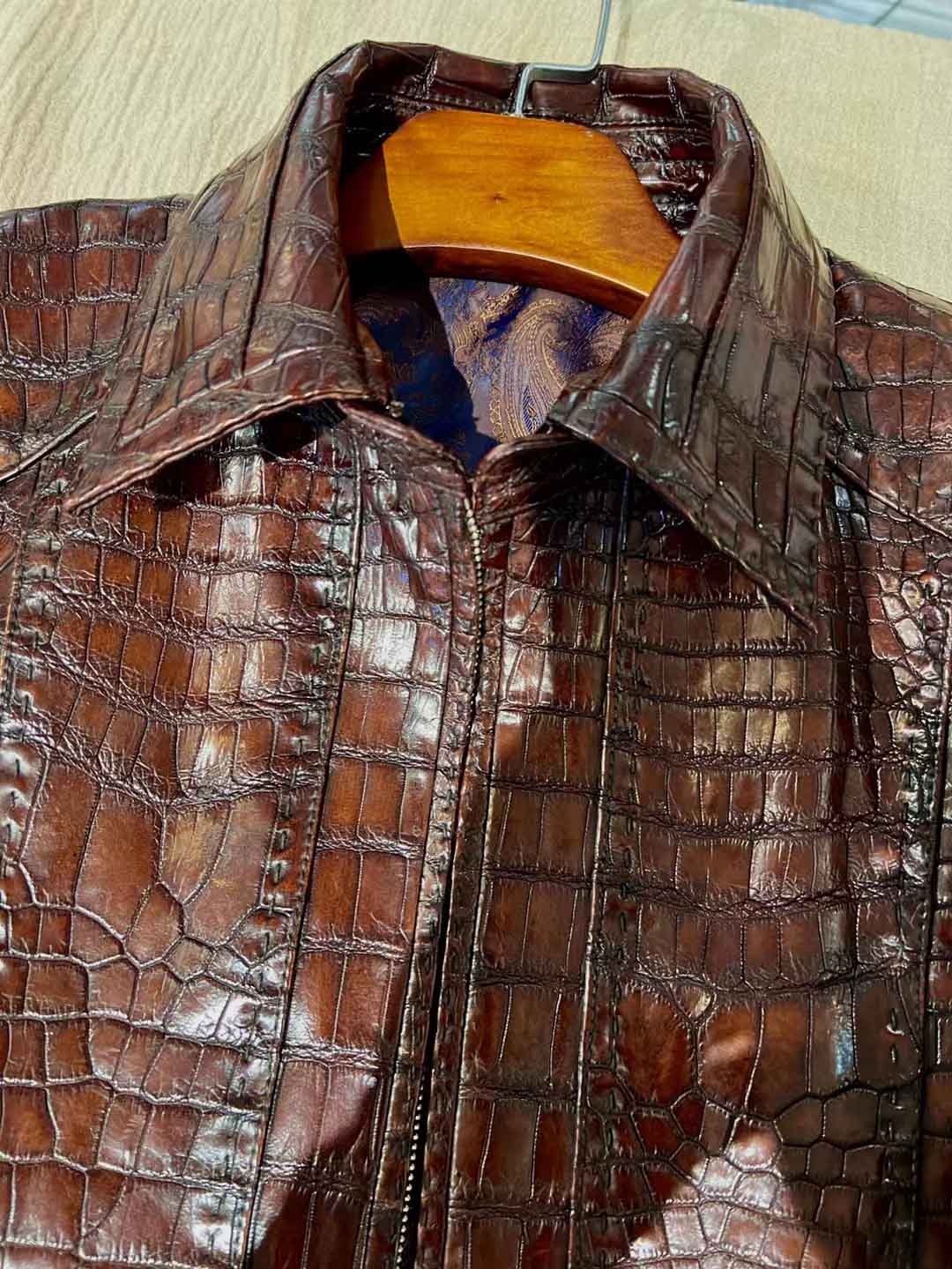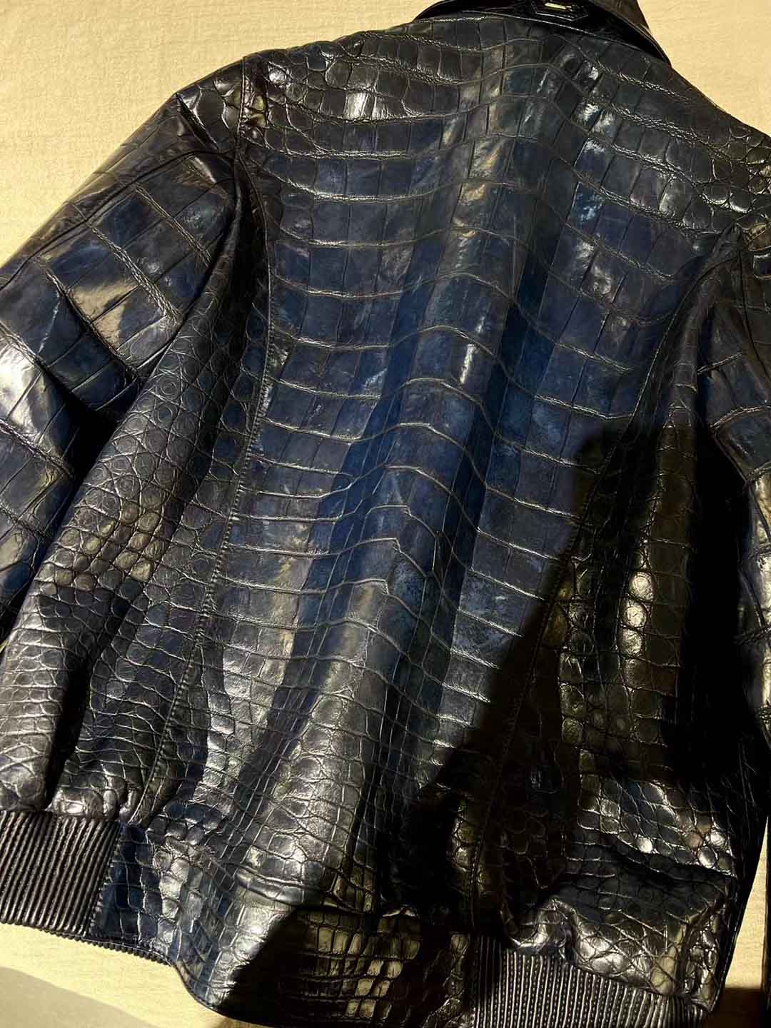 客订鉴赏|深蓝Berluti改色款鳄鱼#麻将格纹 表面有蜡染的效果 穿着自然复古风。同款可定 还有几件衣服的备料 需要抓紧。