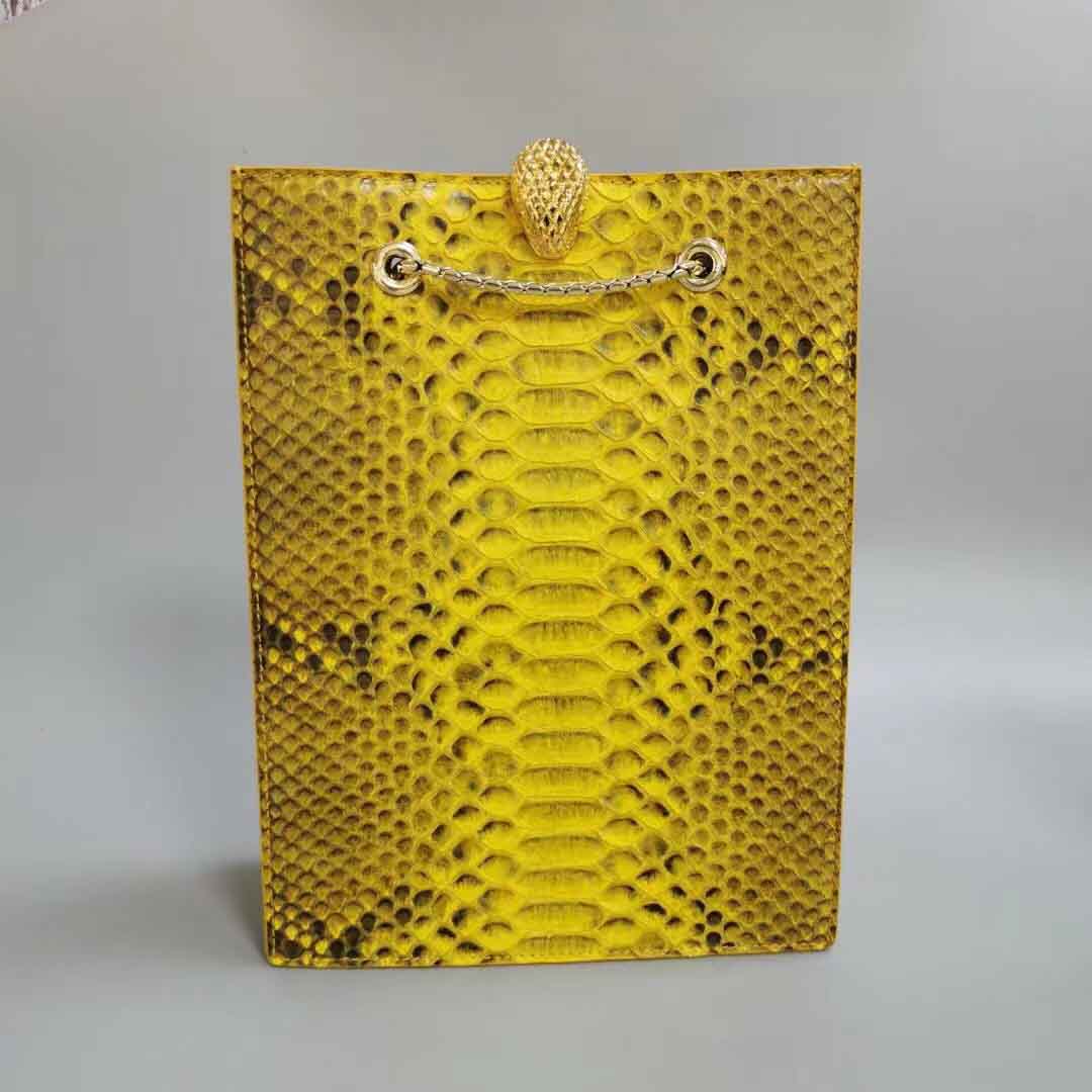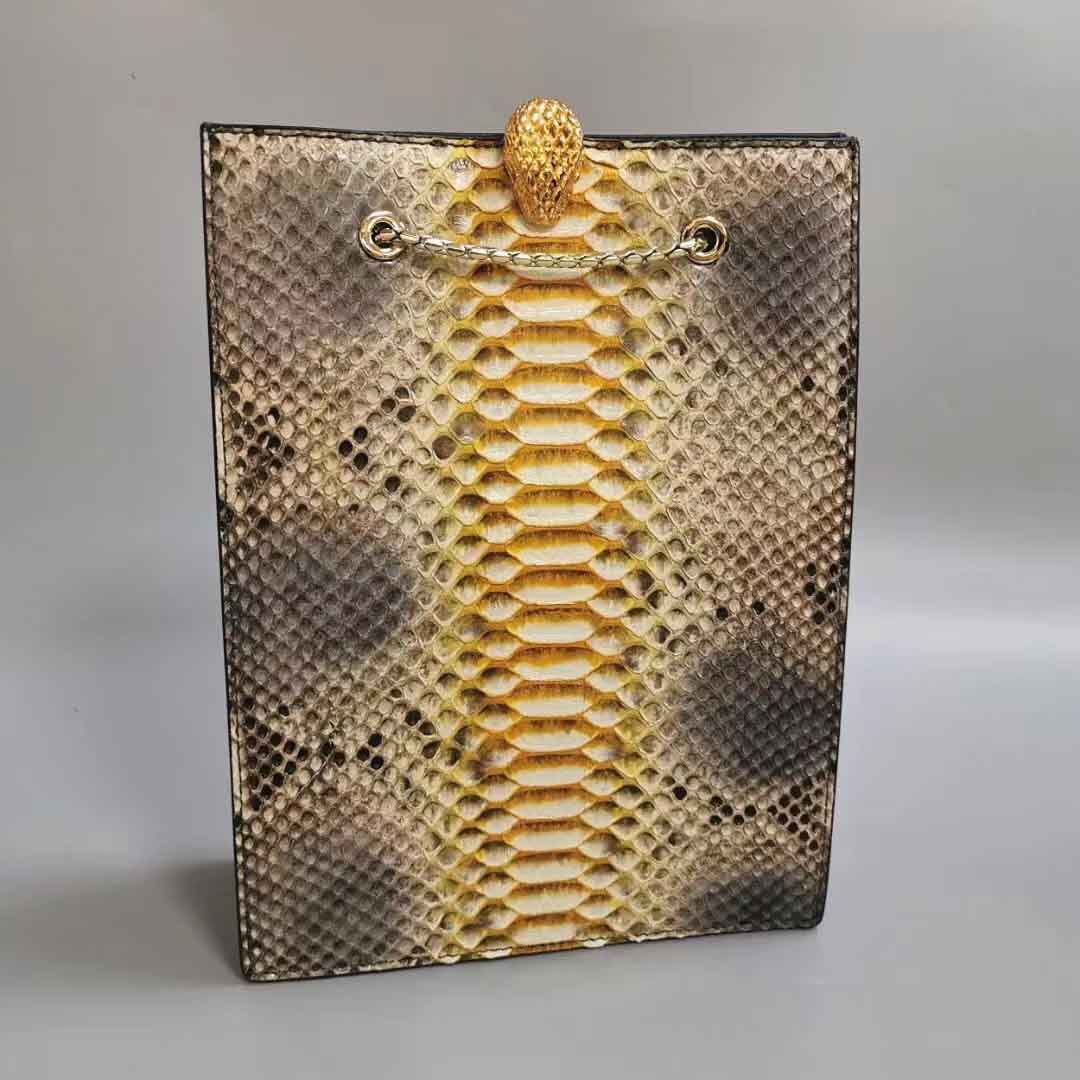 女士蟒皮竖桶包,高端稀有蟒皮,天然独特钻石纹独特漂亮。颜色也很美做工精细品质好内里牛皮,尺寸21*28*8