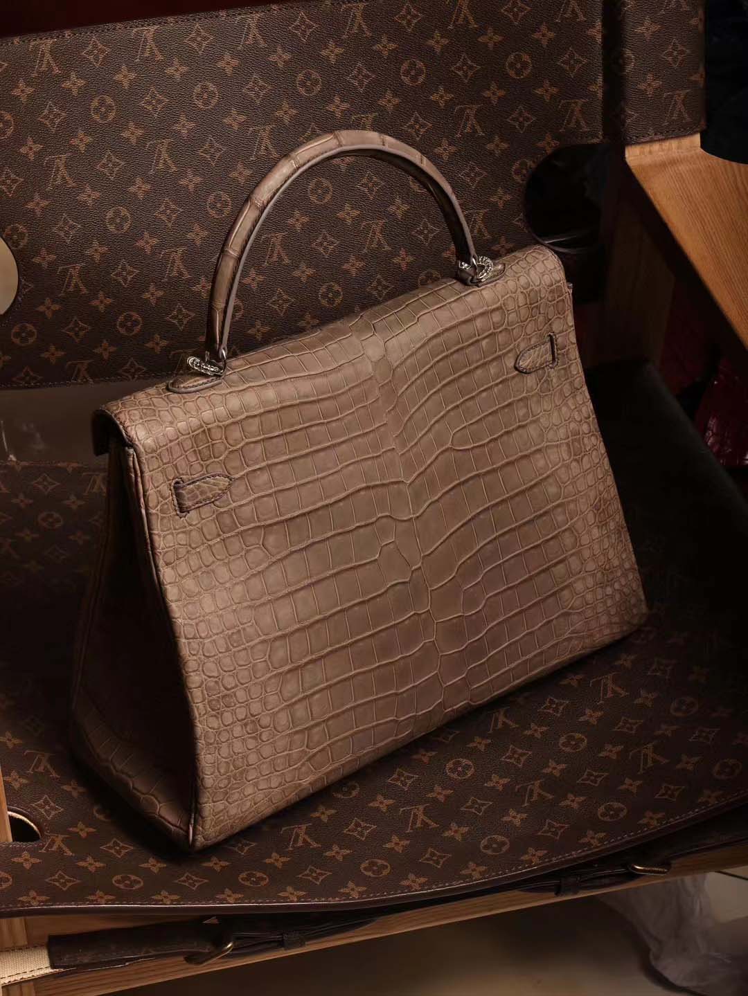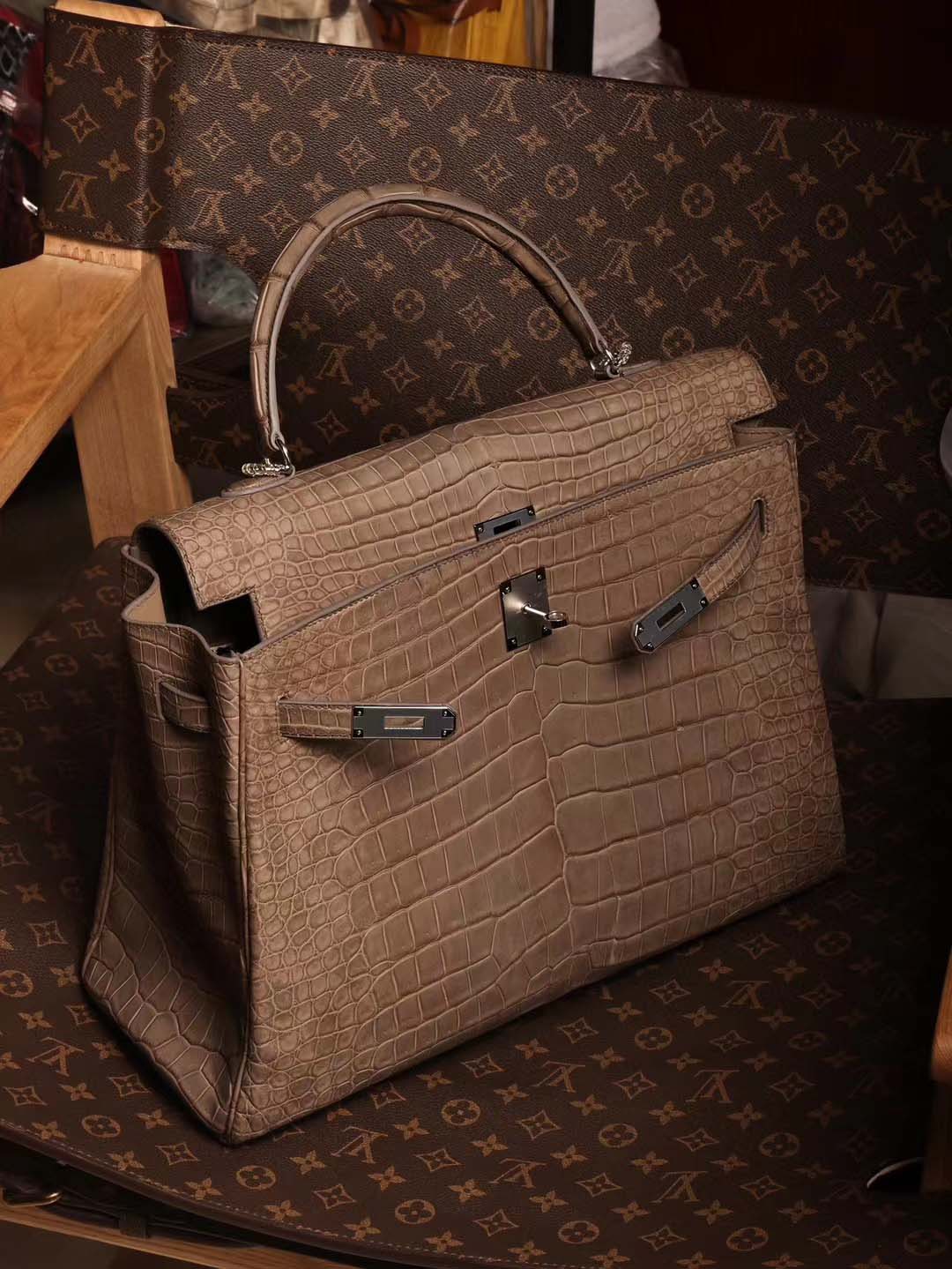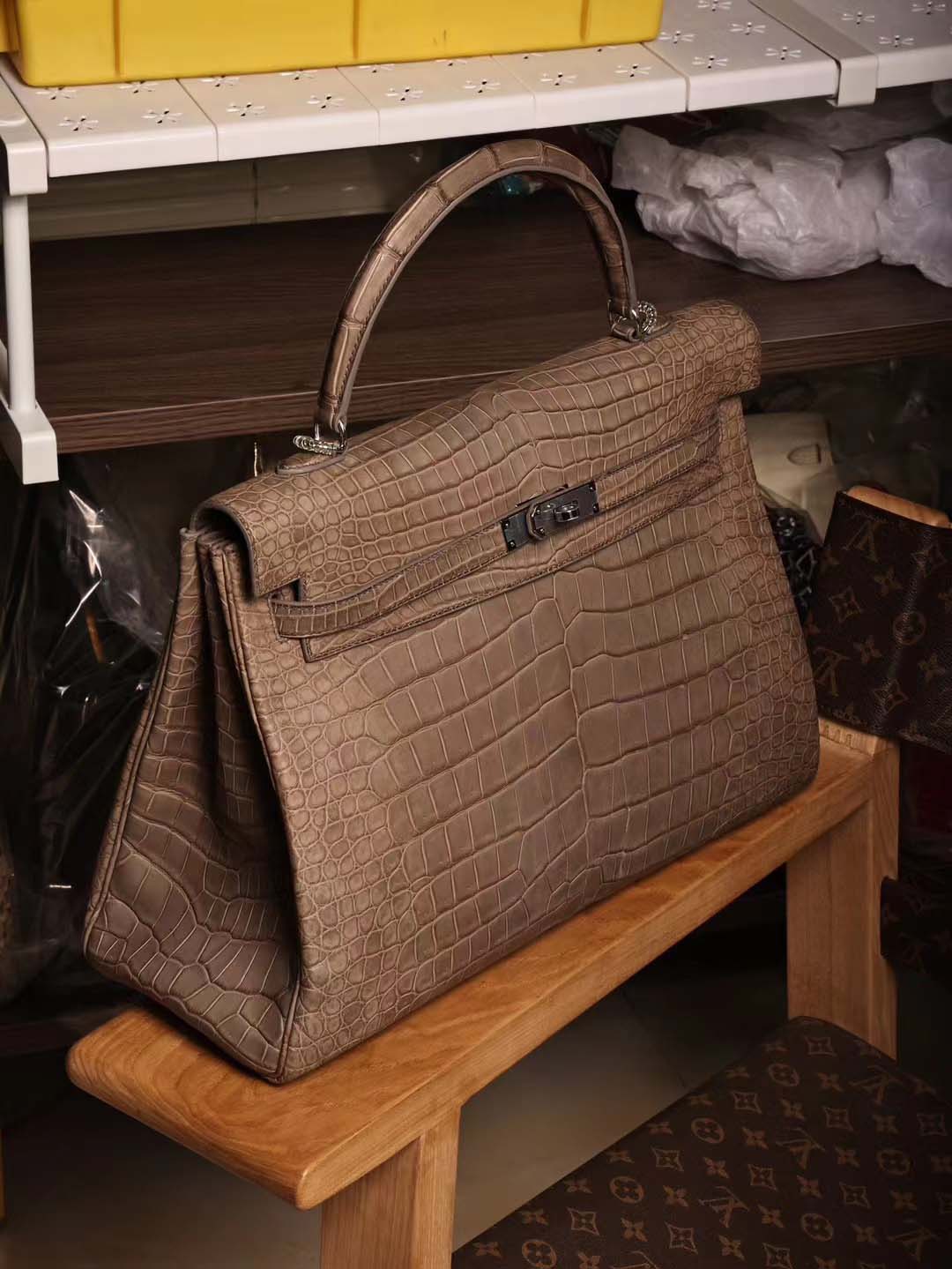 Kelly40,大象灰植鞣无涂湾鳄鱼皮手提包,高货,客订出