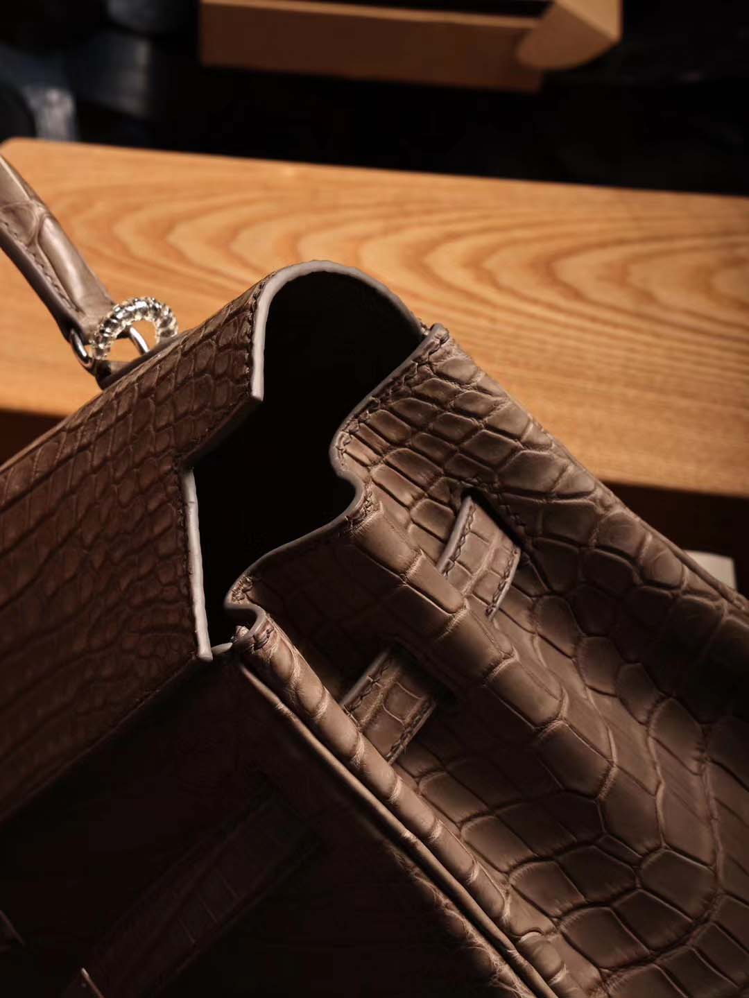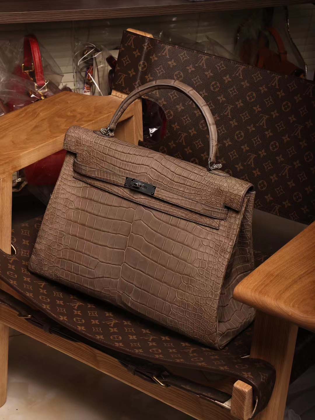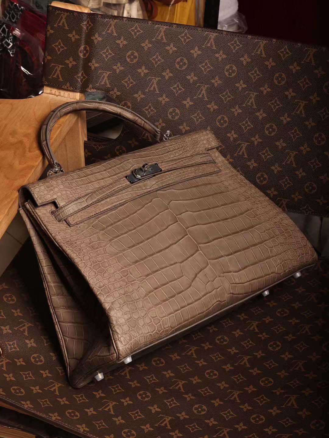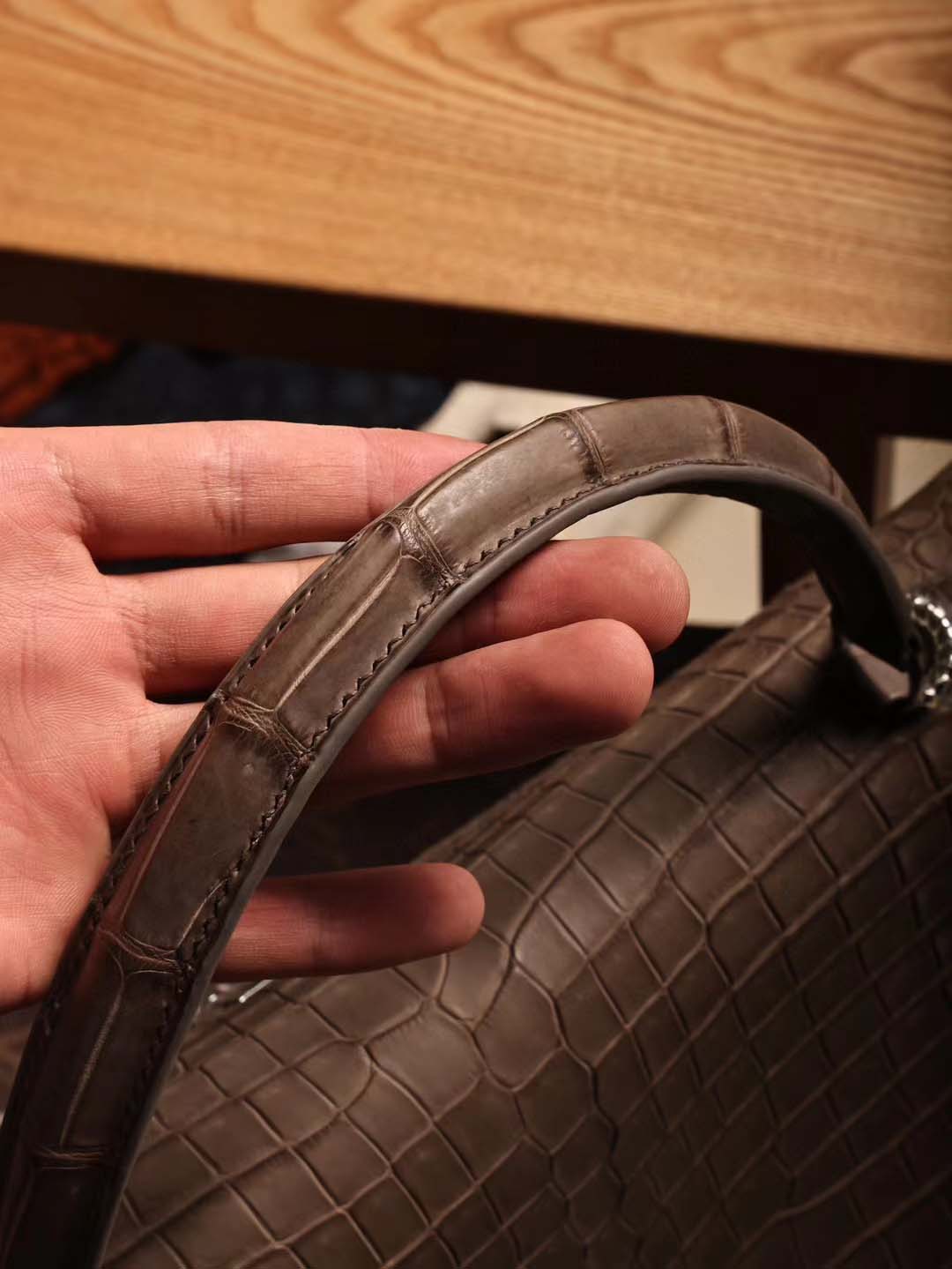 Kelly40,大象灰植鞣无涂湾鳄鱼皮手提包,高货,客订出