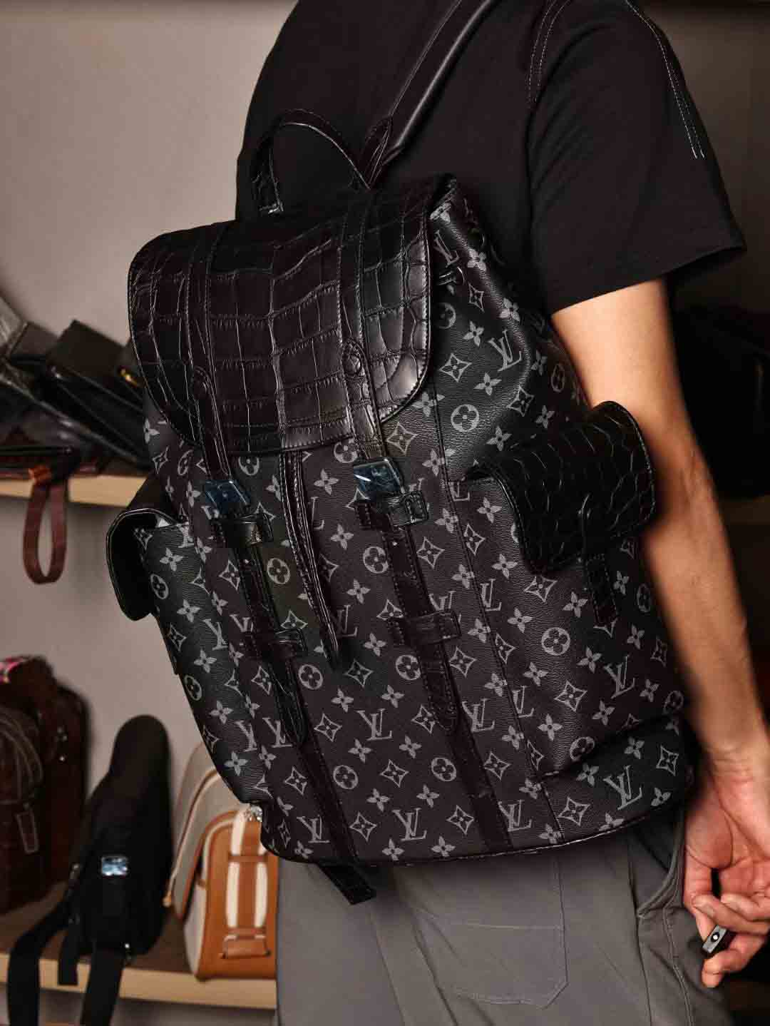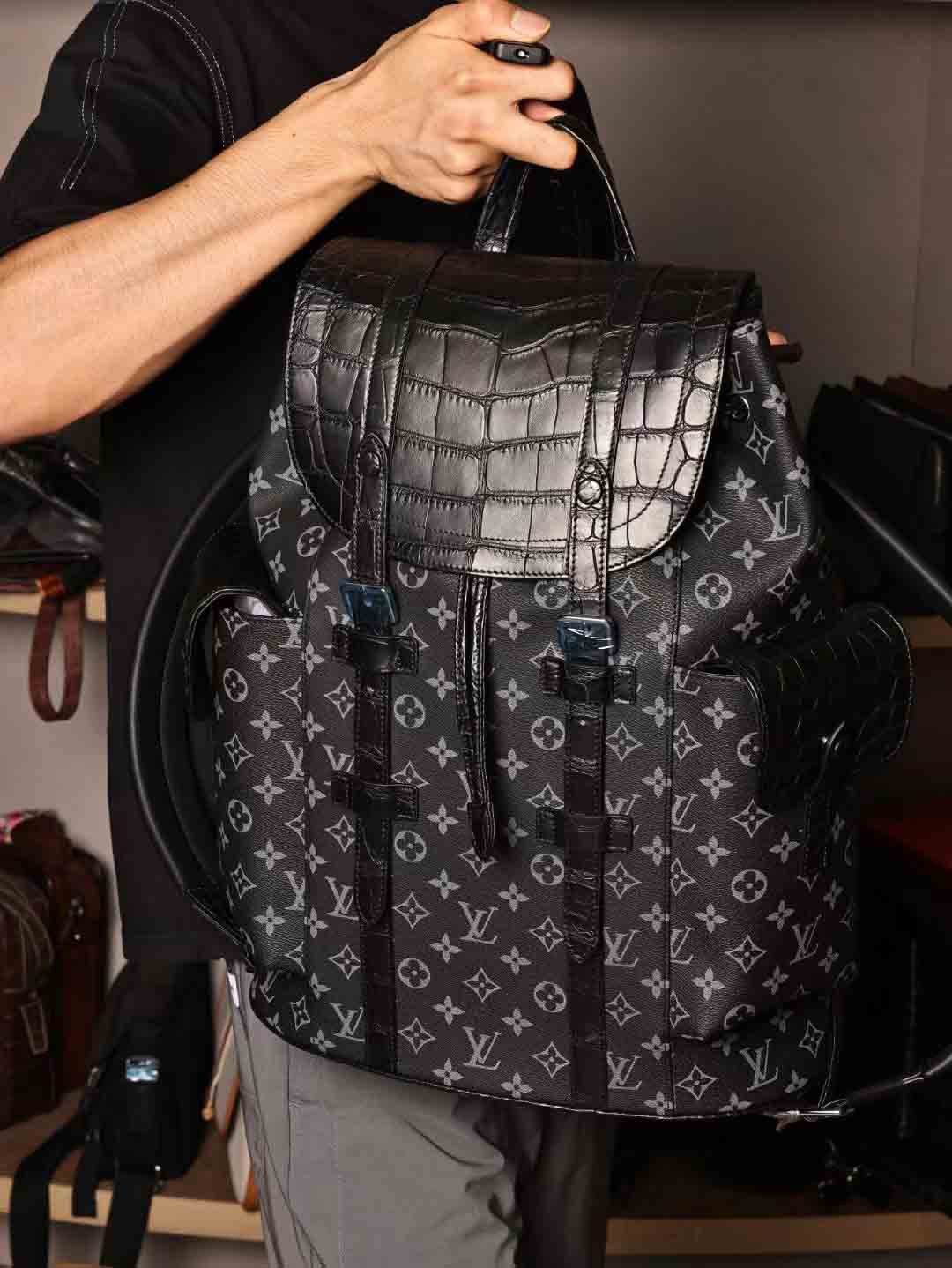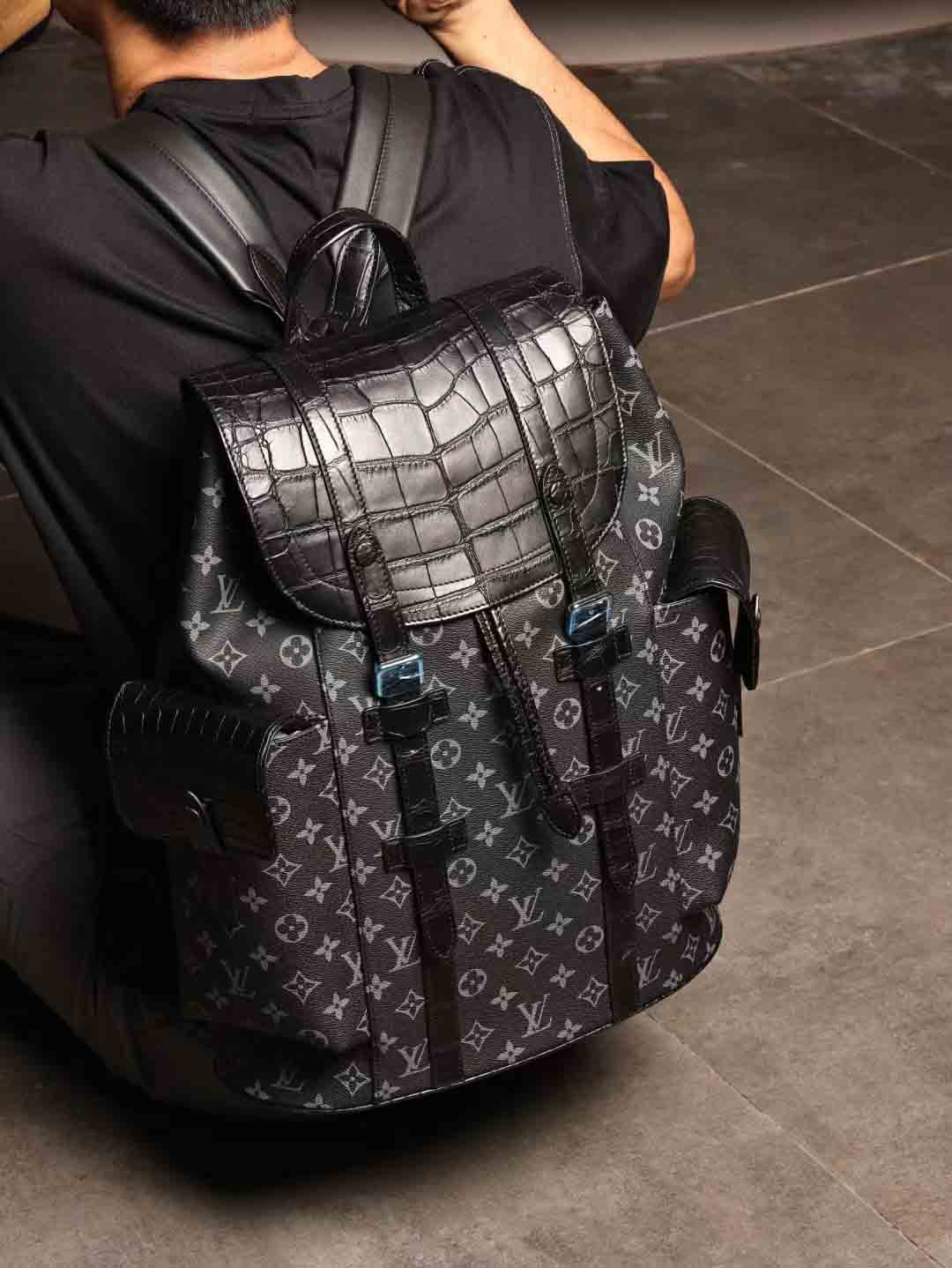 首先,这款双肩包的材质选用了美洲鳄鱼皮,质感细腻,不仅耐磨耐用,更显低调奢华,经典款式老花绝对能够提升你的格调!