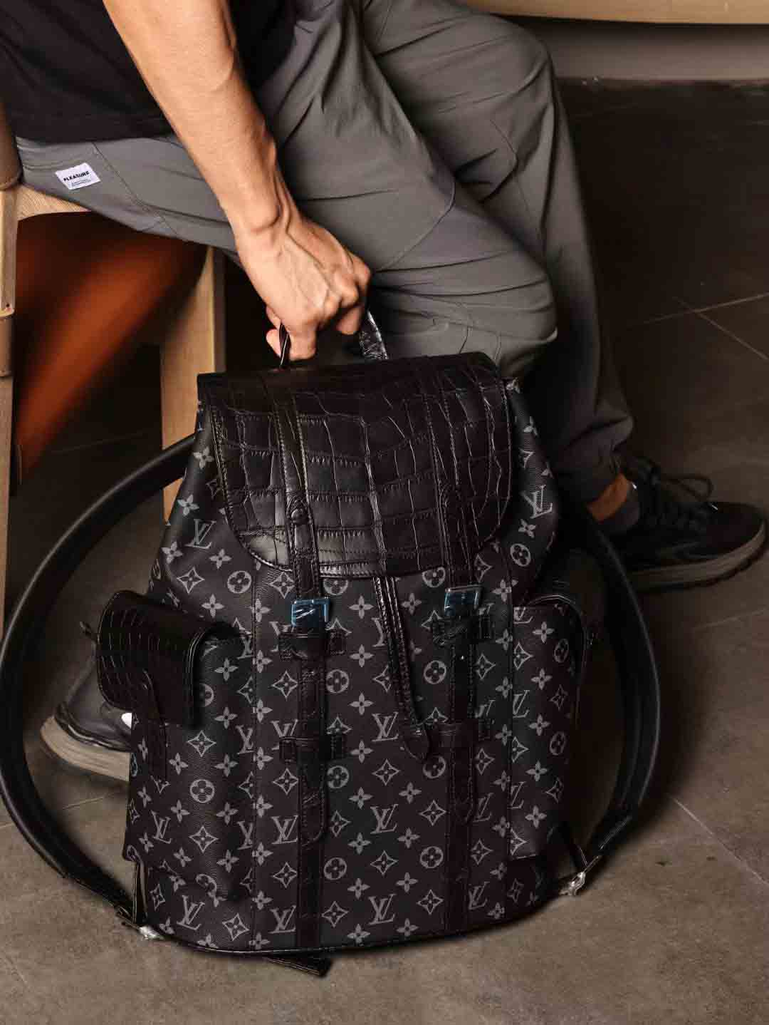 老花皮拼黑色美洲鳄双肩包!这款包包不仅时尚感十足,更拥有超级实用的设计,注定会让你爱不释手!