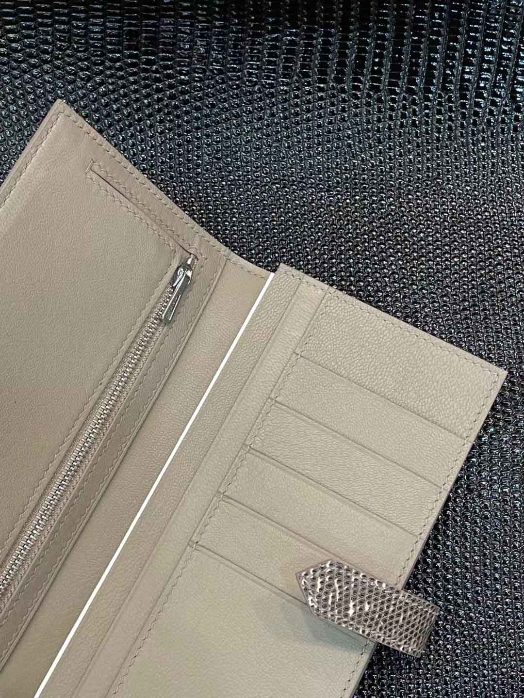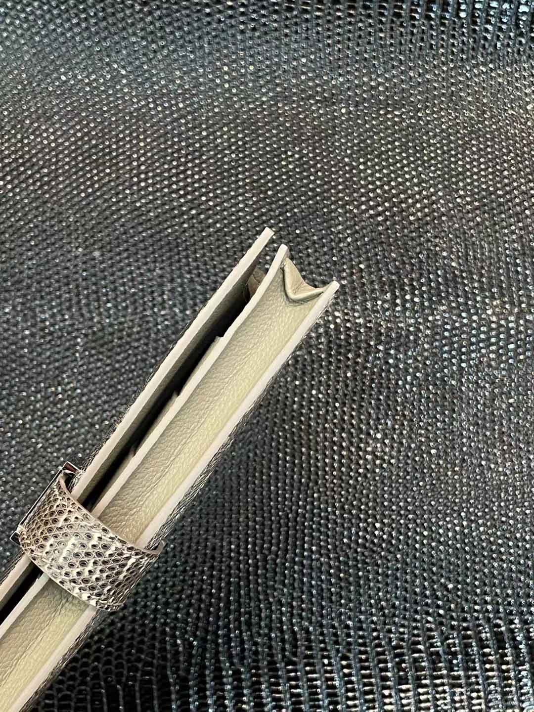 蜥蜴皮有一些近似鳄鱼皮的观感。但相对鳄鱼皮的张扬,蜥蜴皮的纹理质感更为轻柔细腻,当然也更为内敛一些。