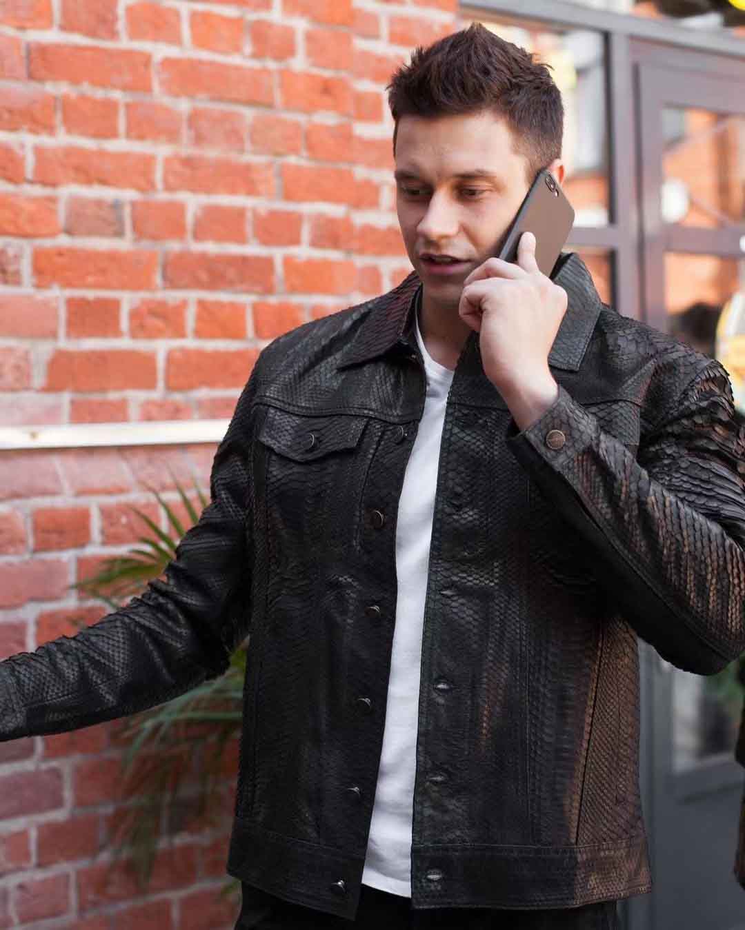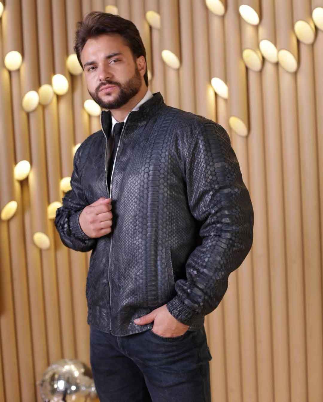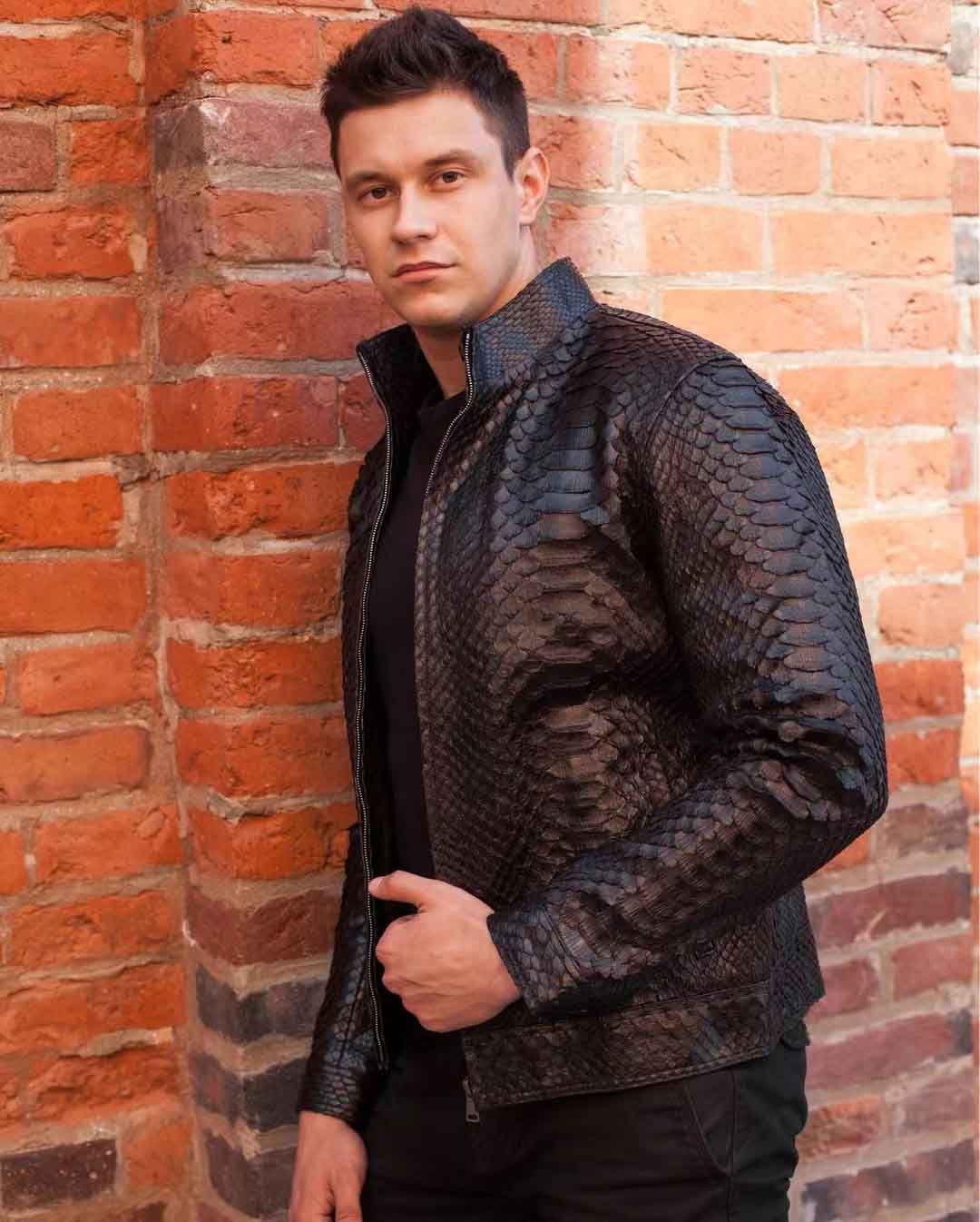 蟒蛇皮夹克上身参考图,可以了解下,款式、颜色、尺码均可以定制