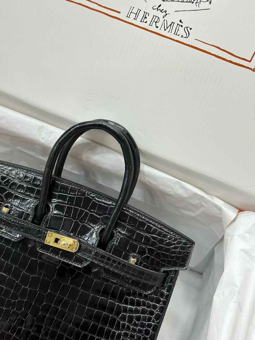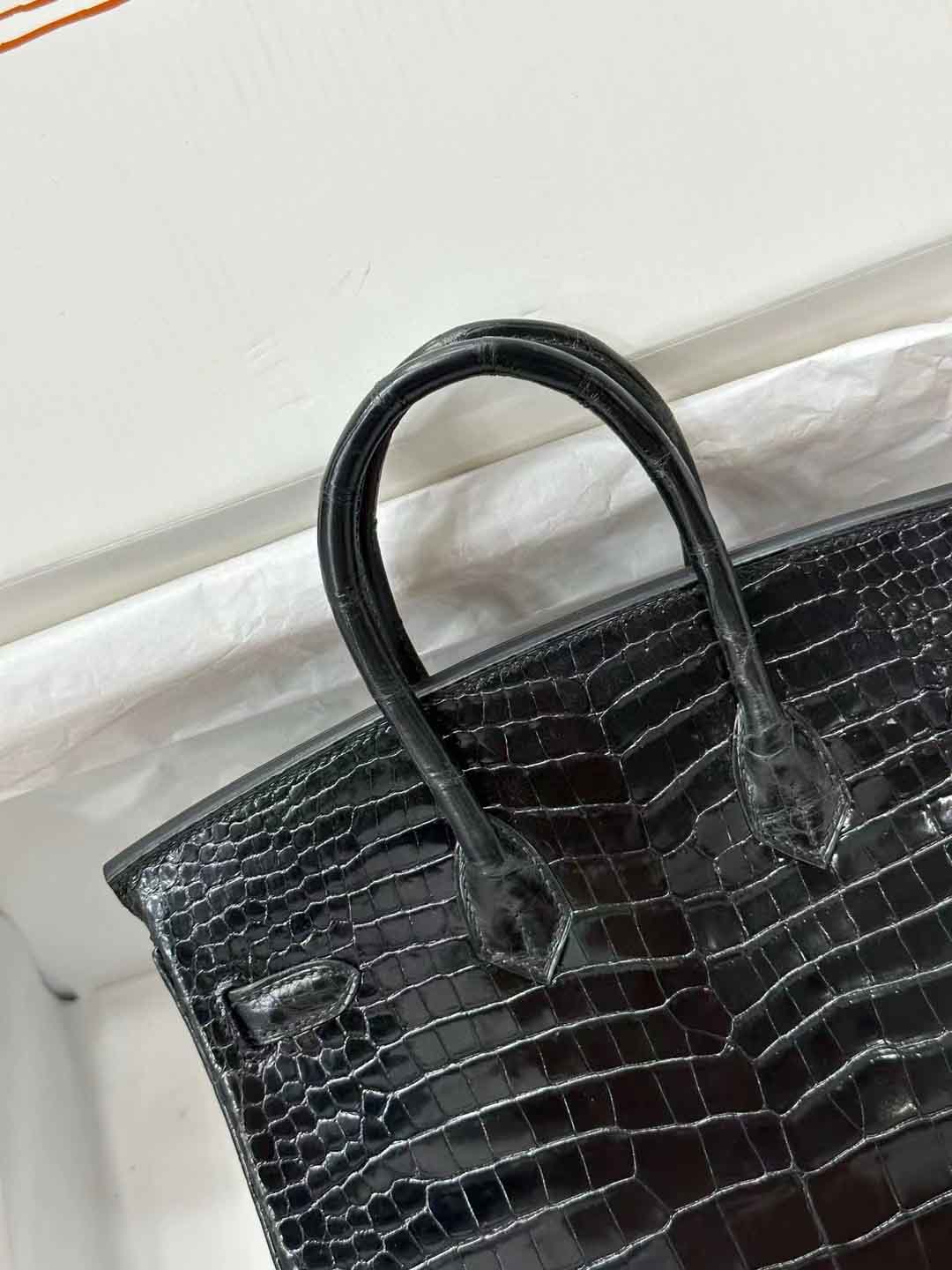 birkin 25 黑金 touch 鳄鱼皮商务包。25款包是以其优质皮革和精湛工艺而闻名的。它是一款非常受欢迎的高端手提包,具有经典的设计和独特的风格。这款包袋的尺寸是25cm,采用黑色和金色金属配件,被称为“黑金”。倒V是指包上的一种特殊皮革效果或设计,亮面则是指包的表面处理,它有一种闪亮的光泽效果。