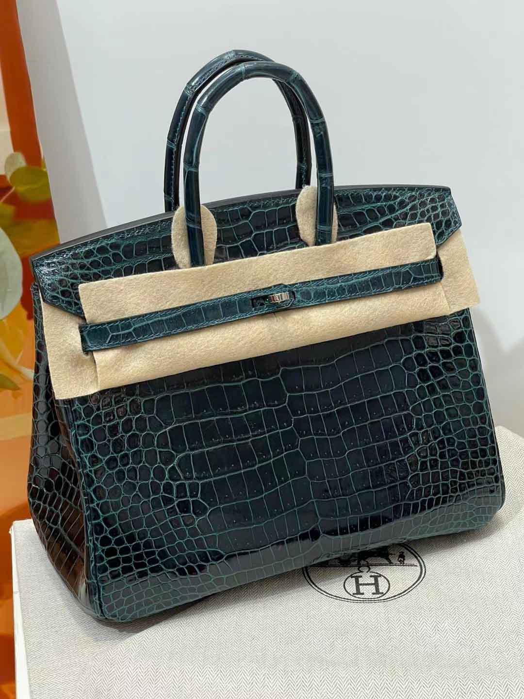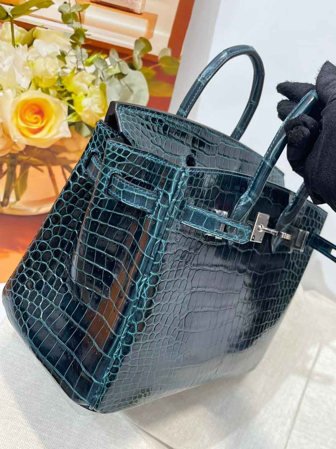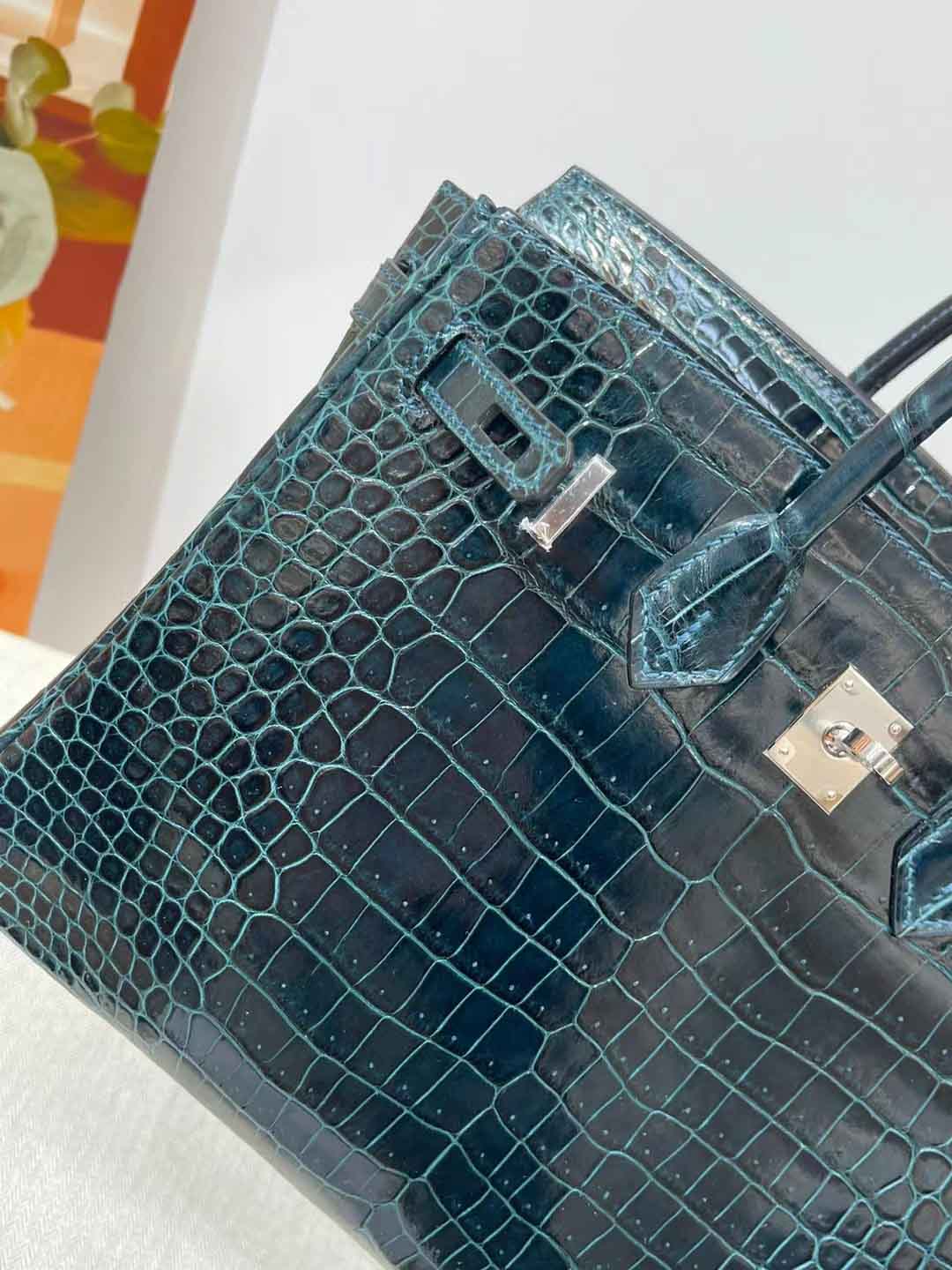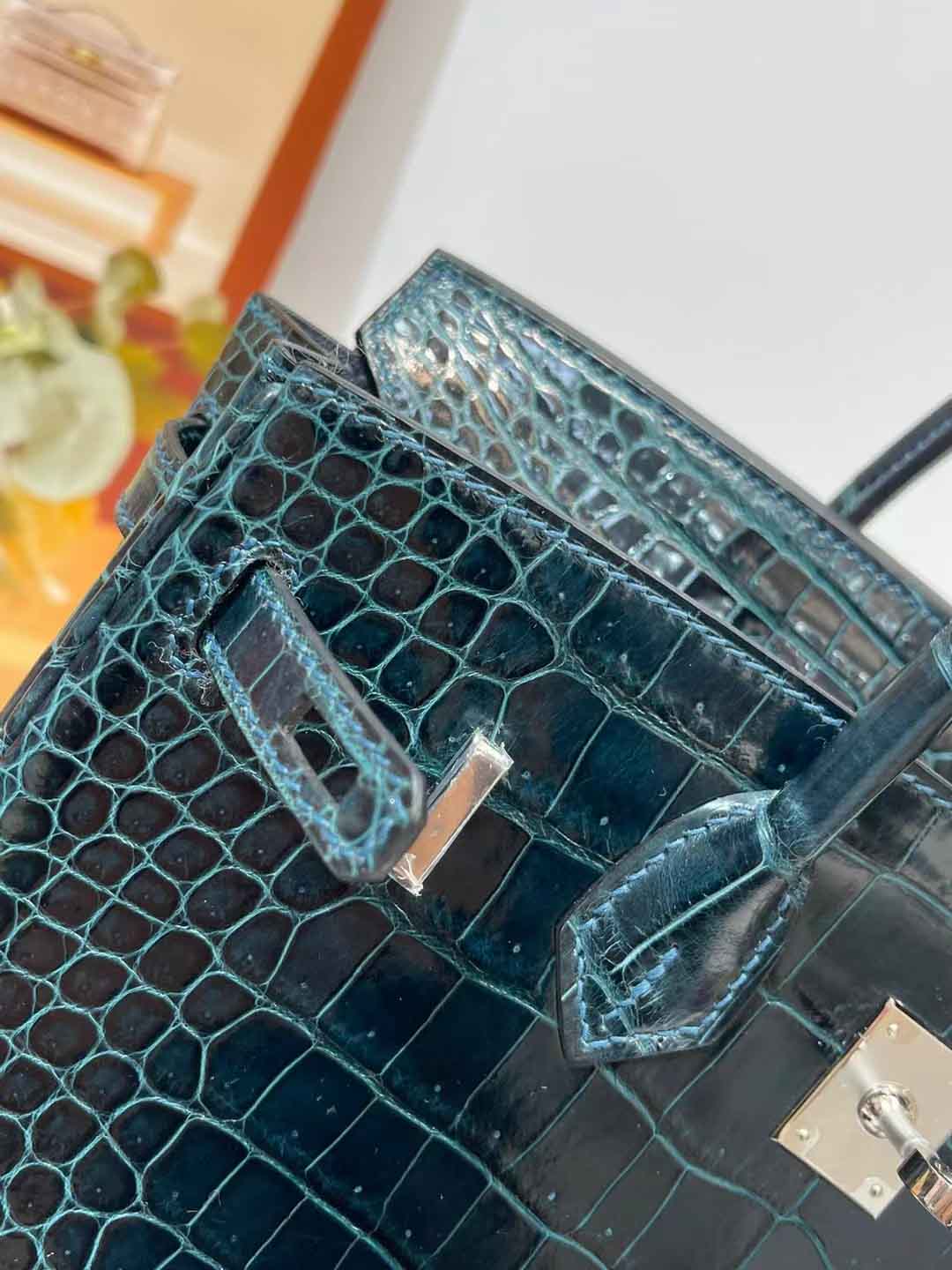 crocodile Leather hcp湾鳄 birkin25 亮面 倒v 银扣 里外 全手工 手打钉顶级工艺可遇不可求的纹理。