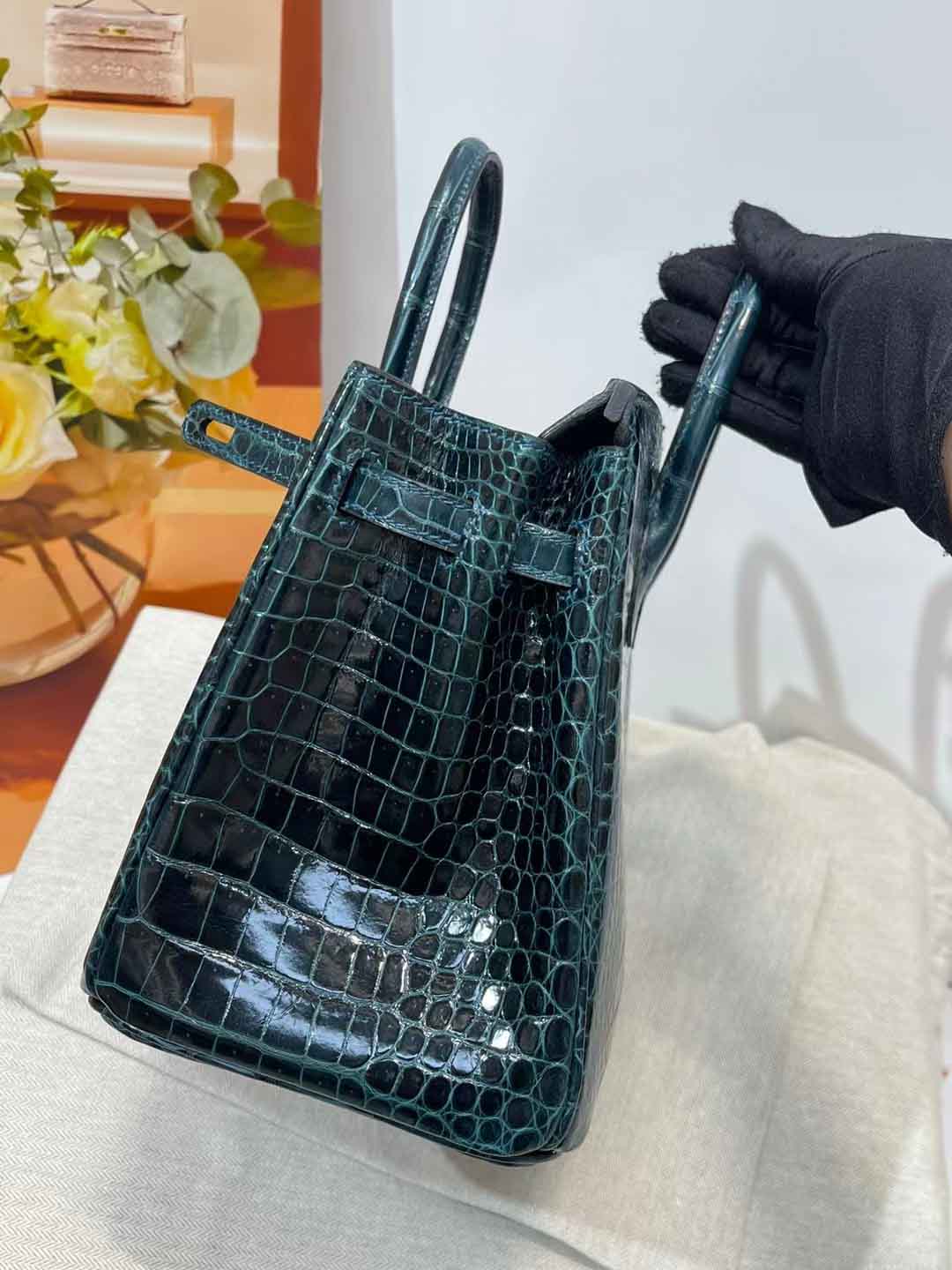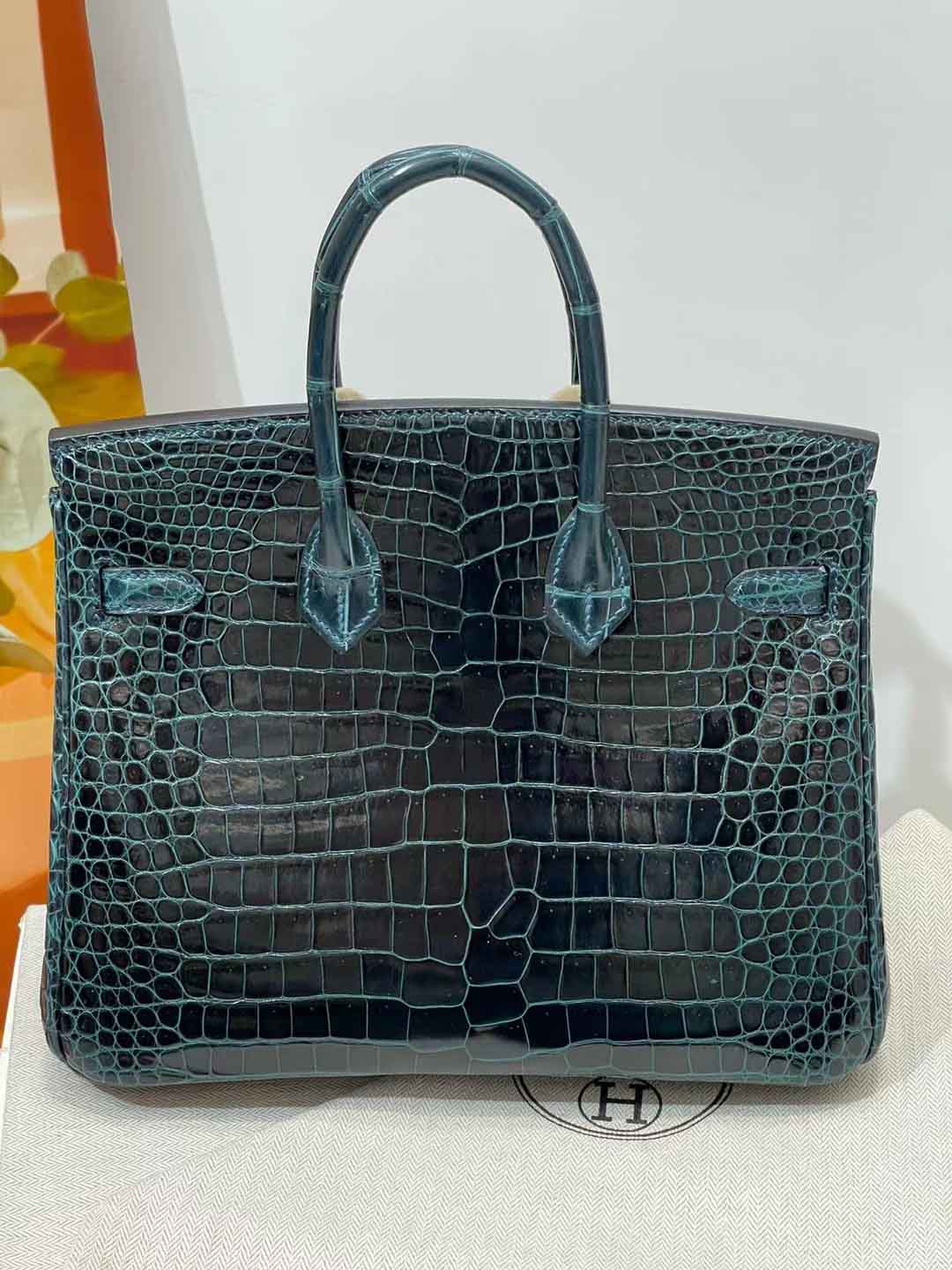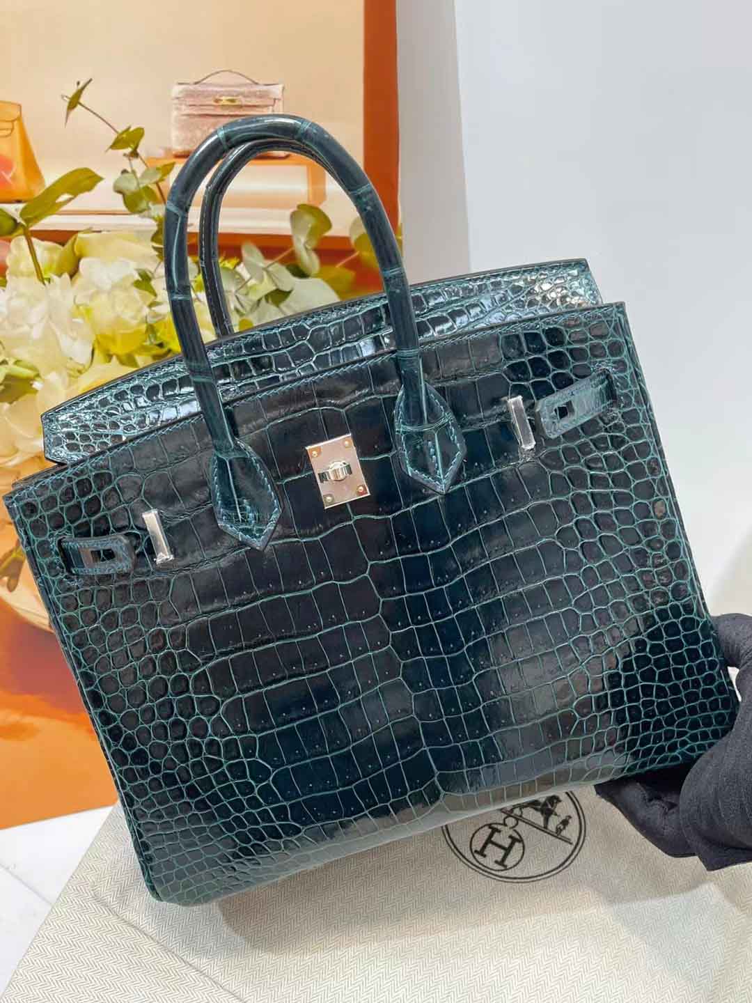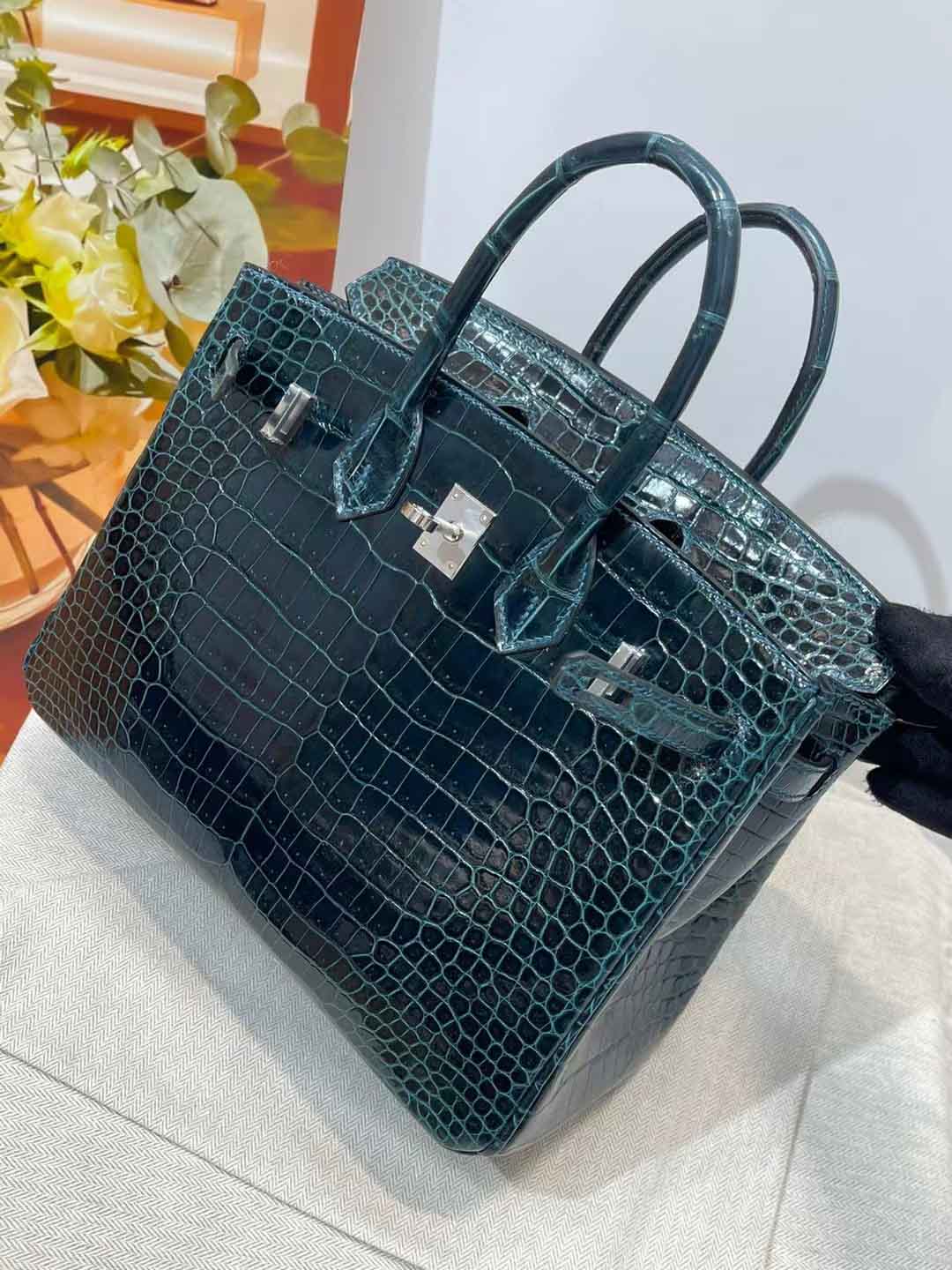 crocodile Leather hcp湾鳄 birkin25 亮面 倒v 银扣 里外 全手工 手打钉顶级工艺可遇不可求的纹理。