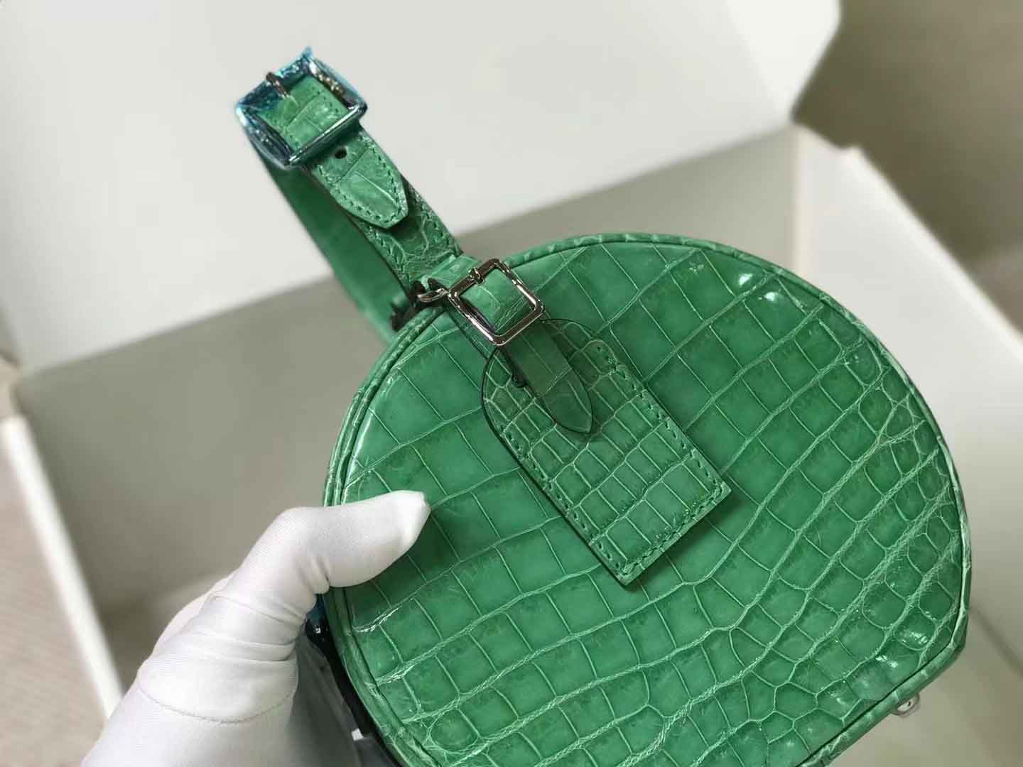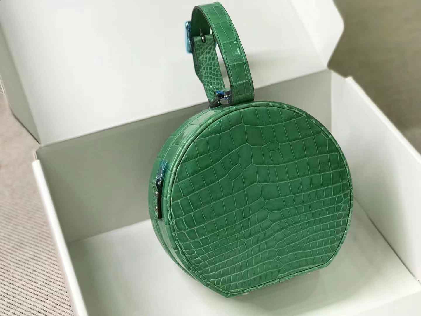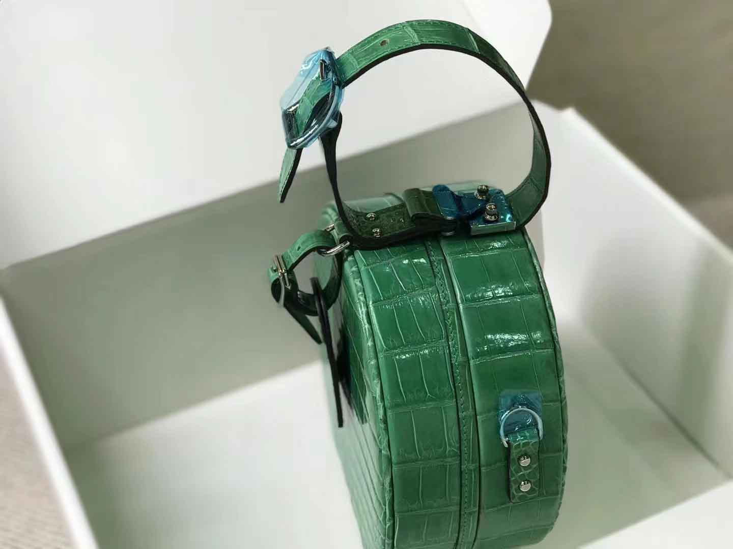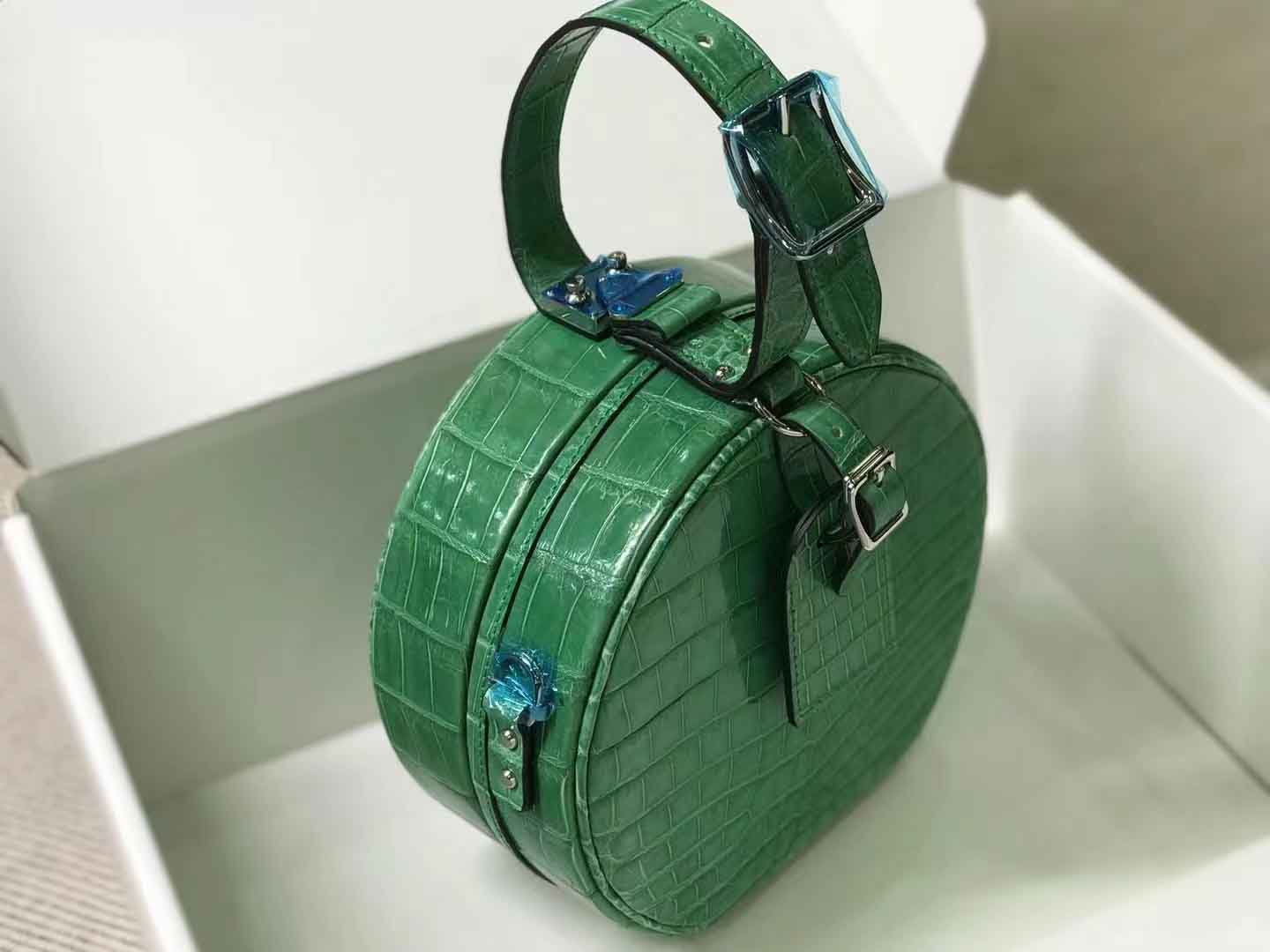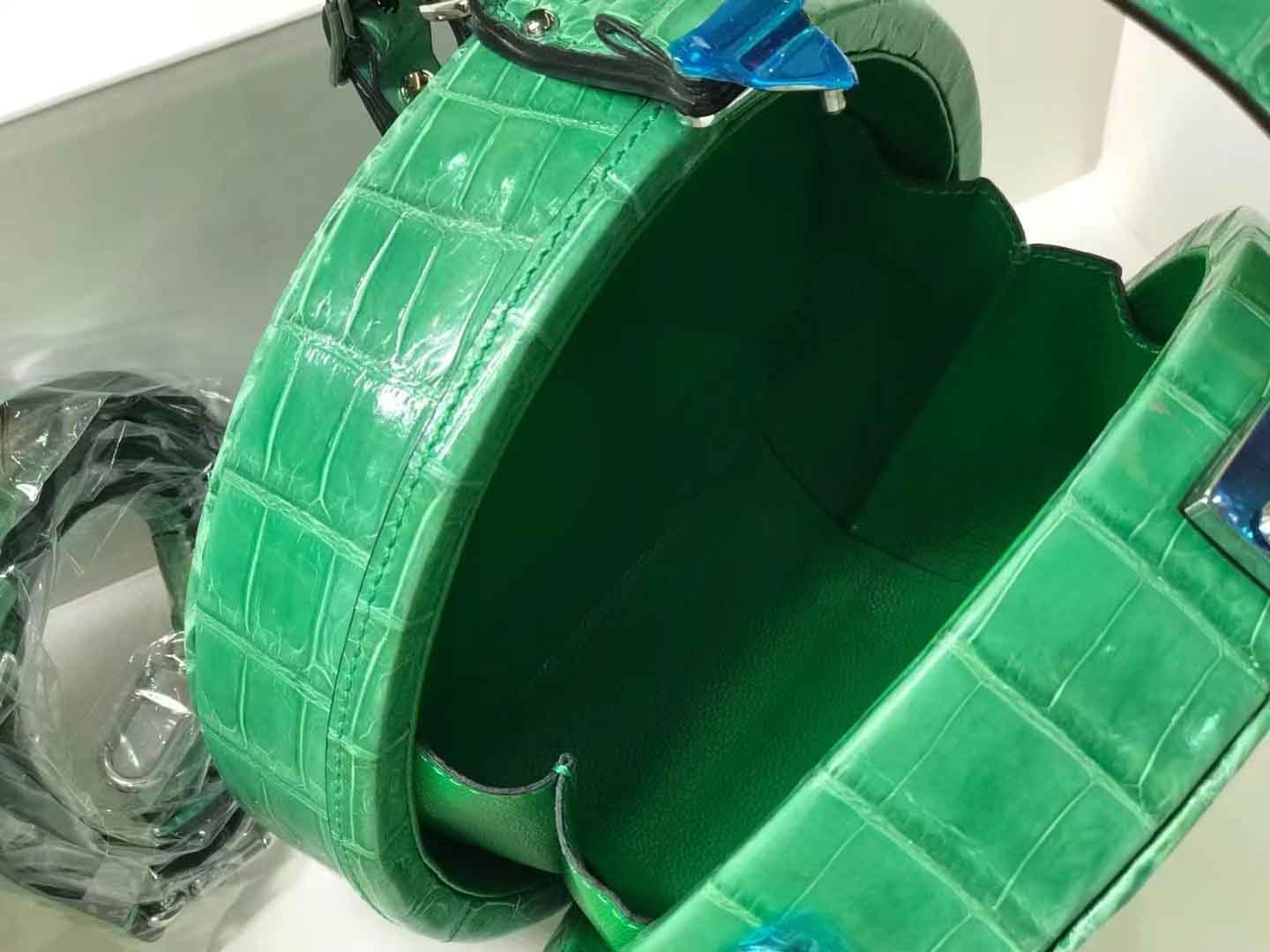 驴牌 圆饼包 高光鳄鱼仙人掌绿, 银色五金 包包立体感很强,肩带可调节,实拍现货