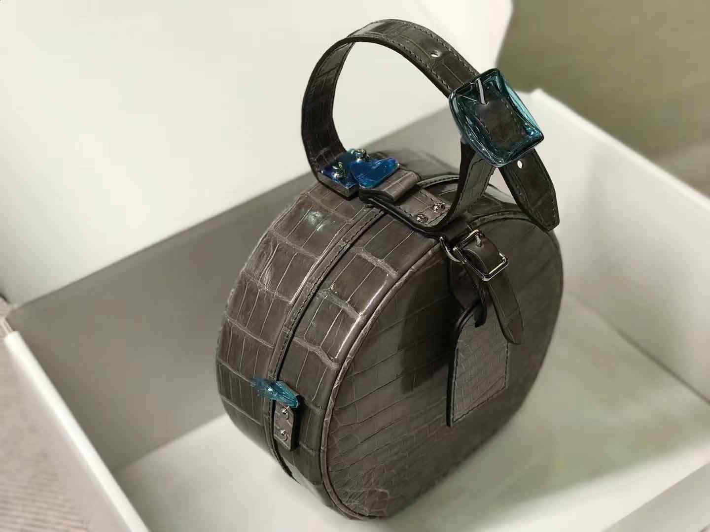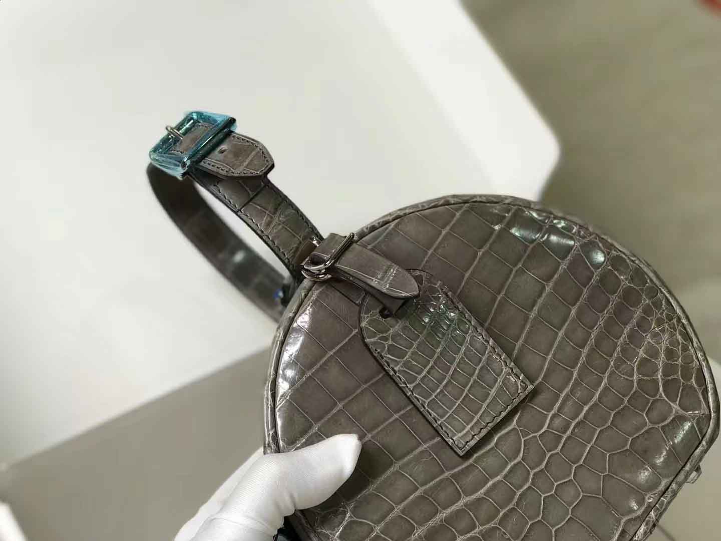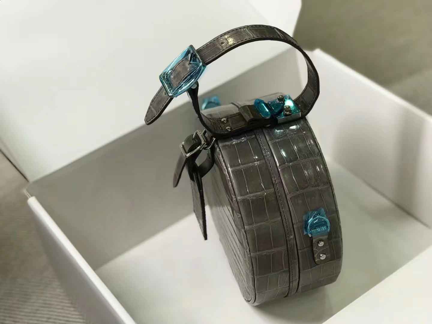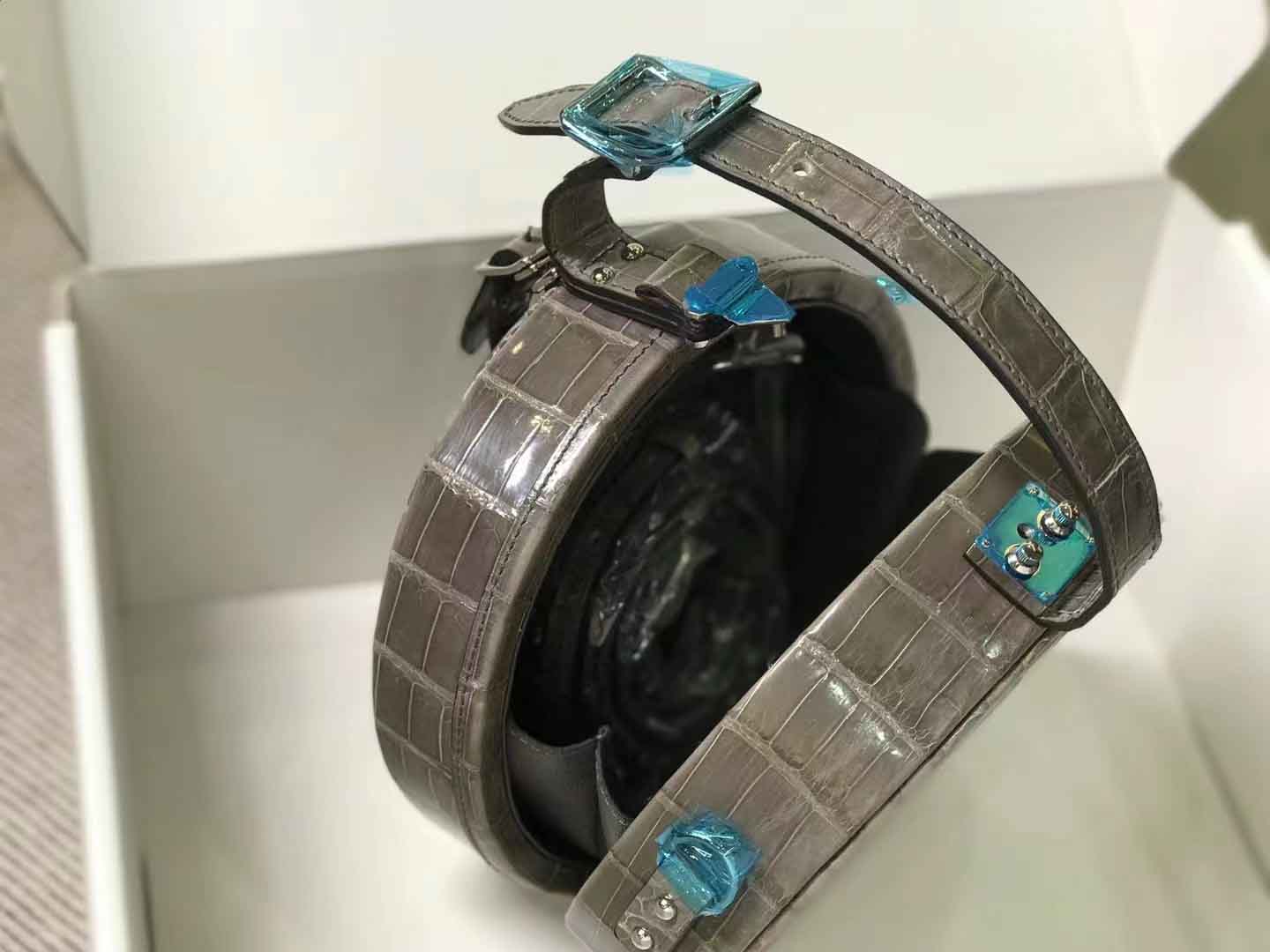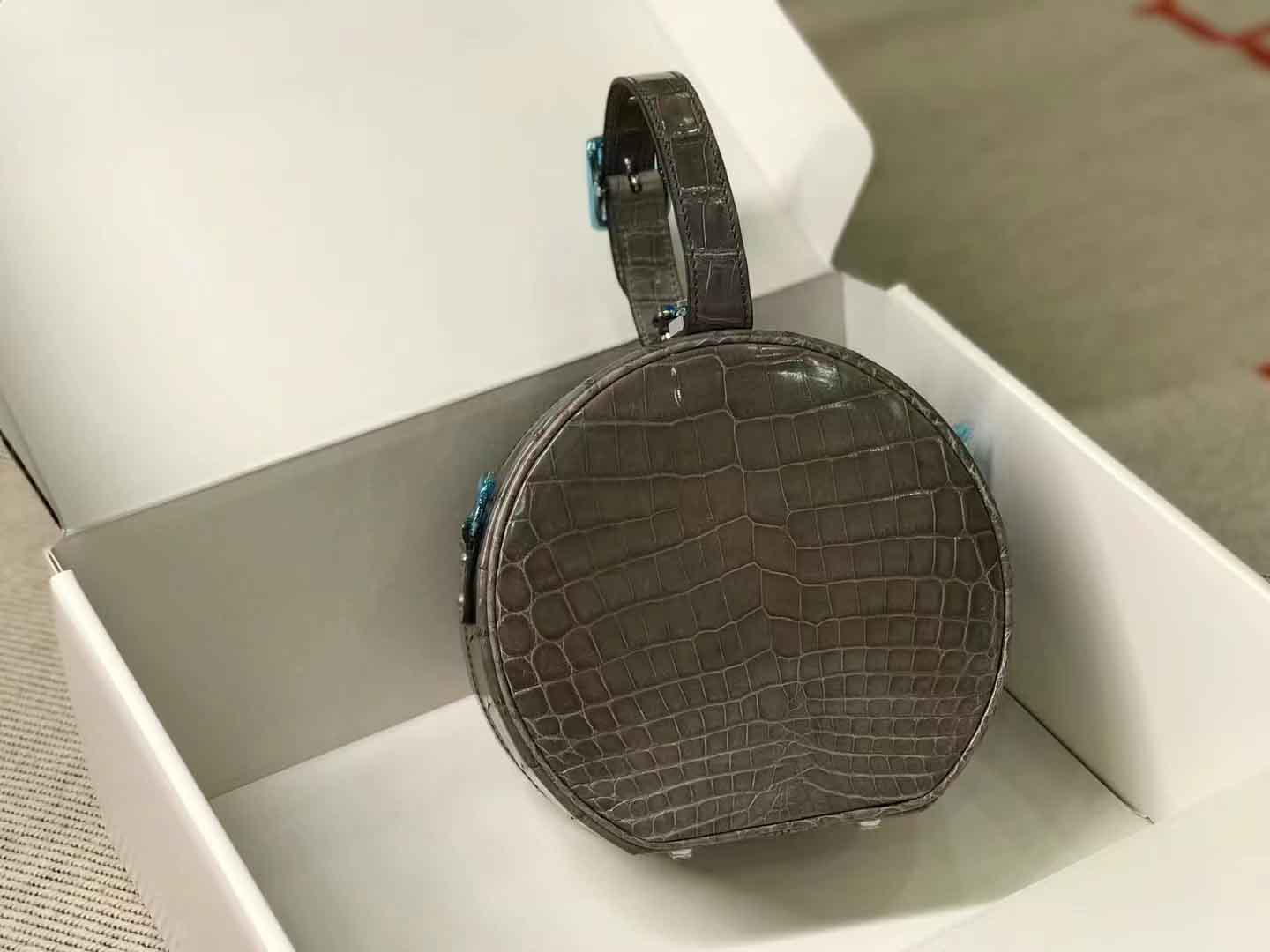 驴牌 圆饼包 高光鳄鱼皮斑鸠灰 银色五金 包包立体感很强,肩带可调节,实拍现货