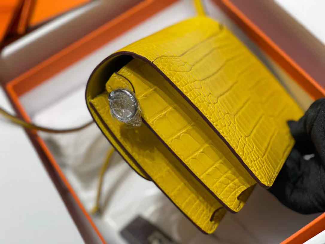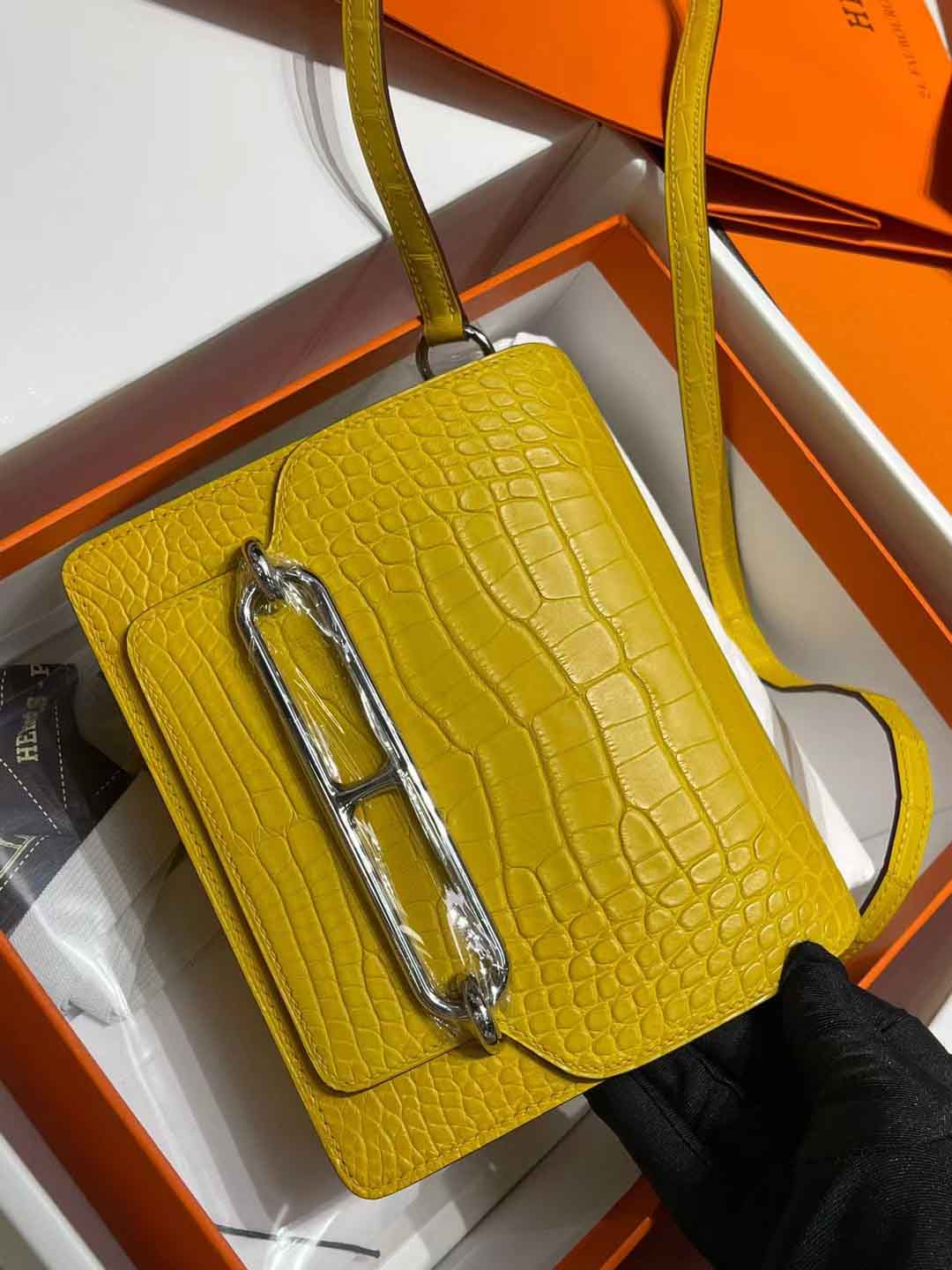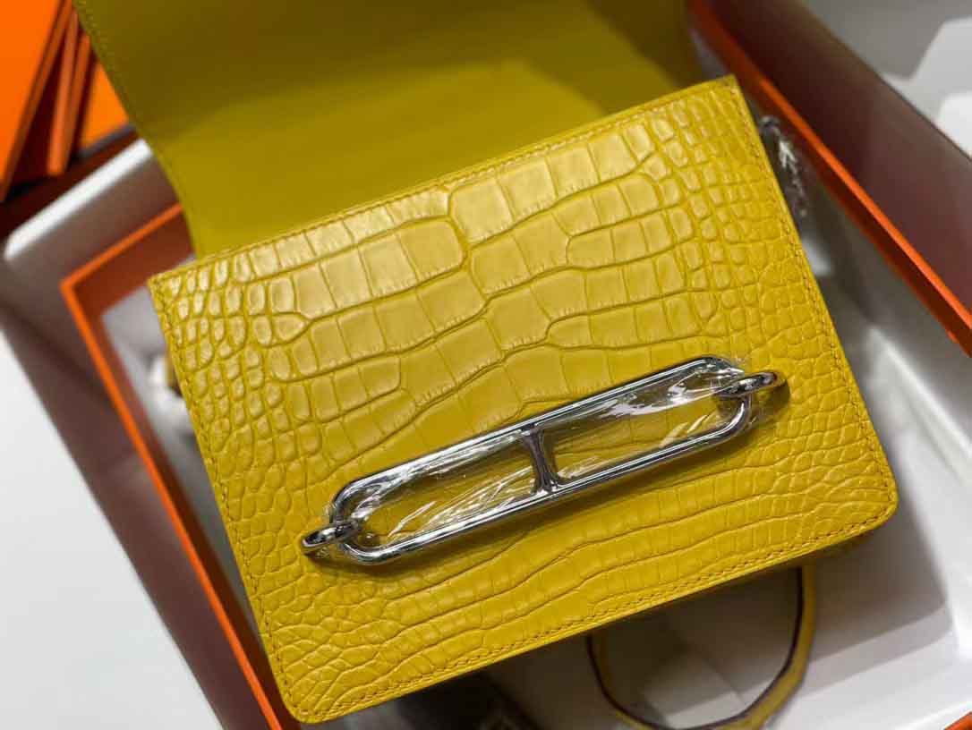 猪鼻子琥珀黄银扣扣鳄鱼皮单肩斜挎 闷骚客。经典单肩包 设计风格简洁明了 独特的经典猪鼻 。