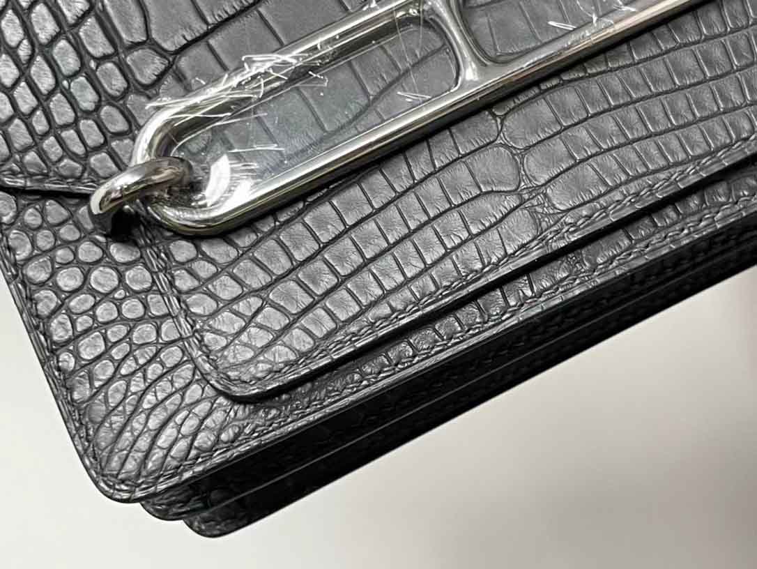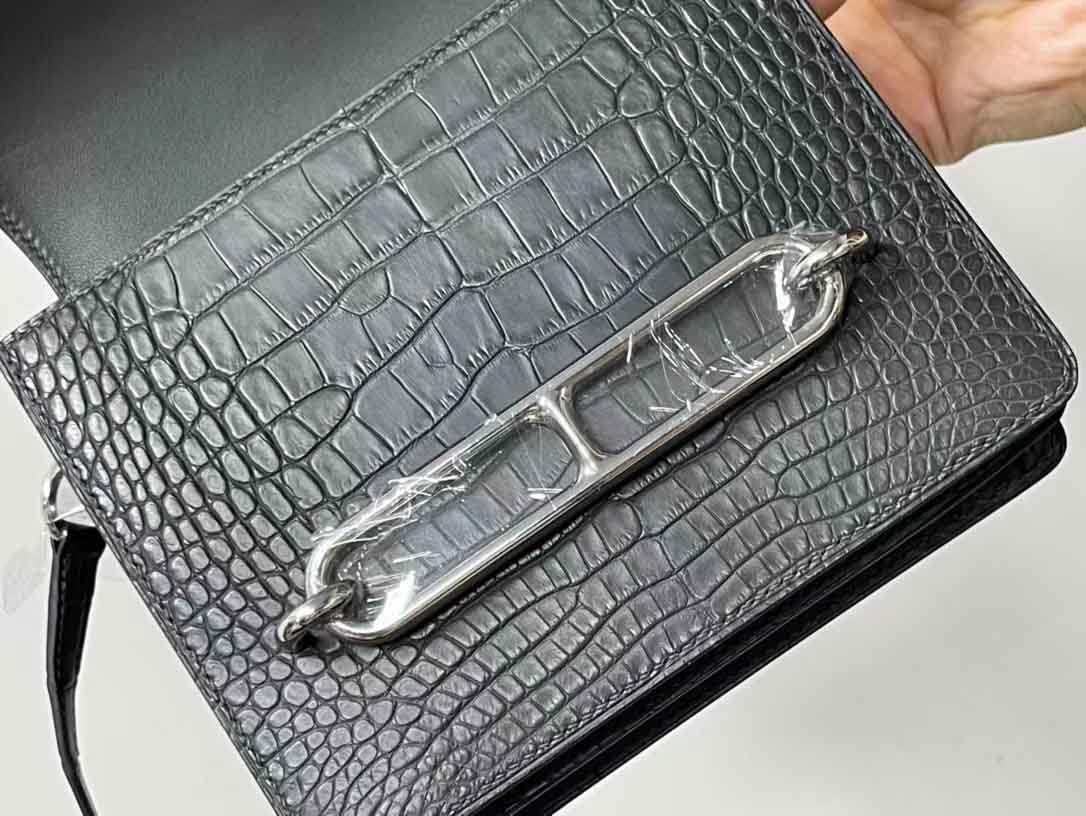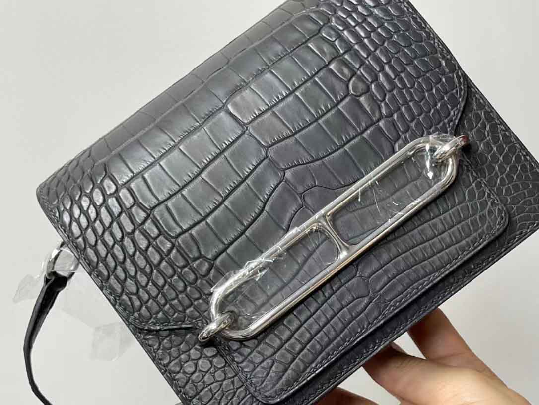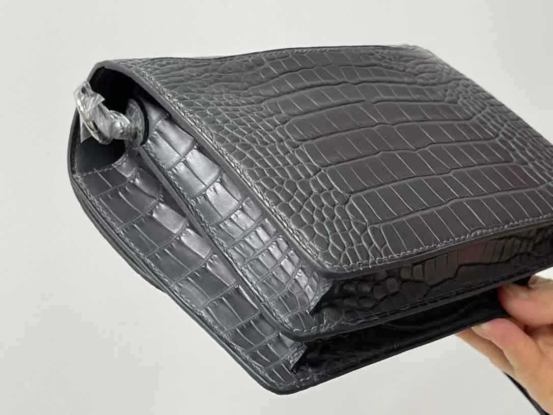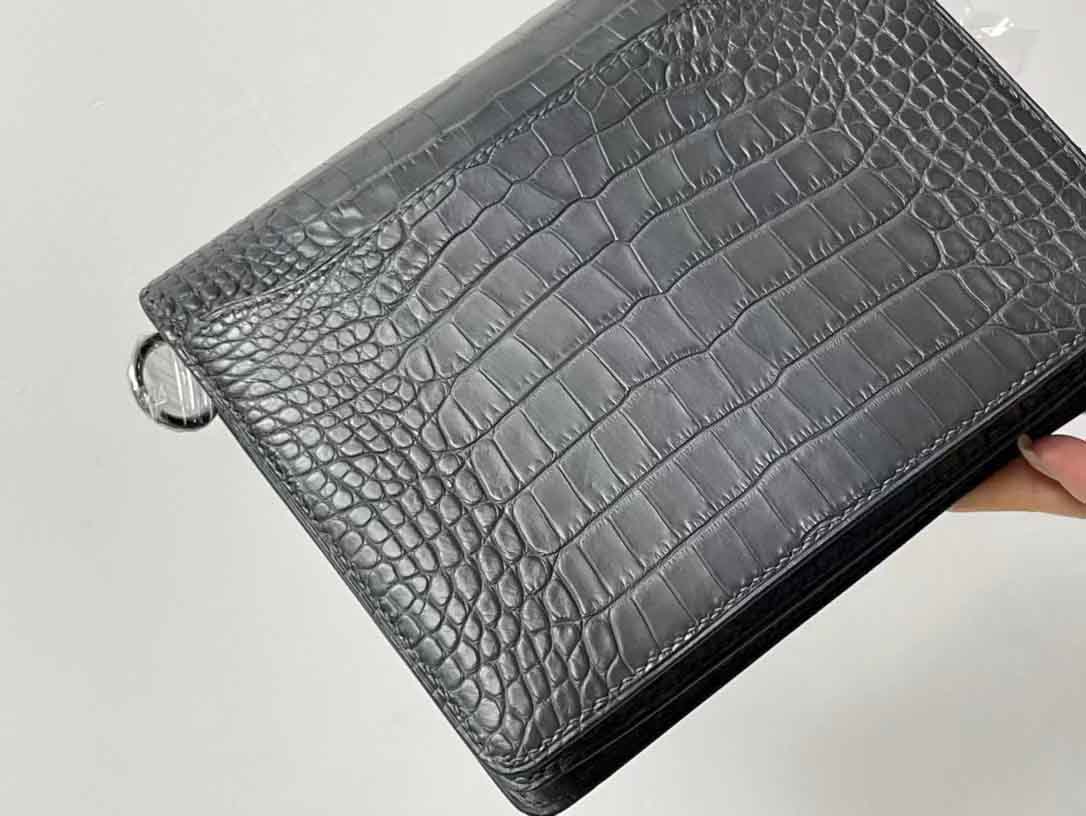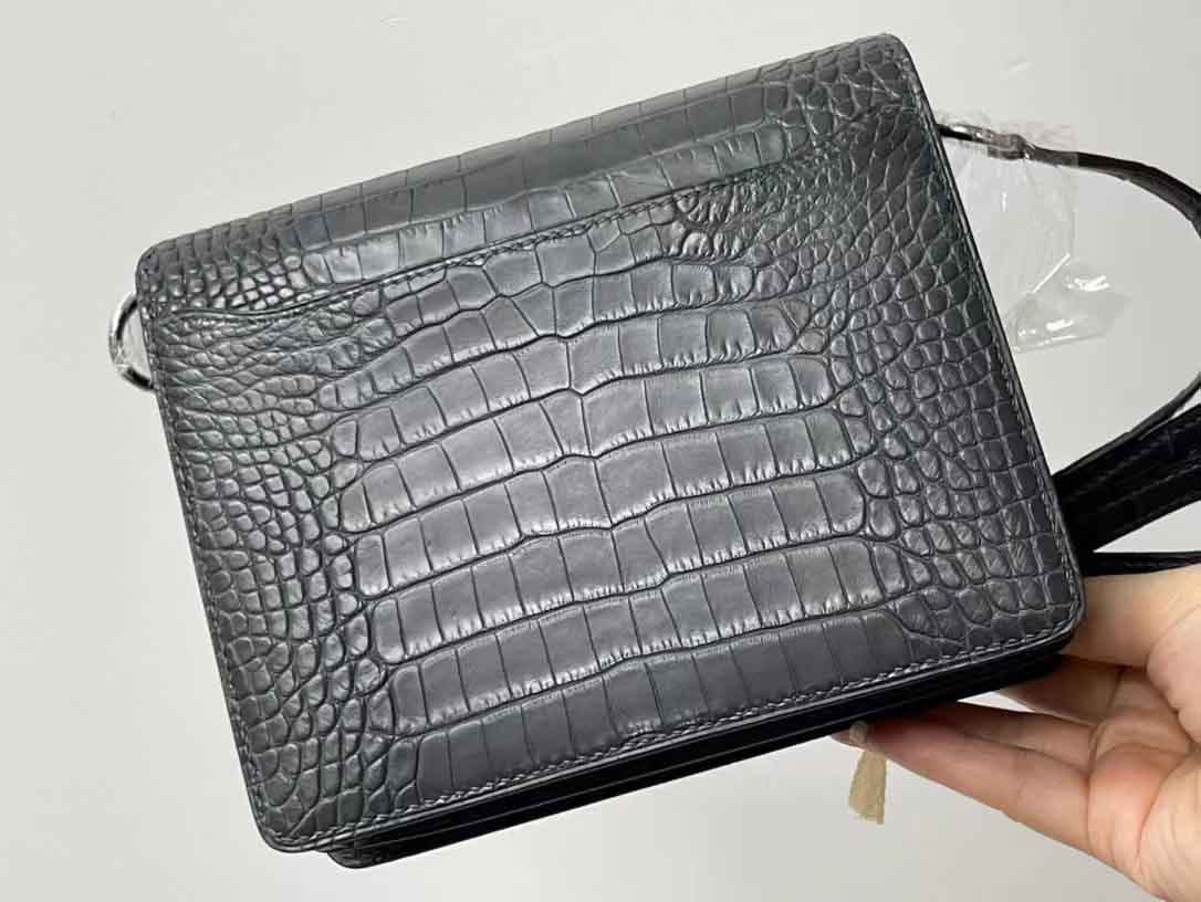 猪鼻子 蜡线全手缝 进口美洲鳄单肩包 实拍现货 新出 石墨灰 全手缝 现货。美洲鳄鱼皮手提包定做厂家微信联系 95506803
