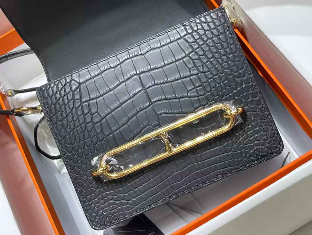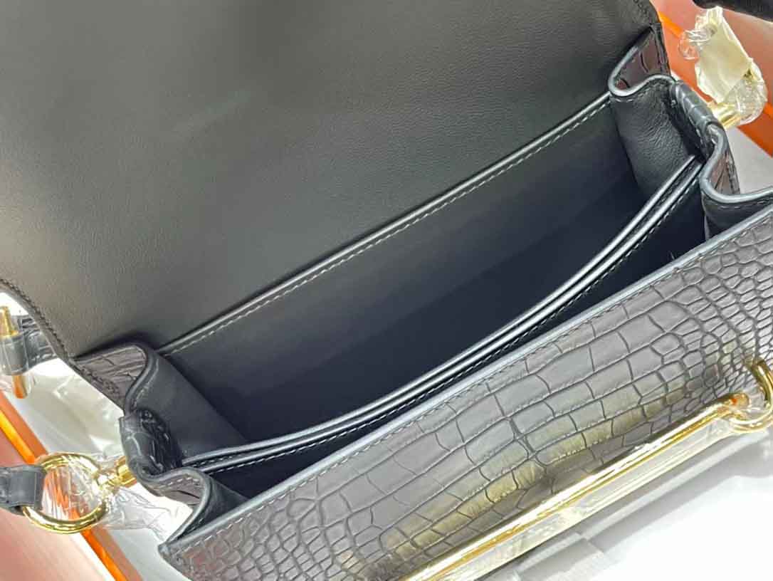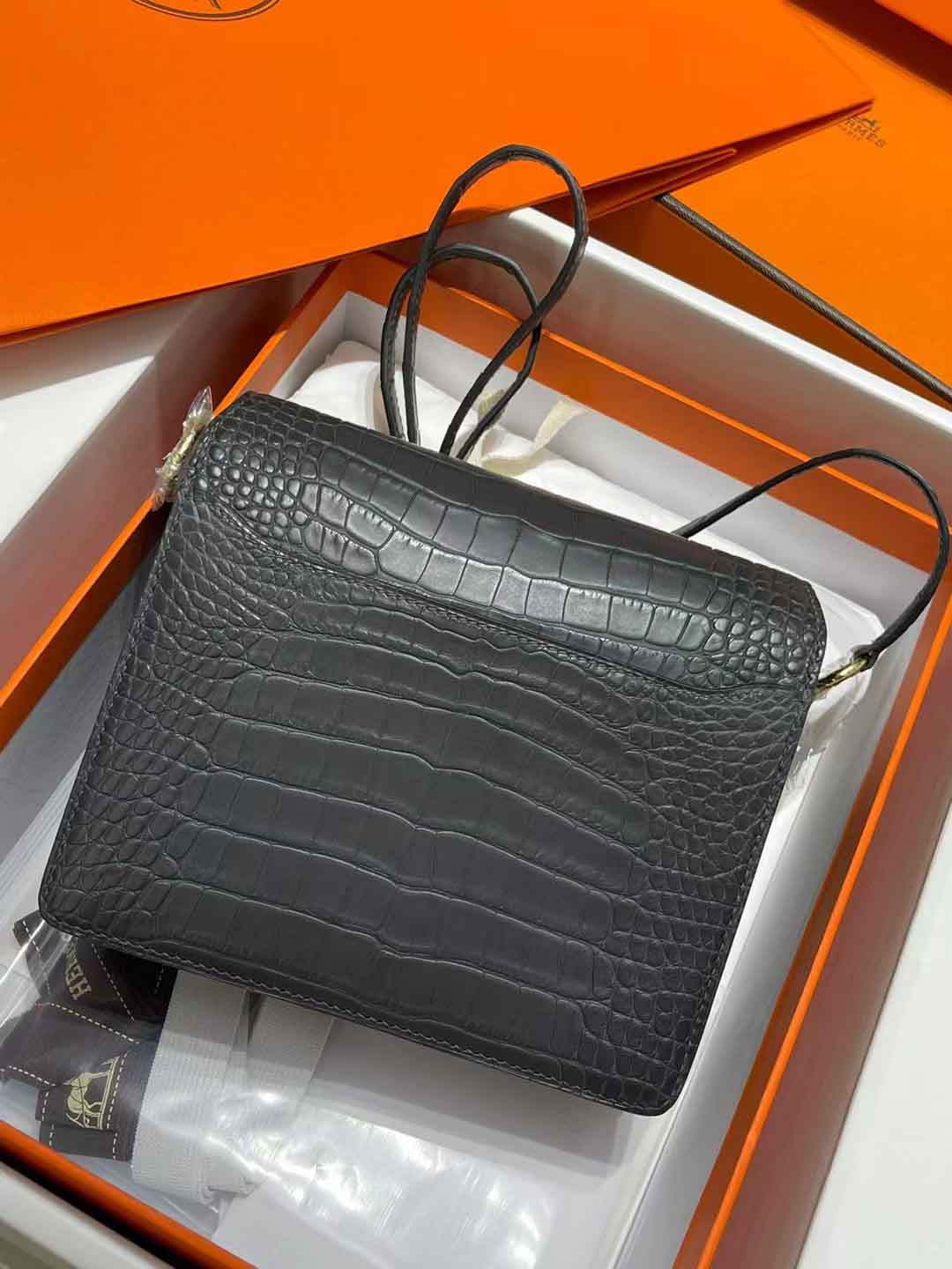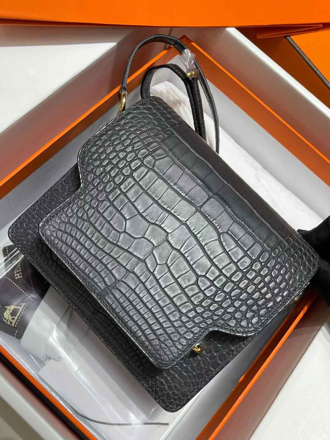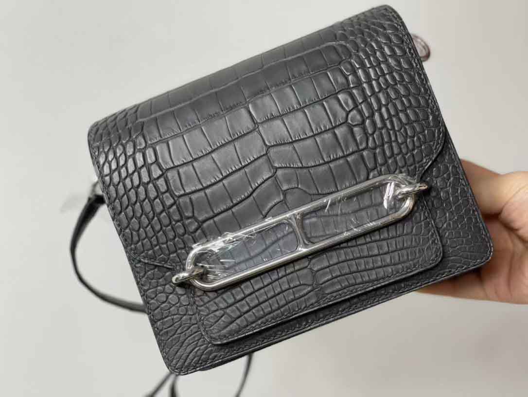 猪鼻子 蜡线全手缝 进口美洲鳄单肩包 实拍现货 新出 石墨灰 全手缝 现货。美洲鳄鱼皮手提包定做厂家微信联系 95506803