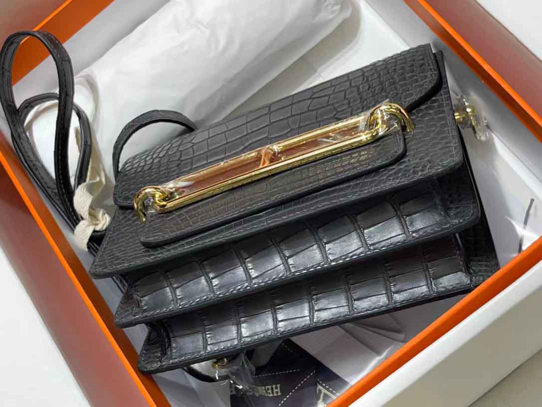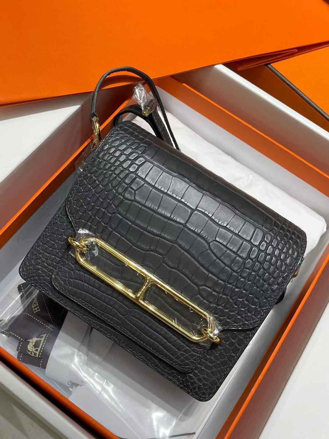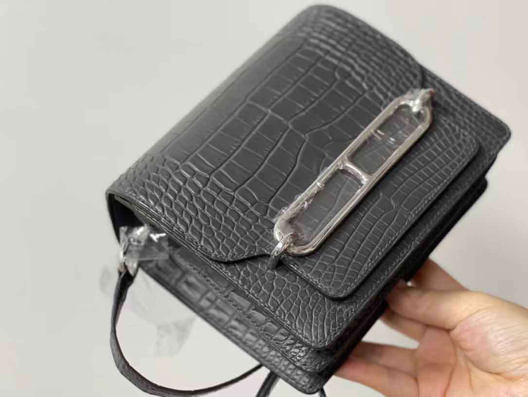 全手工进口美洲鳄鳄鱼皮女包h款猪鼻子迷你小包方块鳄。