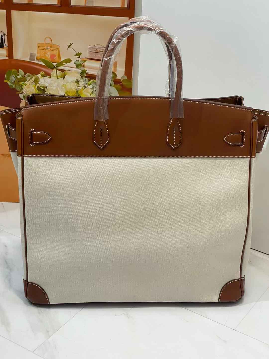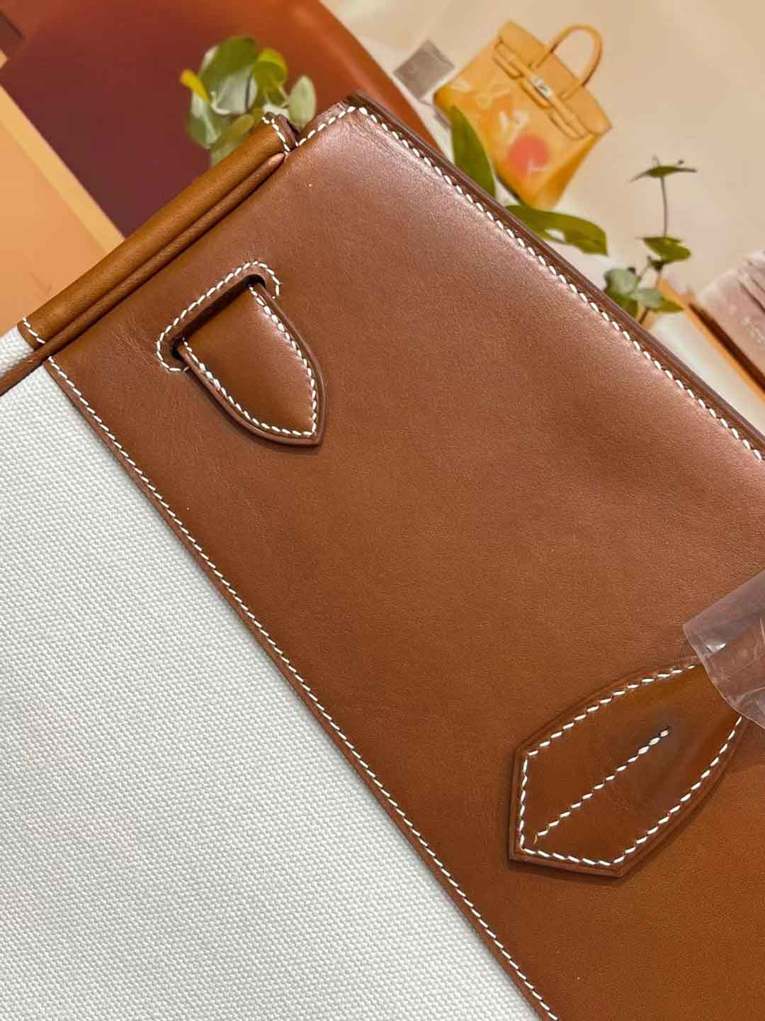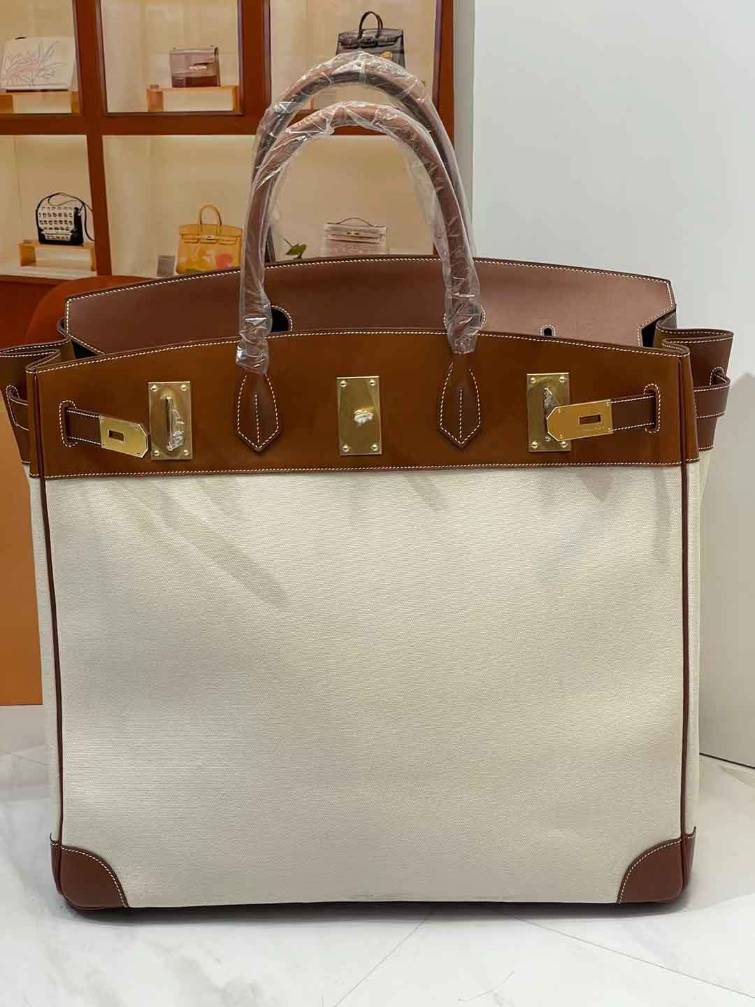 铂金50CM. Hac 巨无霸 纯手缝现货 进口马鞍皮配原版布料