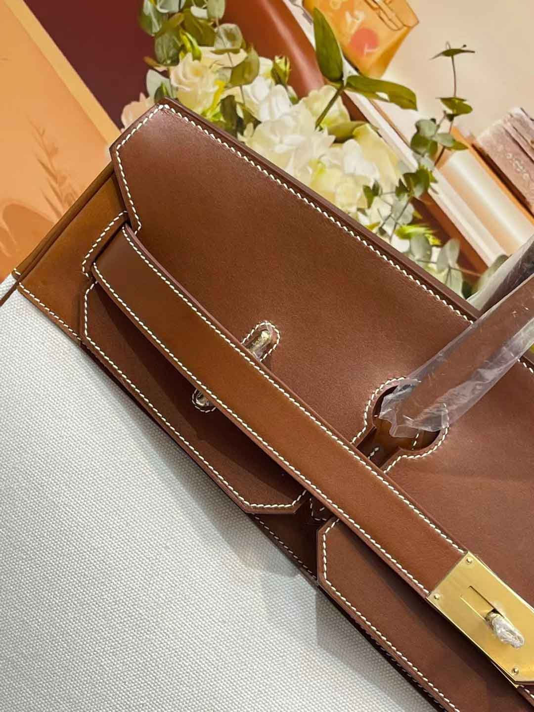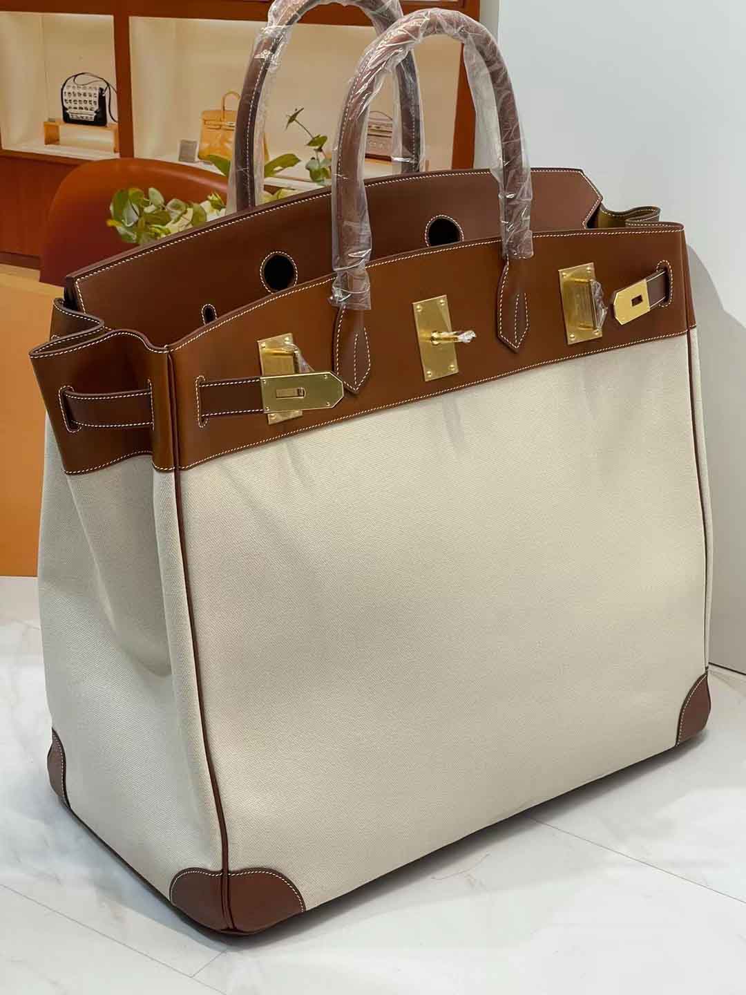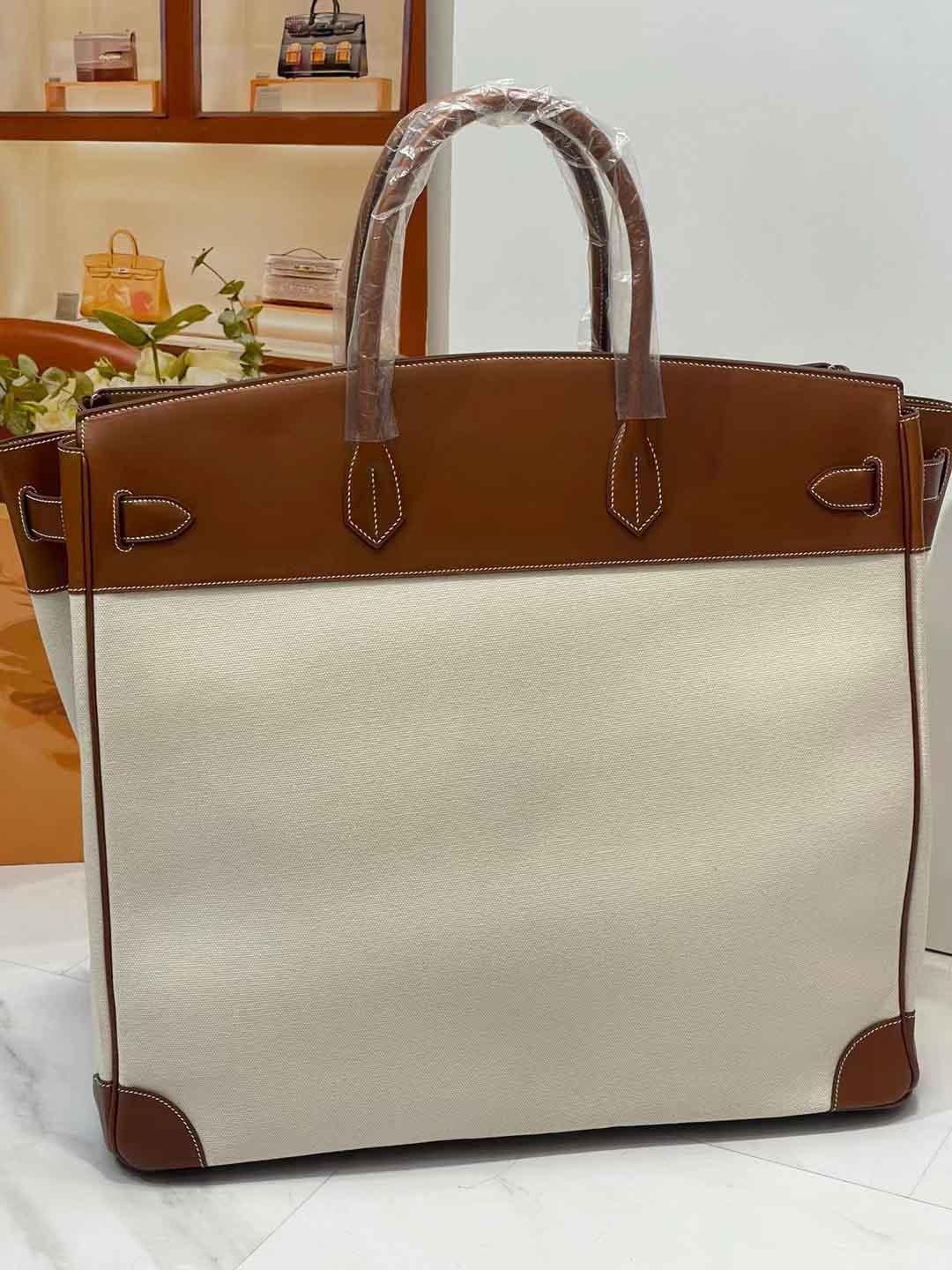 铂金50CM. Hac 巨无霸 纯手缝现货 进口马鞍皮配原版布料