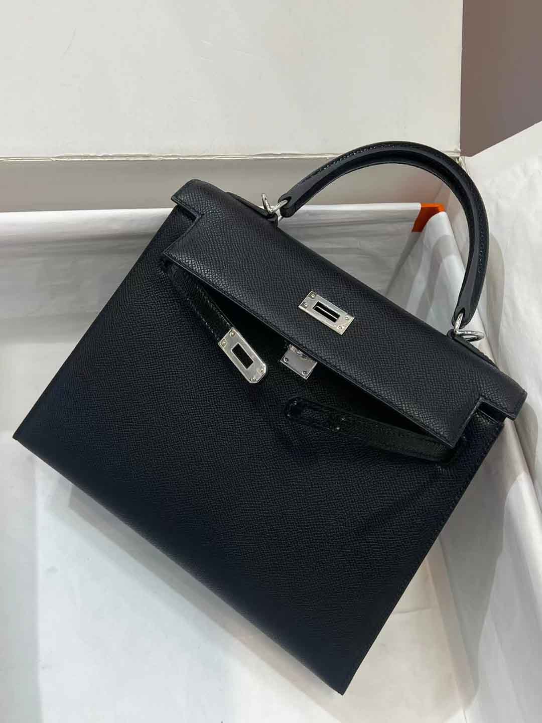 凯莉25CM. 金扣 掌纹皮皮配蜥蜴皮 现货供应!蜡线手缝