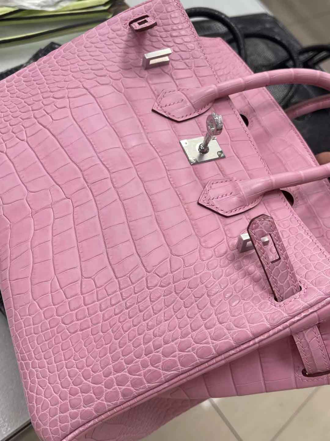 谁要的银扣 hcp进口的美洲鳄,只有一个 纹理颗粒漂亮 樱花粉