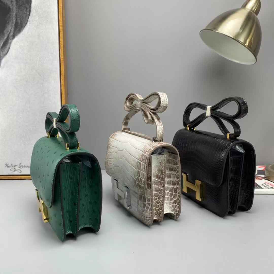 constance 19cm 喜马拉雅白尼罗鳄 手工缝制 现货银扣空姐包定做工作工厂