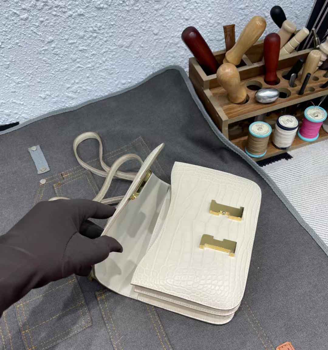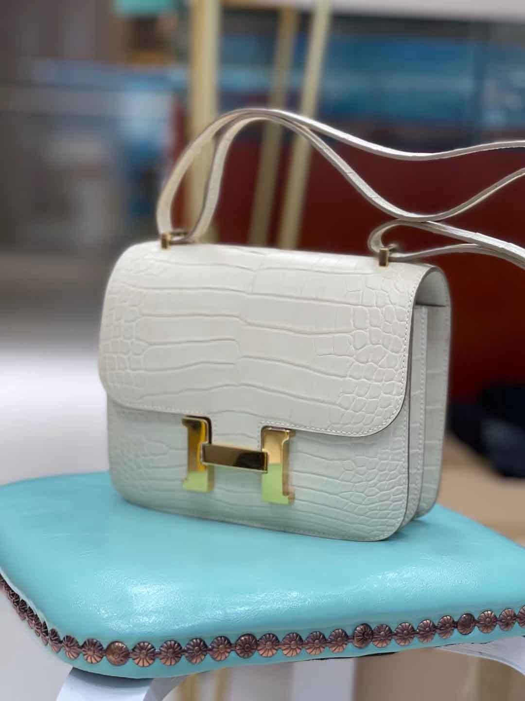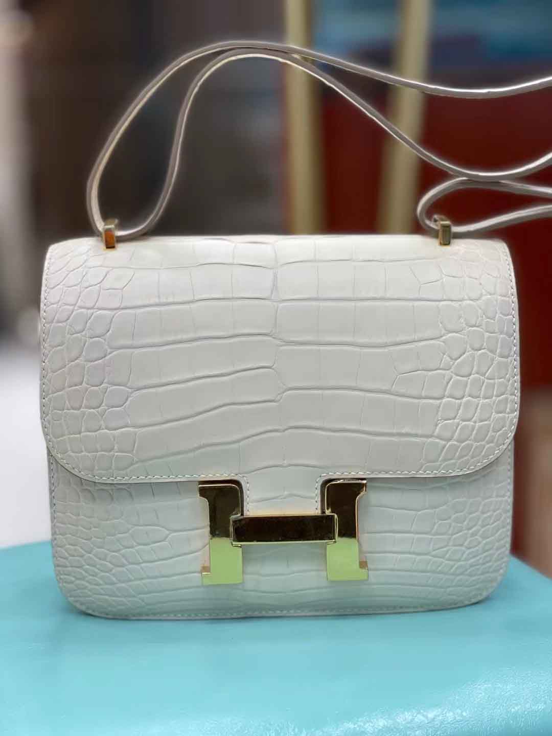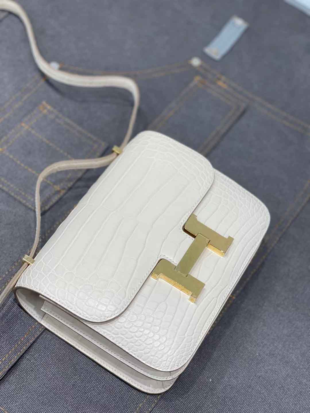 constance 19cm 奶油白雾面美洲鳄 手工缝制 现货金扣