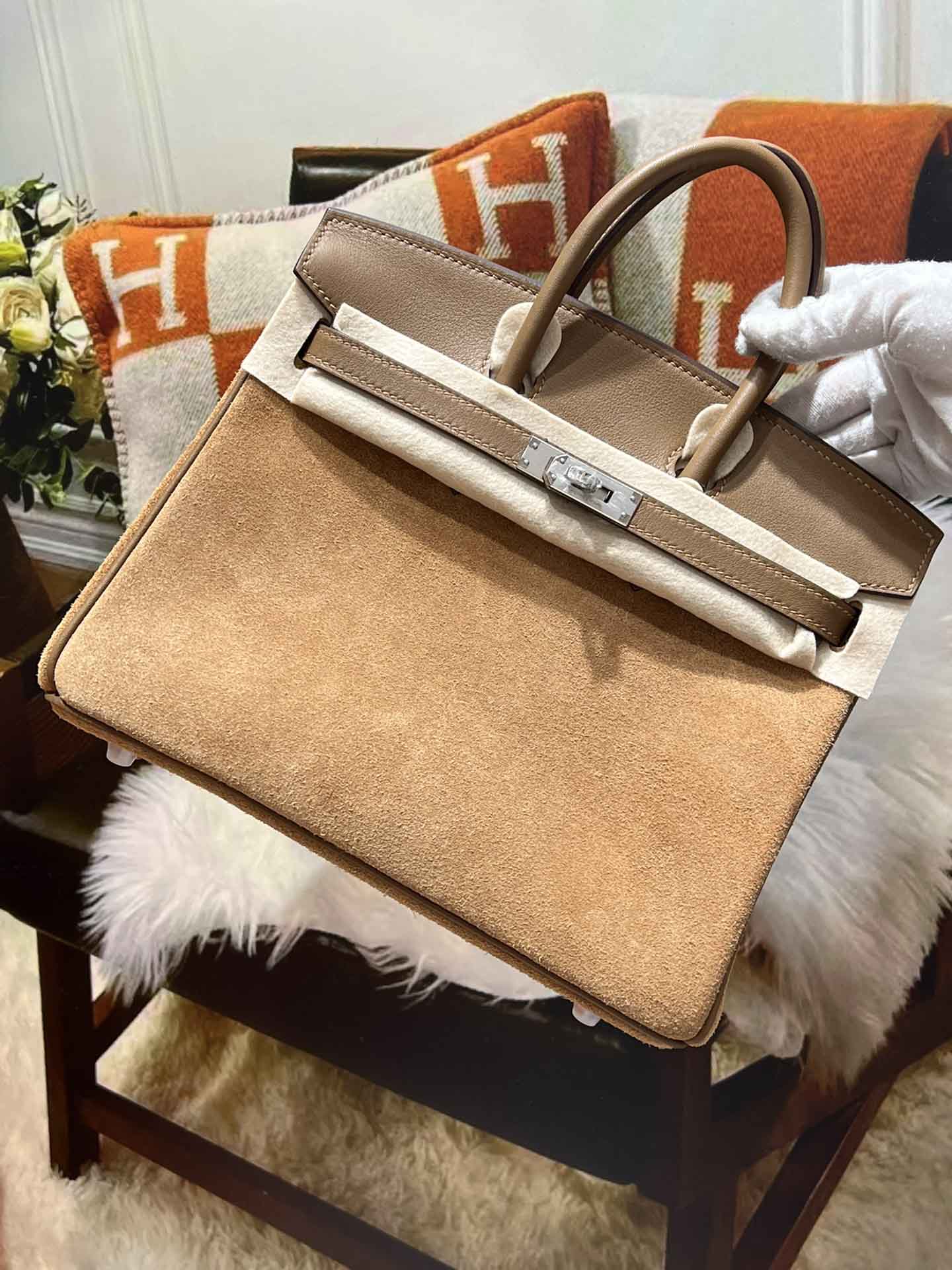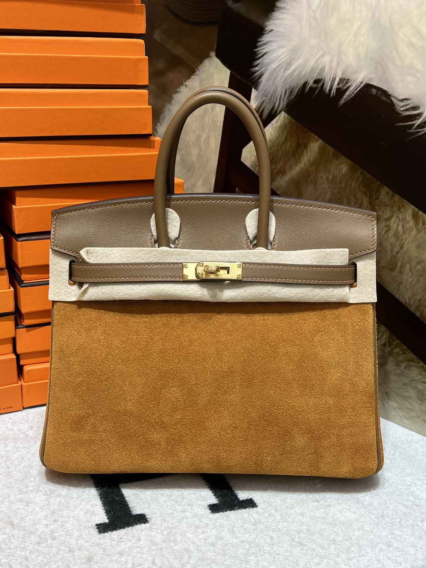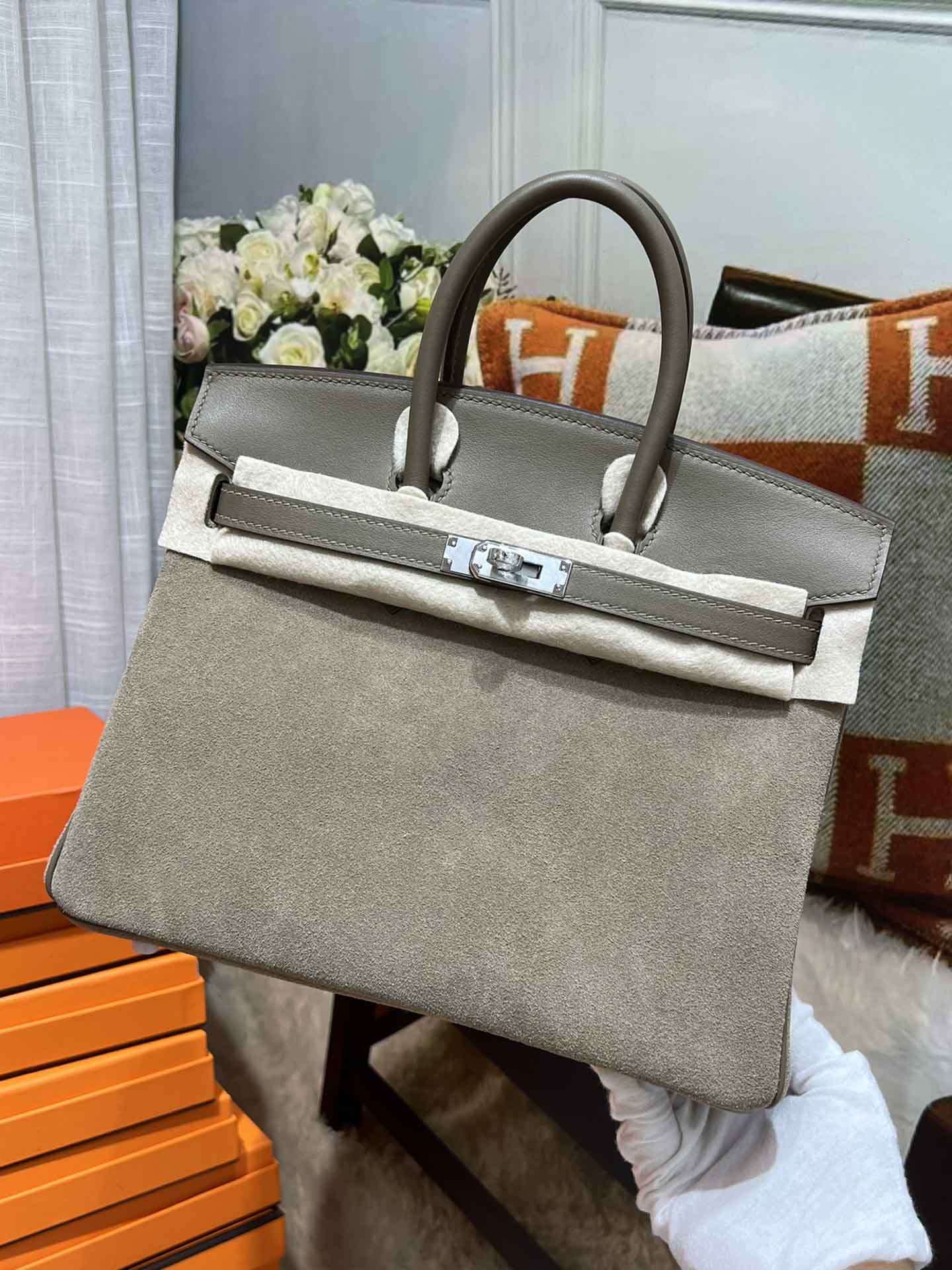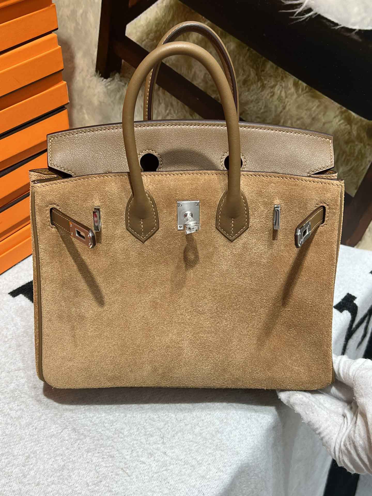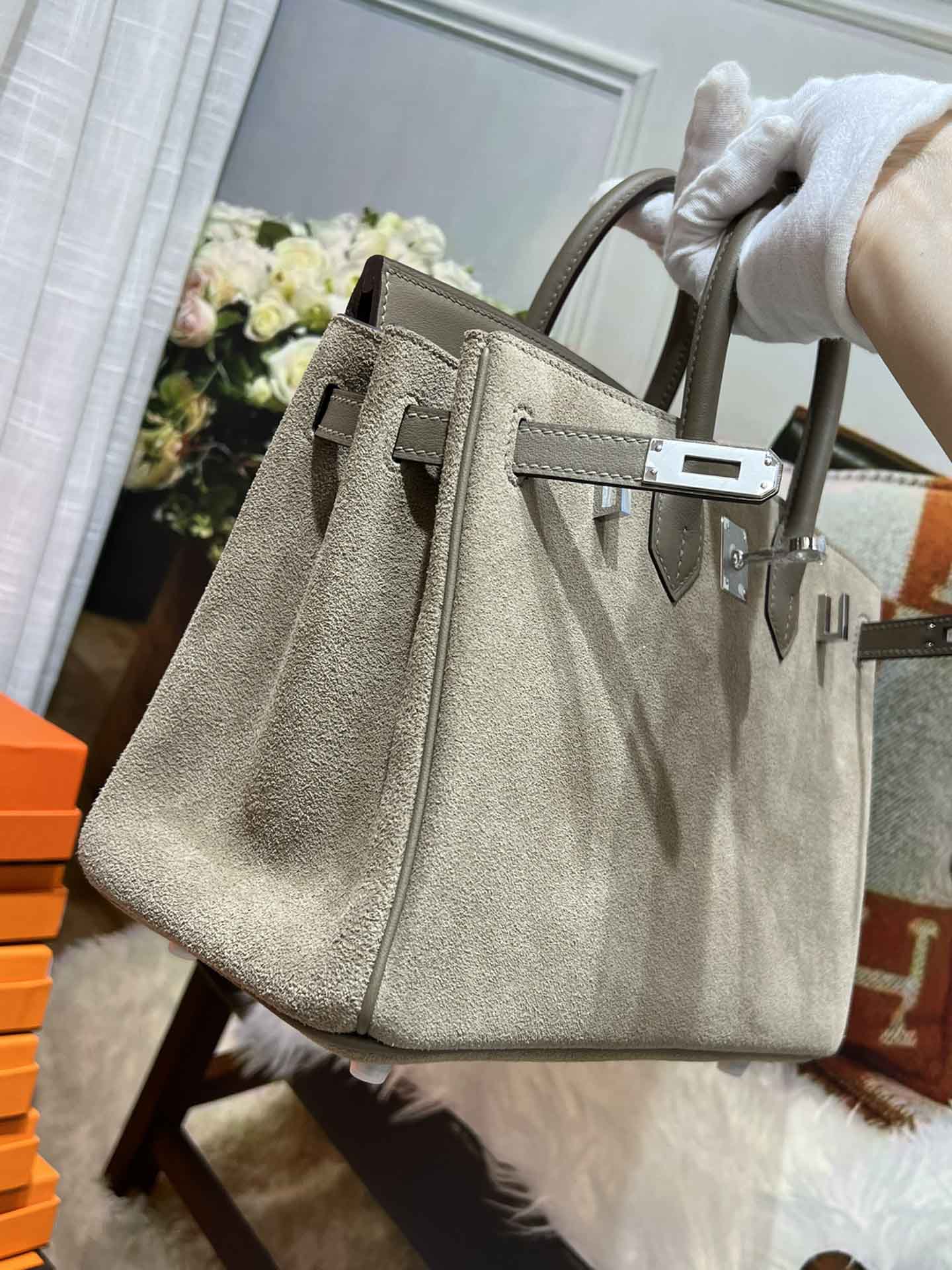 Birkin25CM. 必备单品 麂皮 对版手缝 暖色系列,明亮活泼可爱