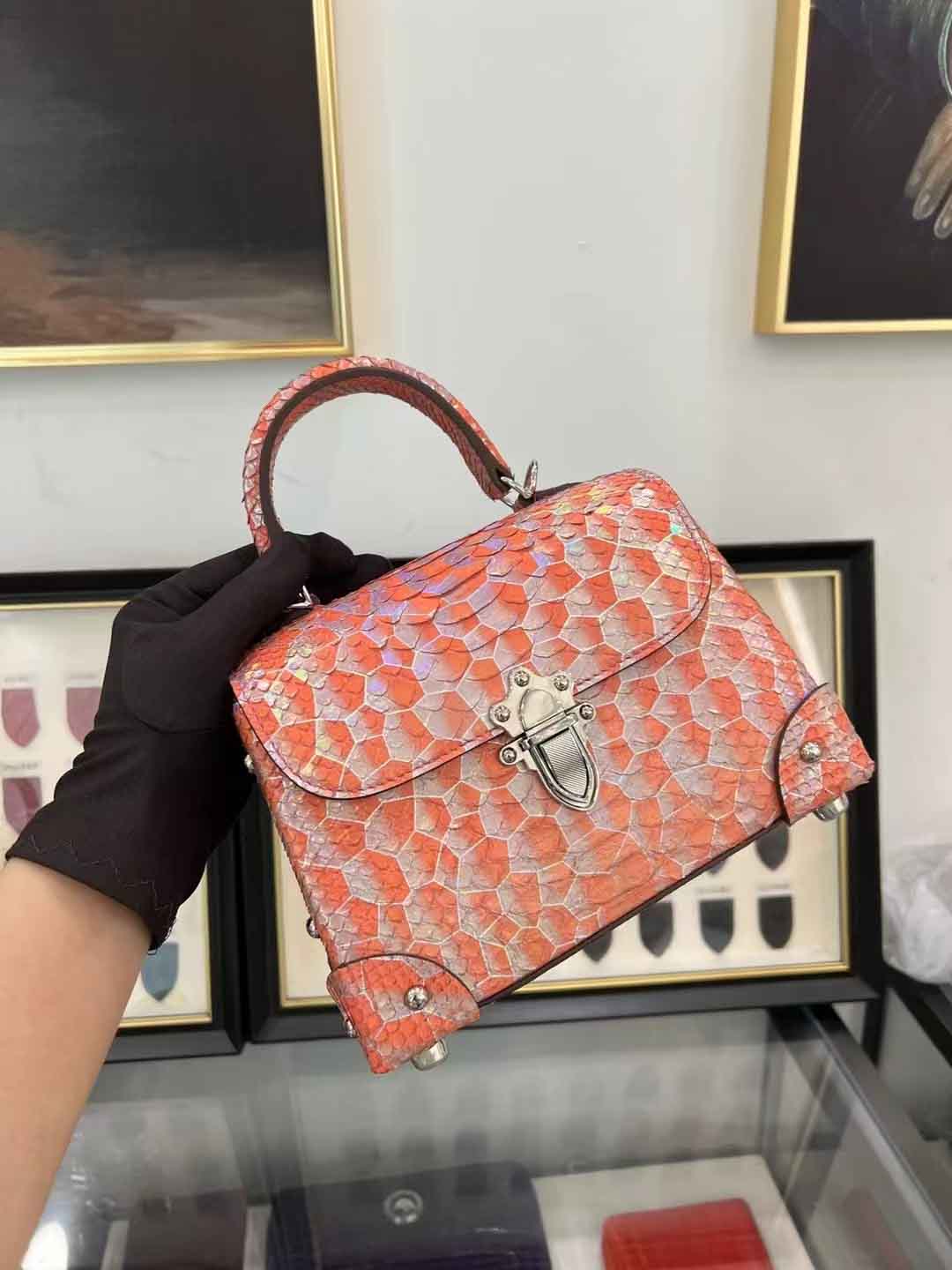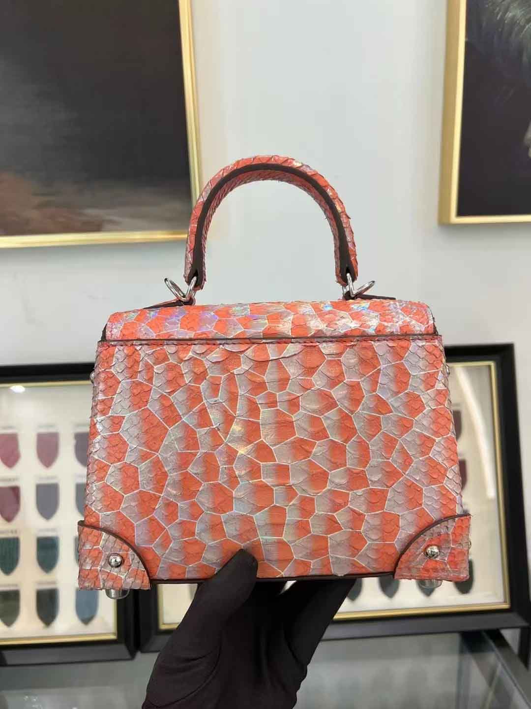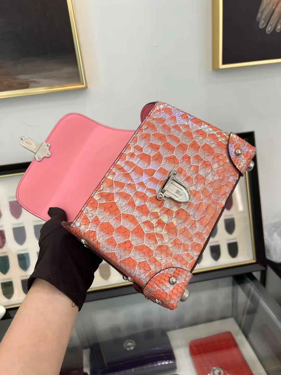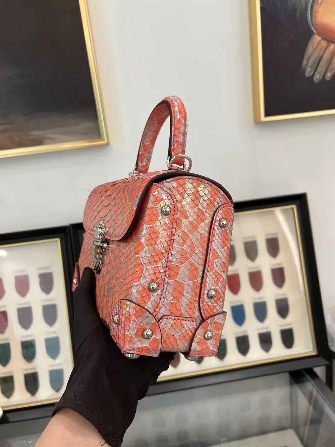 撞钉包,粉色蟒蛇皮,Size:20×14×8.5cm