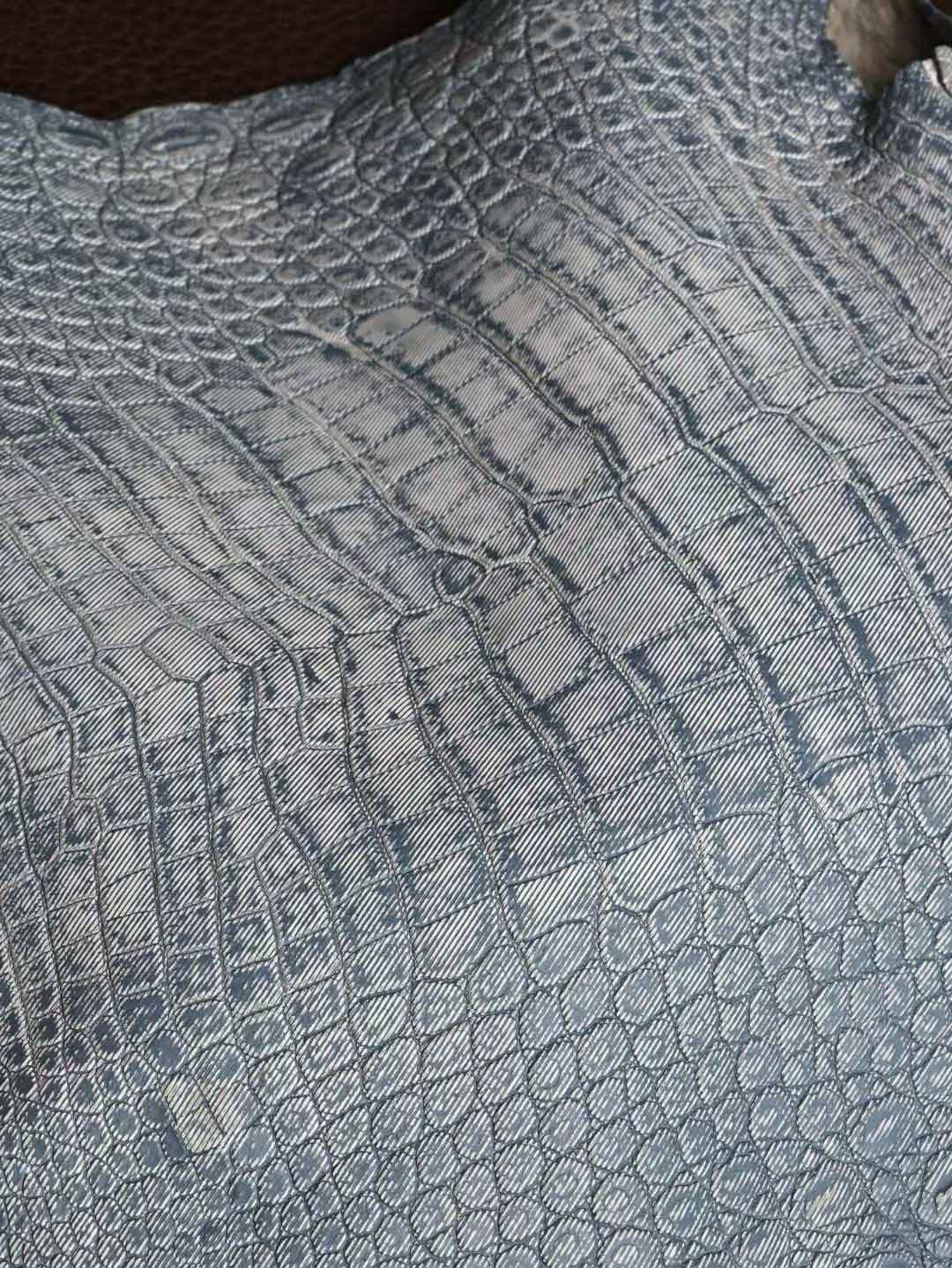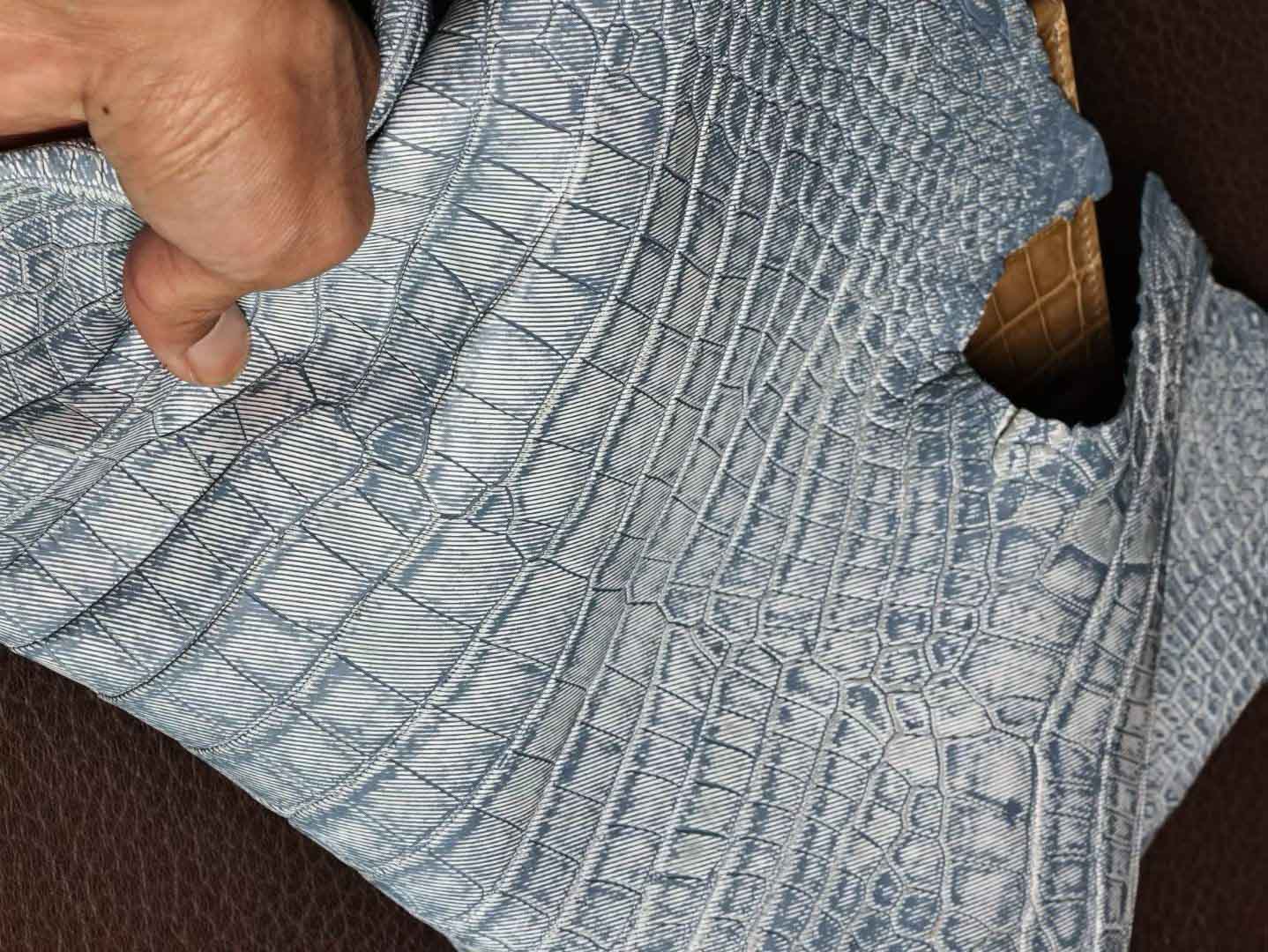 驴家新品材料研发,牛仔布纹呈现在鳄鱼皮上。