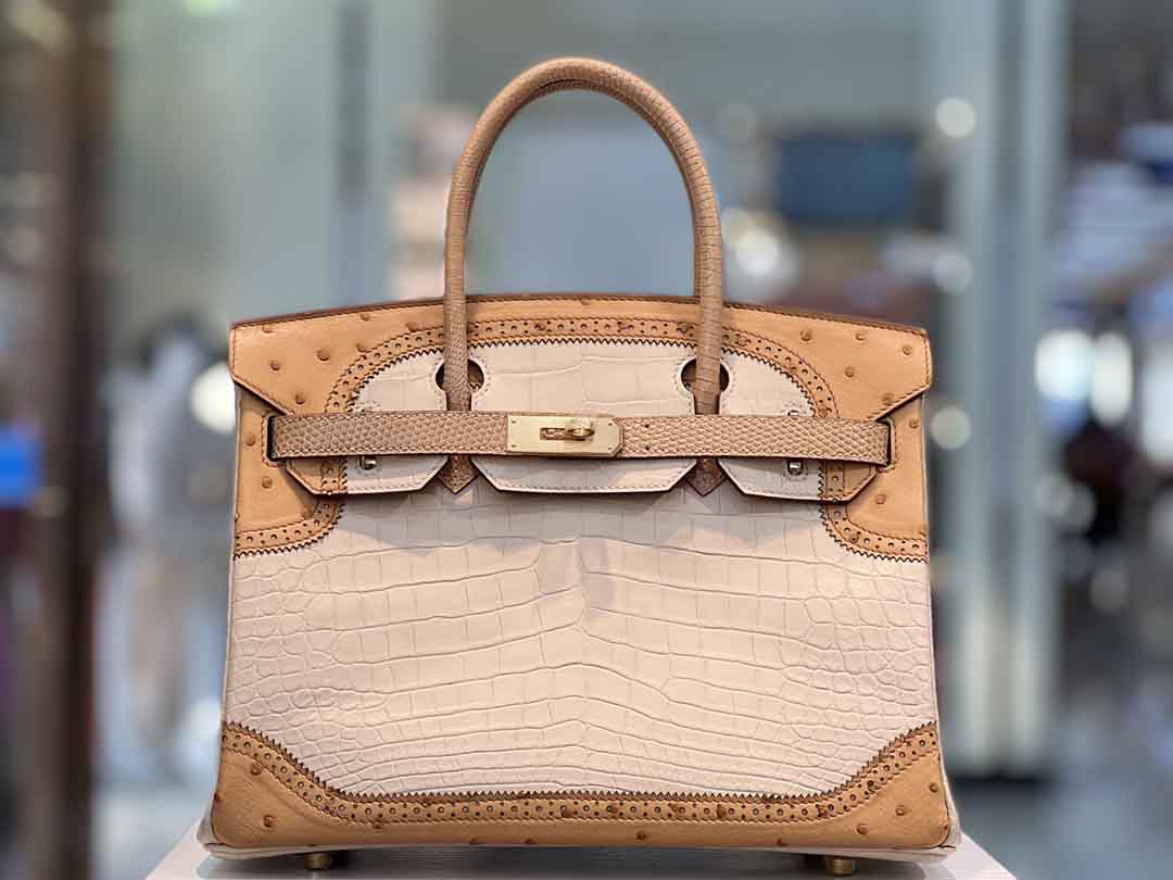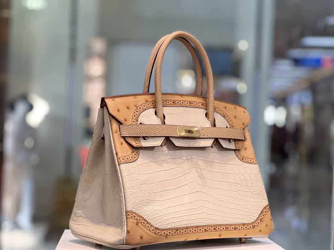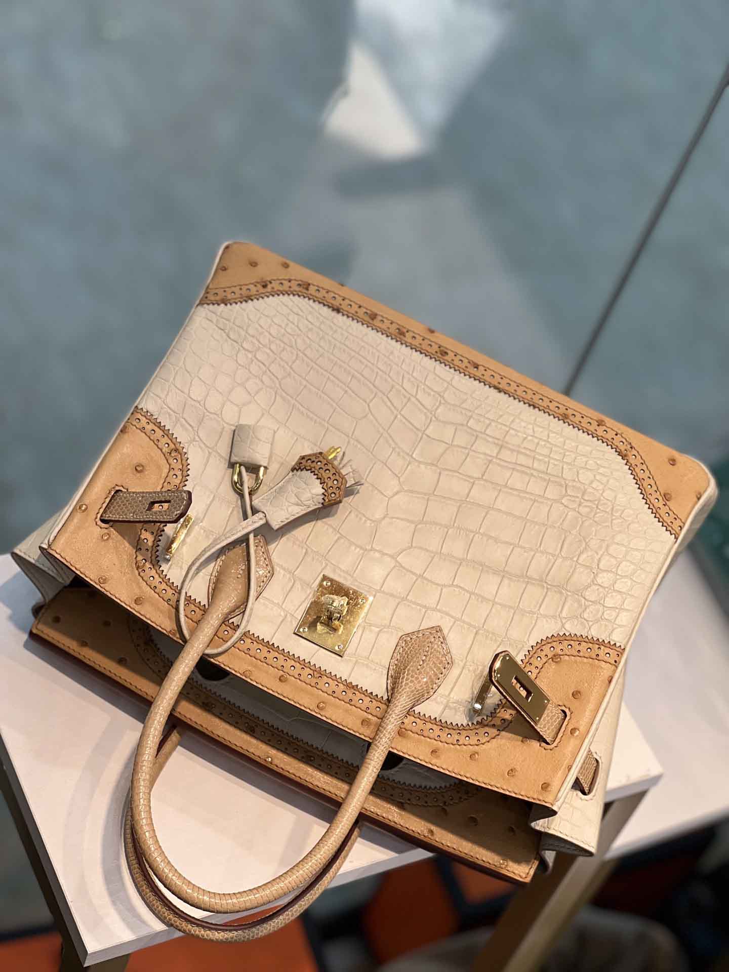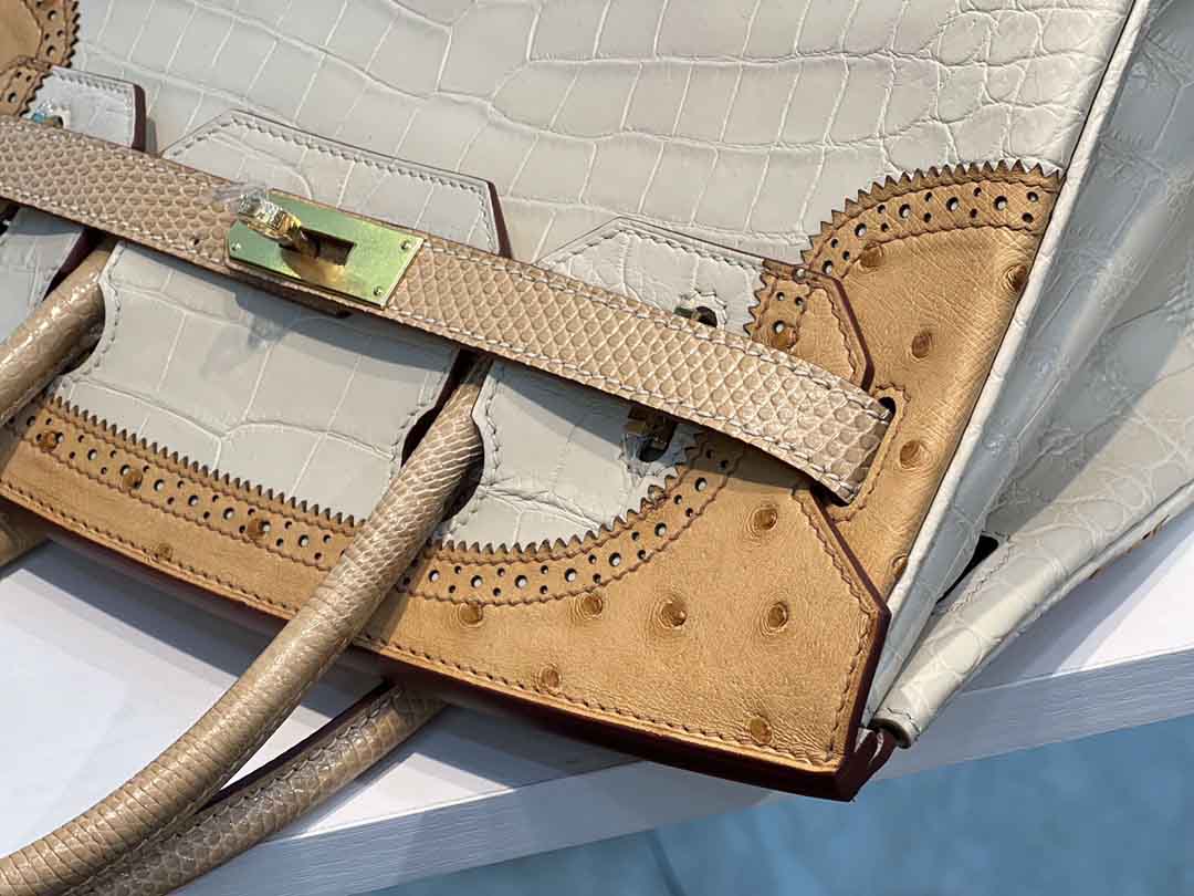 birkin30cm 蕾丝款 鳄鱼奶油白拼鸵鸟拼蜥蜴王品 现货