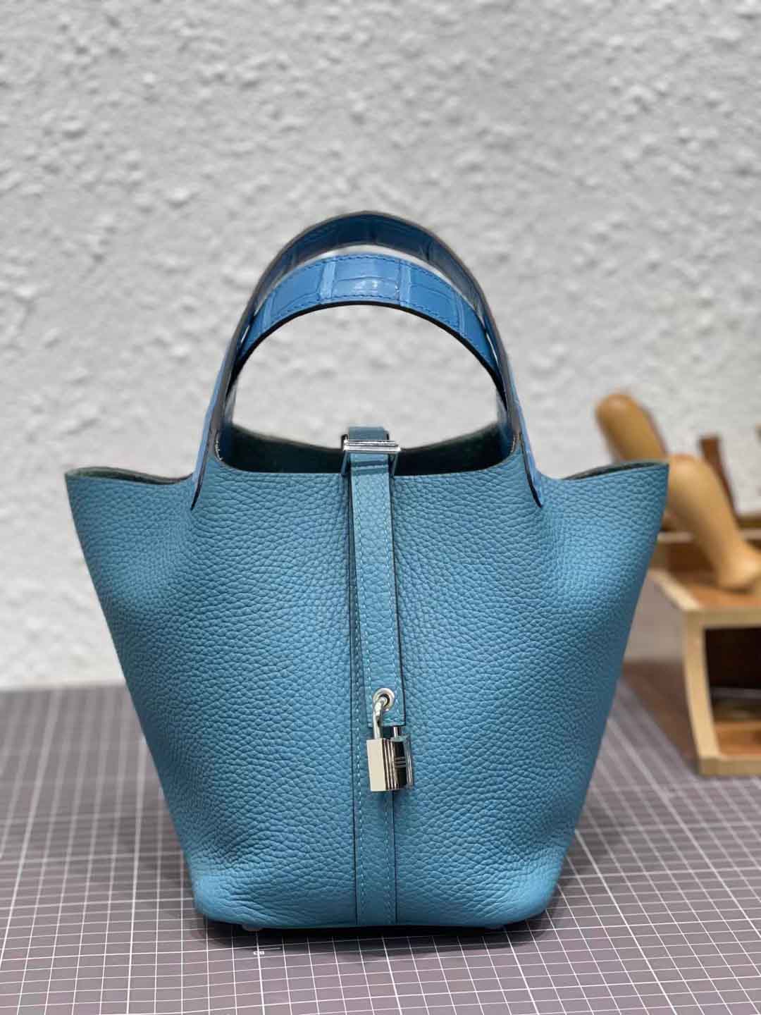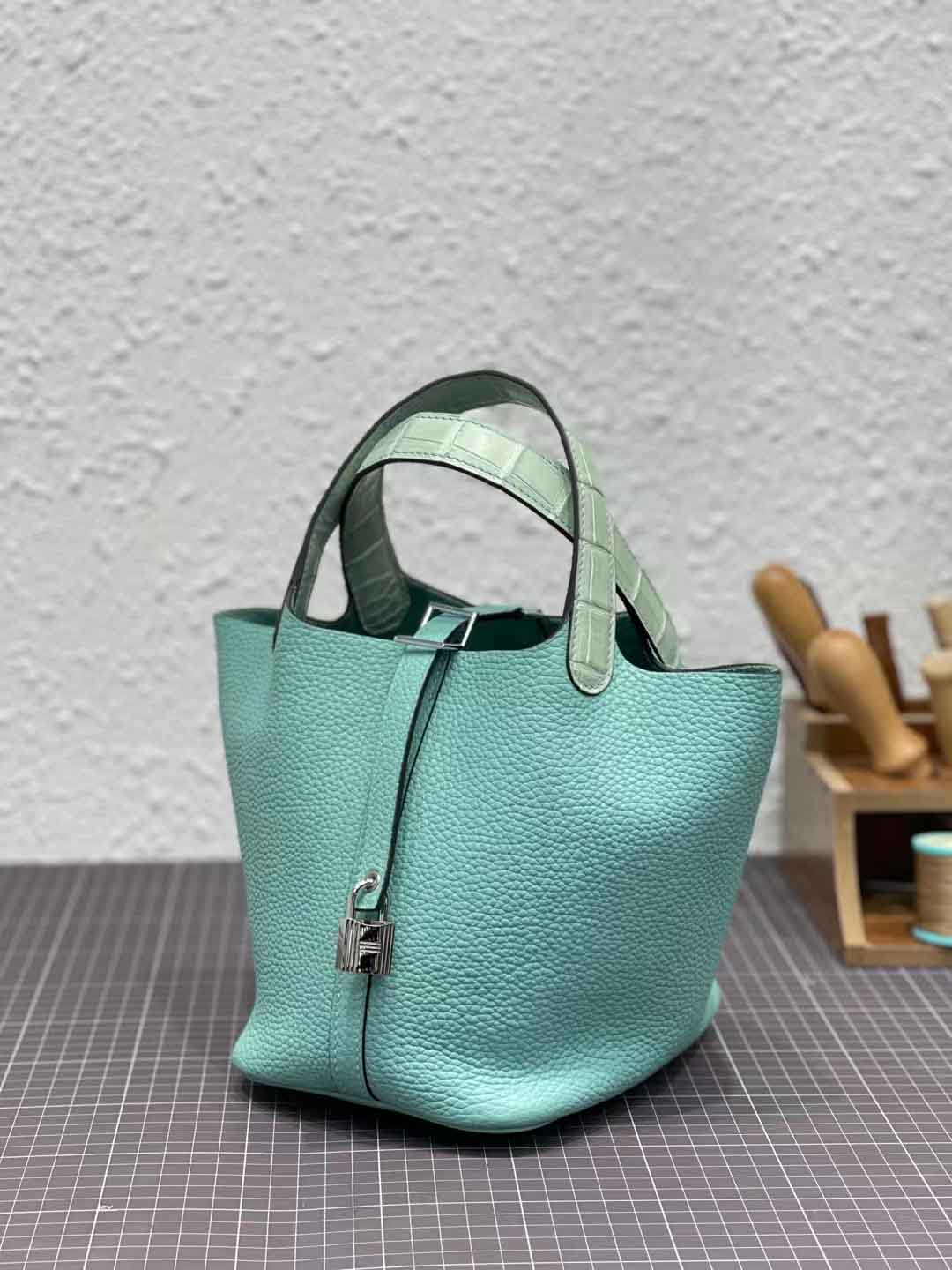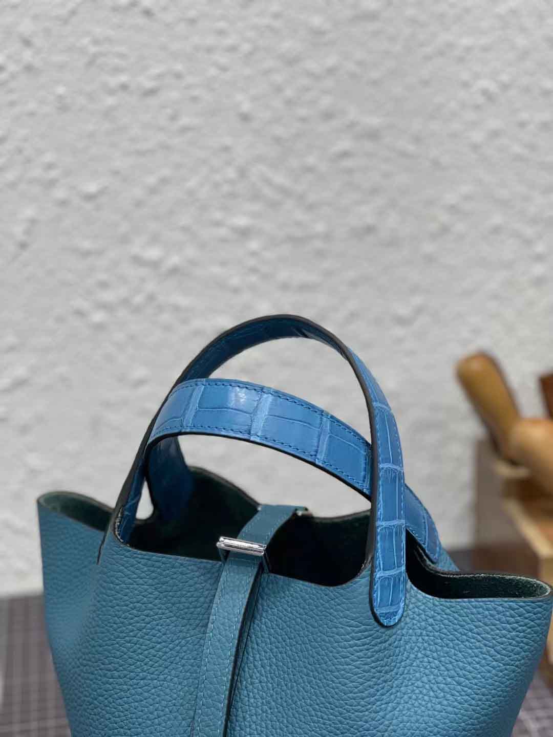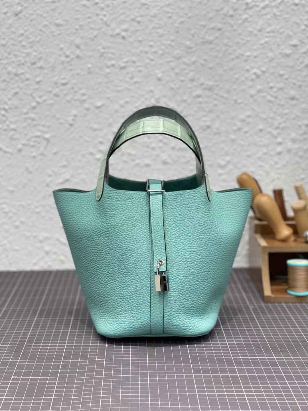 Picotin touch 18cm 手挽拼上薄荷绿色鳄鱼皮➕圣西尔蓝TC皮 又是另一种特色 休闲又好用