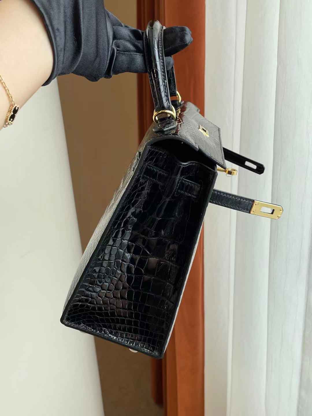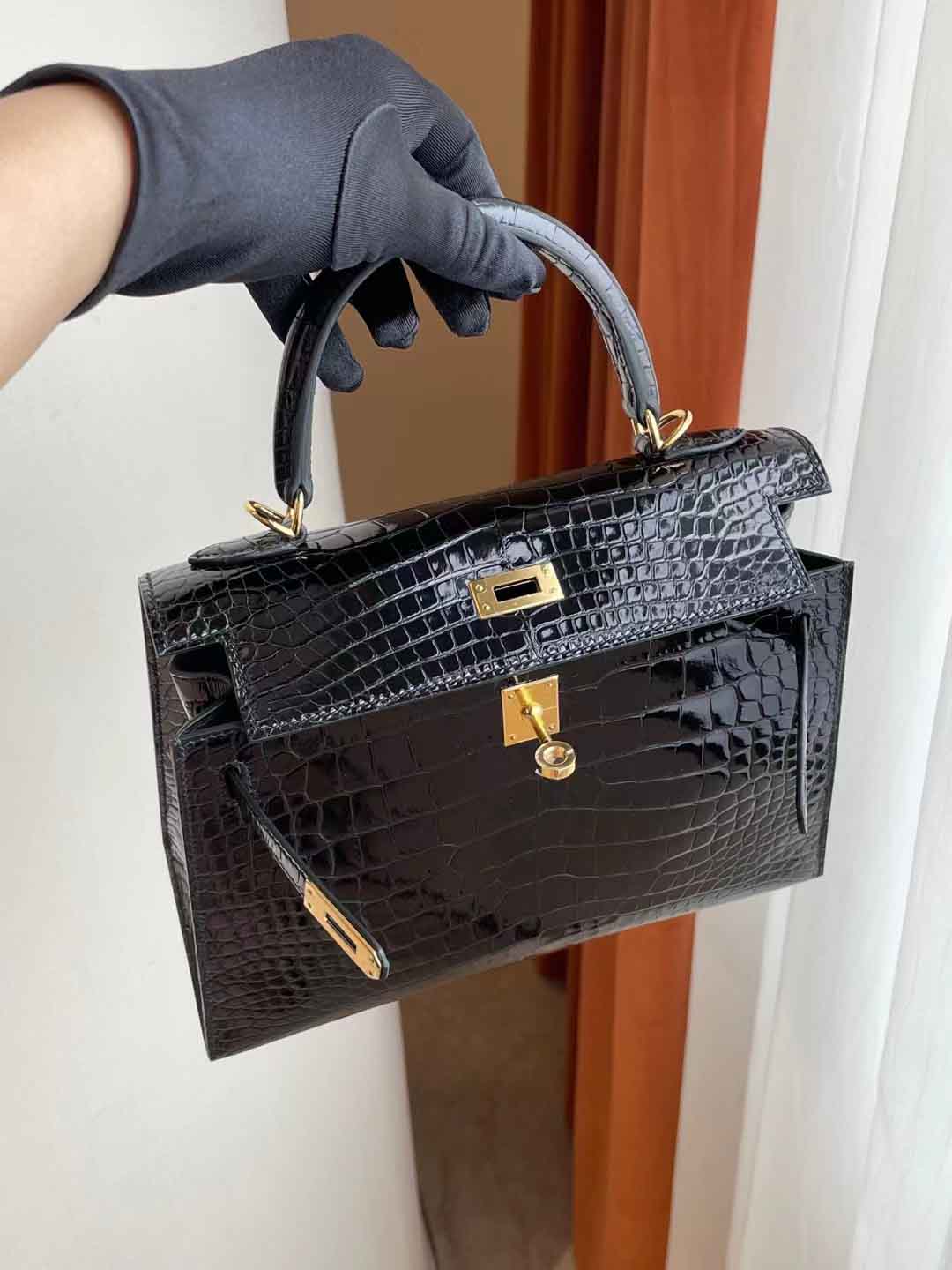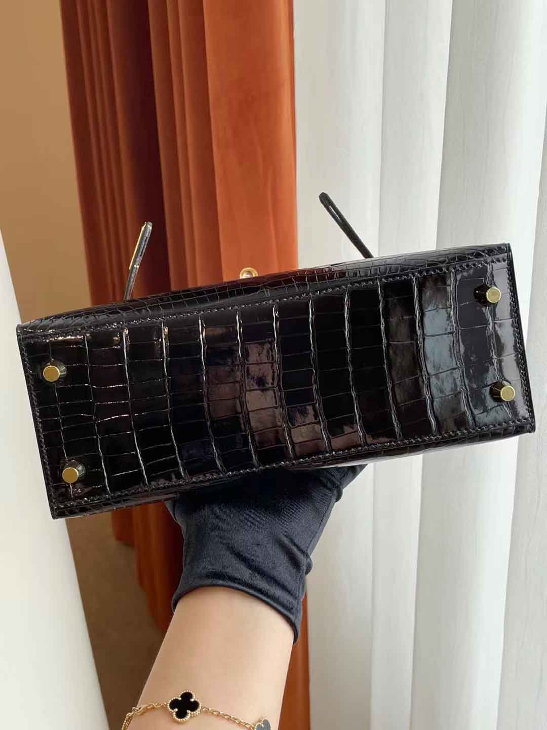 Kelly25 黑色亮面美洲鳄 金扣 纯手工蜡线 新到现货一只 in stock....
