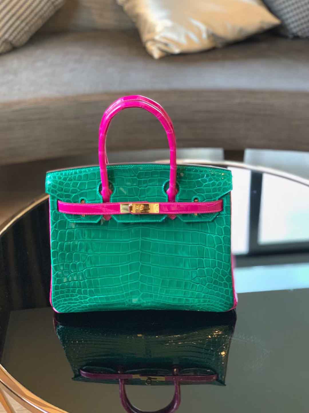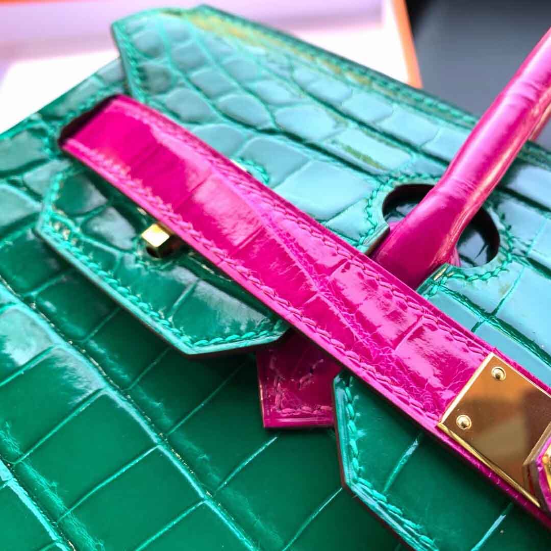 Birkin 30cm 翡翠绿拼天方夜谭紫女包 金扣