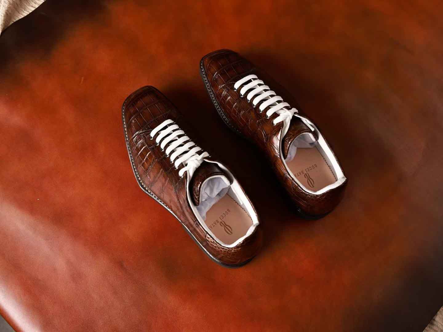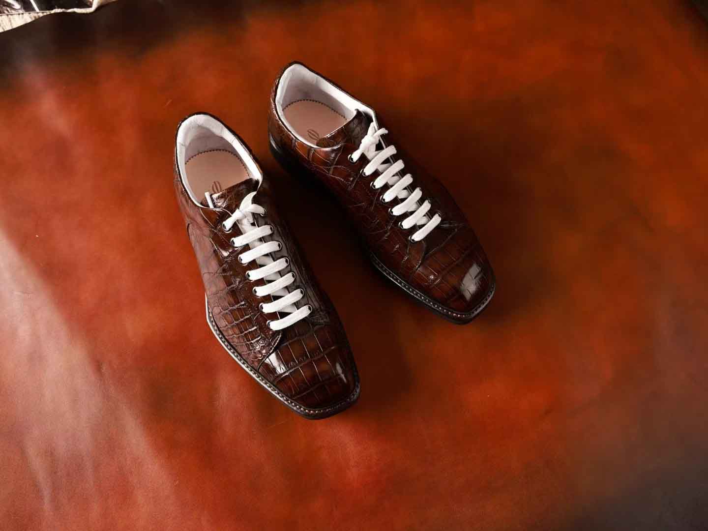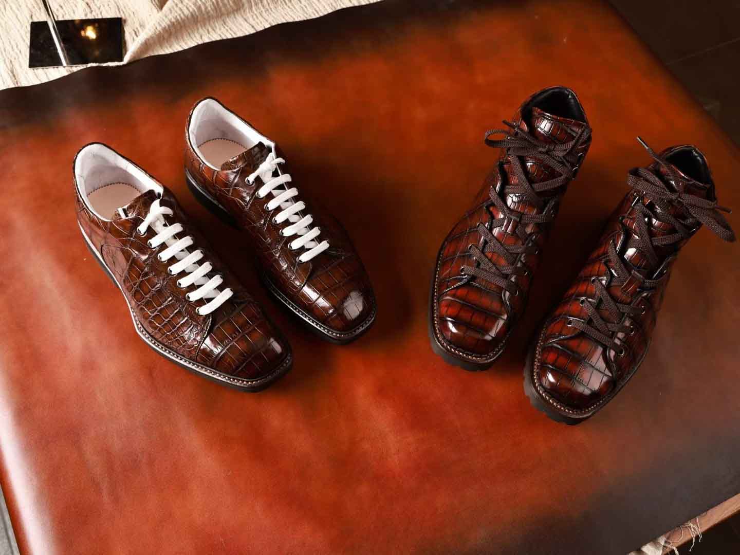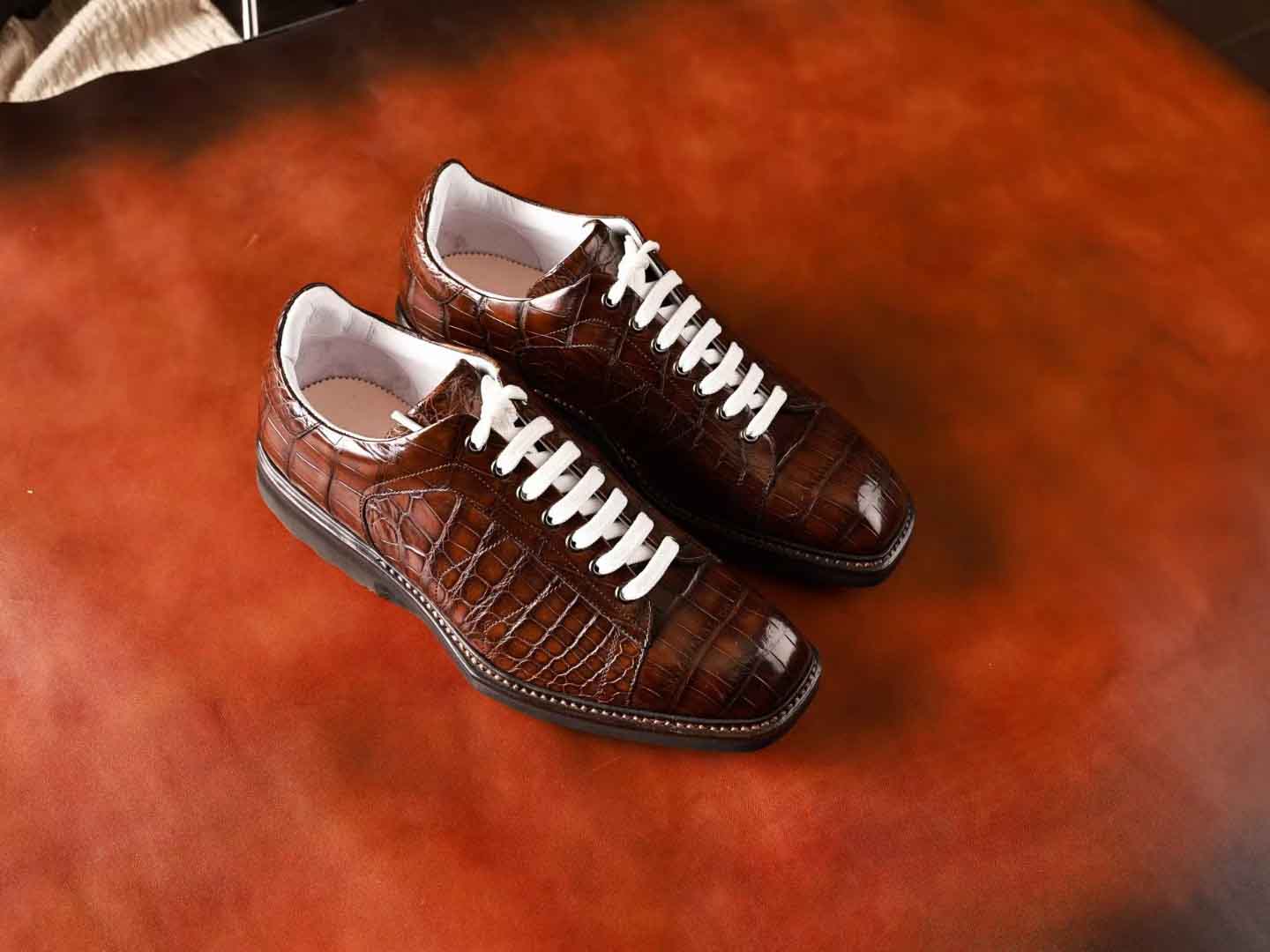 擦色红色鳄鱼皮男士皮鞋订制工厂,私人订制奢侈品皮鞋定制工作室。