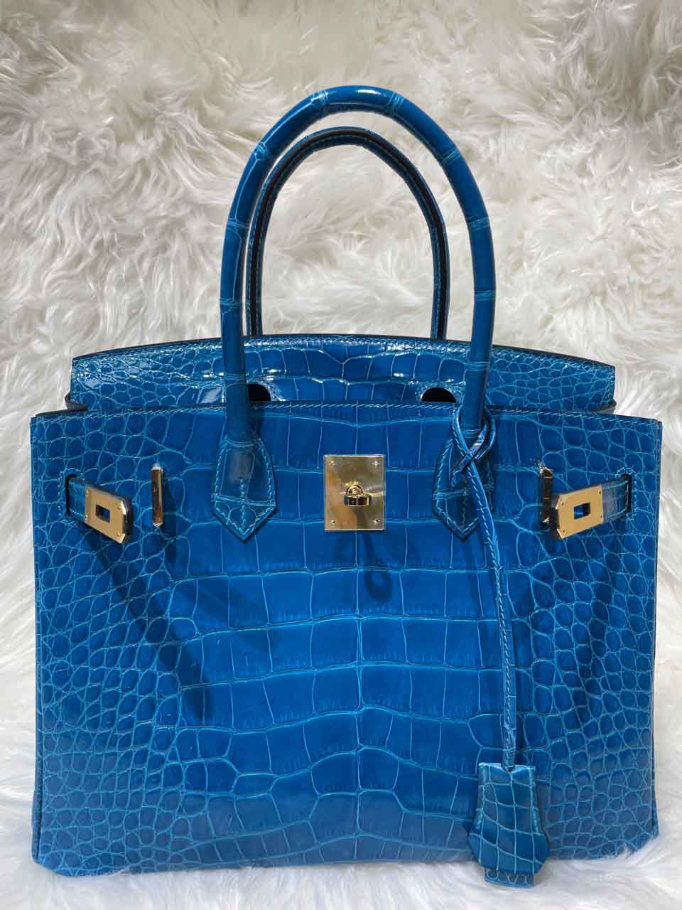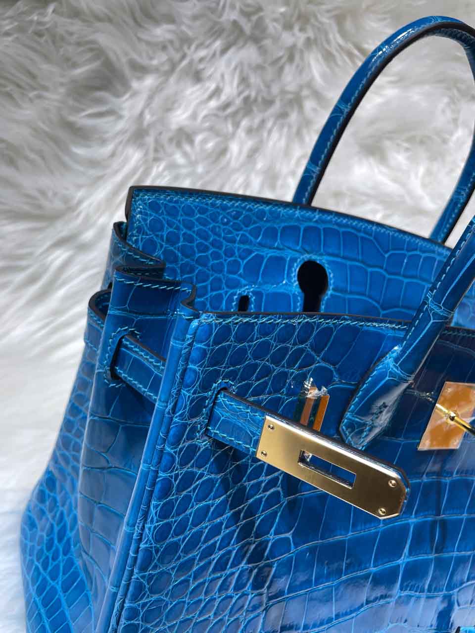 Birkin 30伊兹密尔蓝,美洲鳄鱼皮女士包包订做