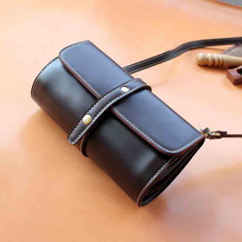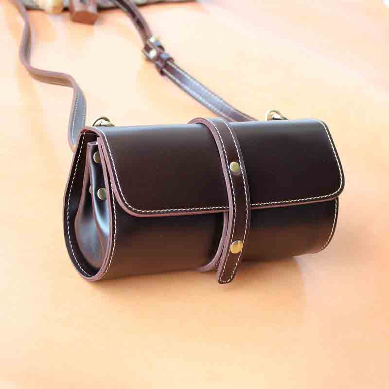 原创手工包文艺风斜挎包 头层牛皮休闲单肩斜跨真皮女包 复古圆包,